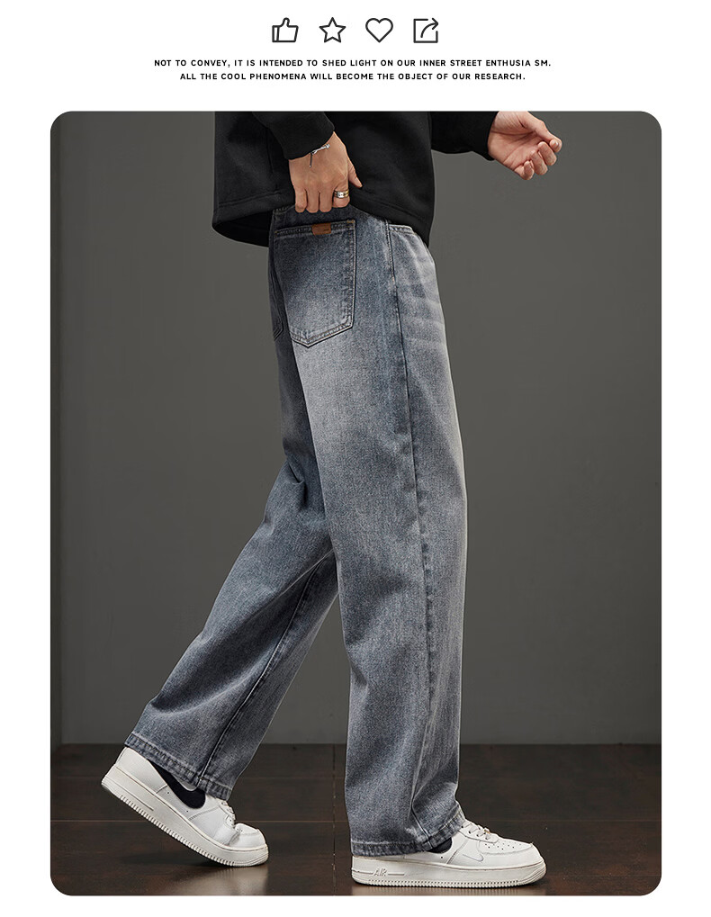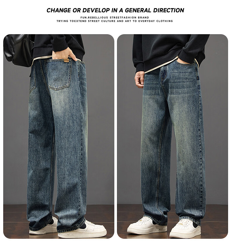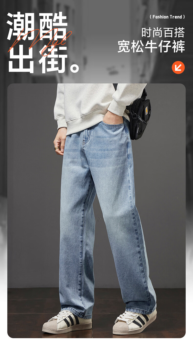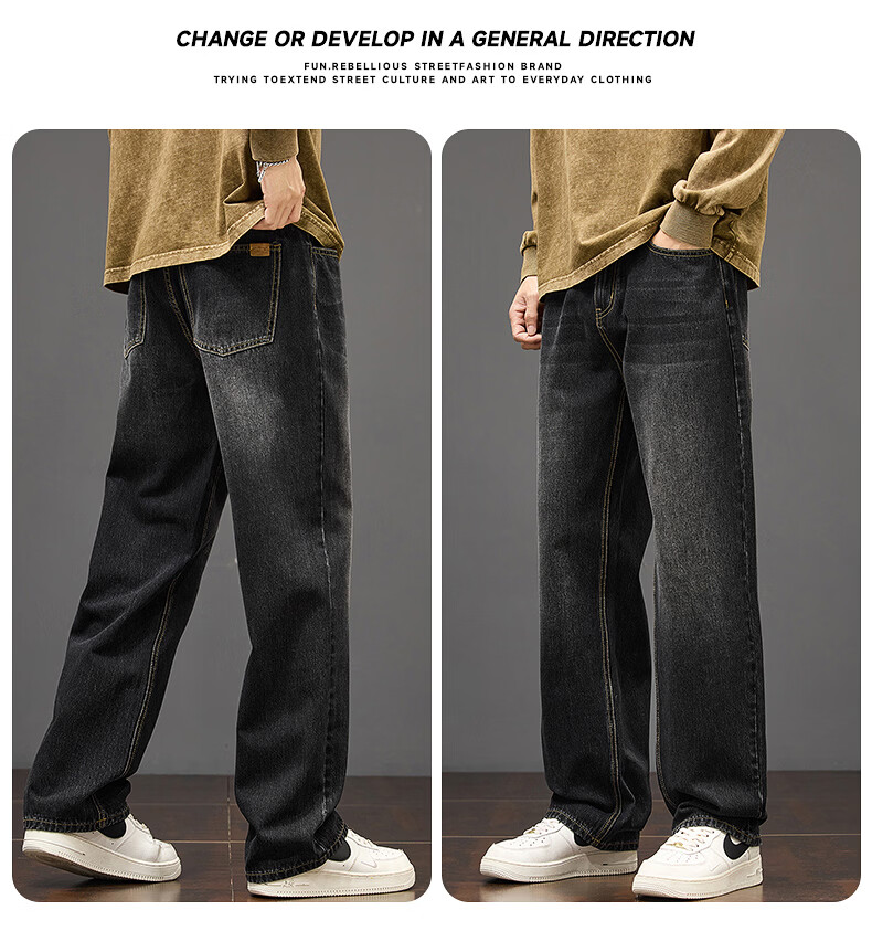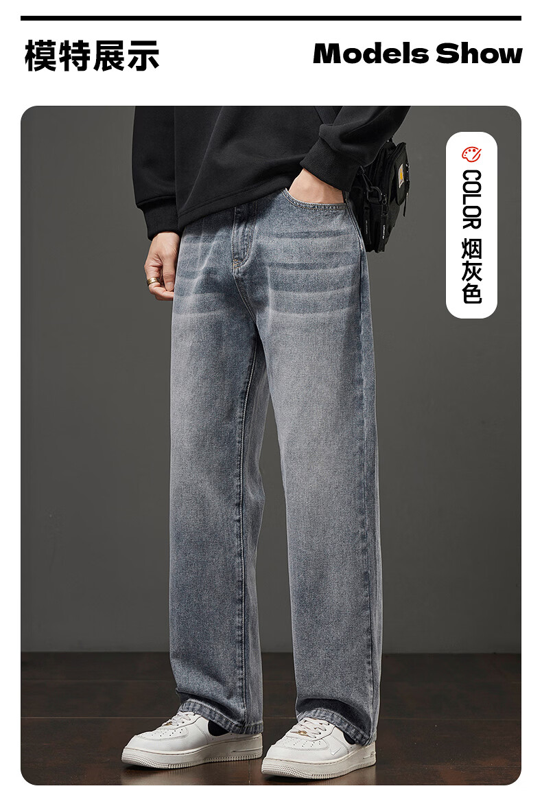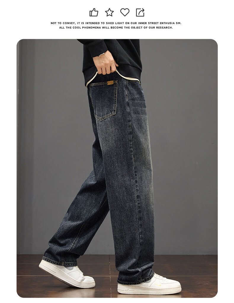 真维斯秋冬新款美式复古牛仔裤男潮流加绒加厚垂感阔腿休闲直筒裤 水泥灰 28