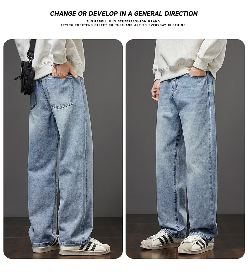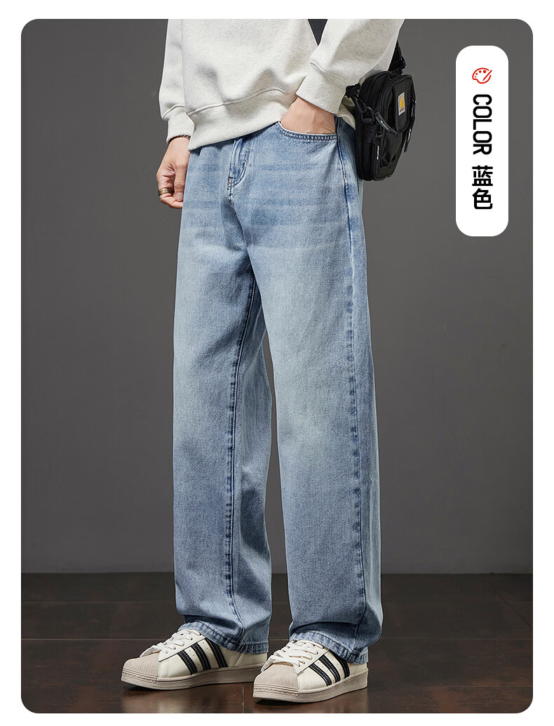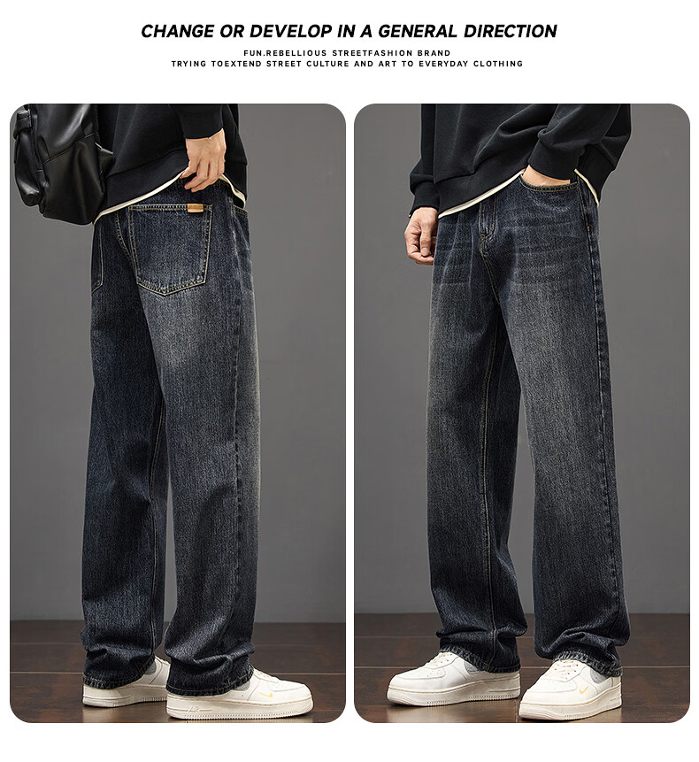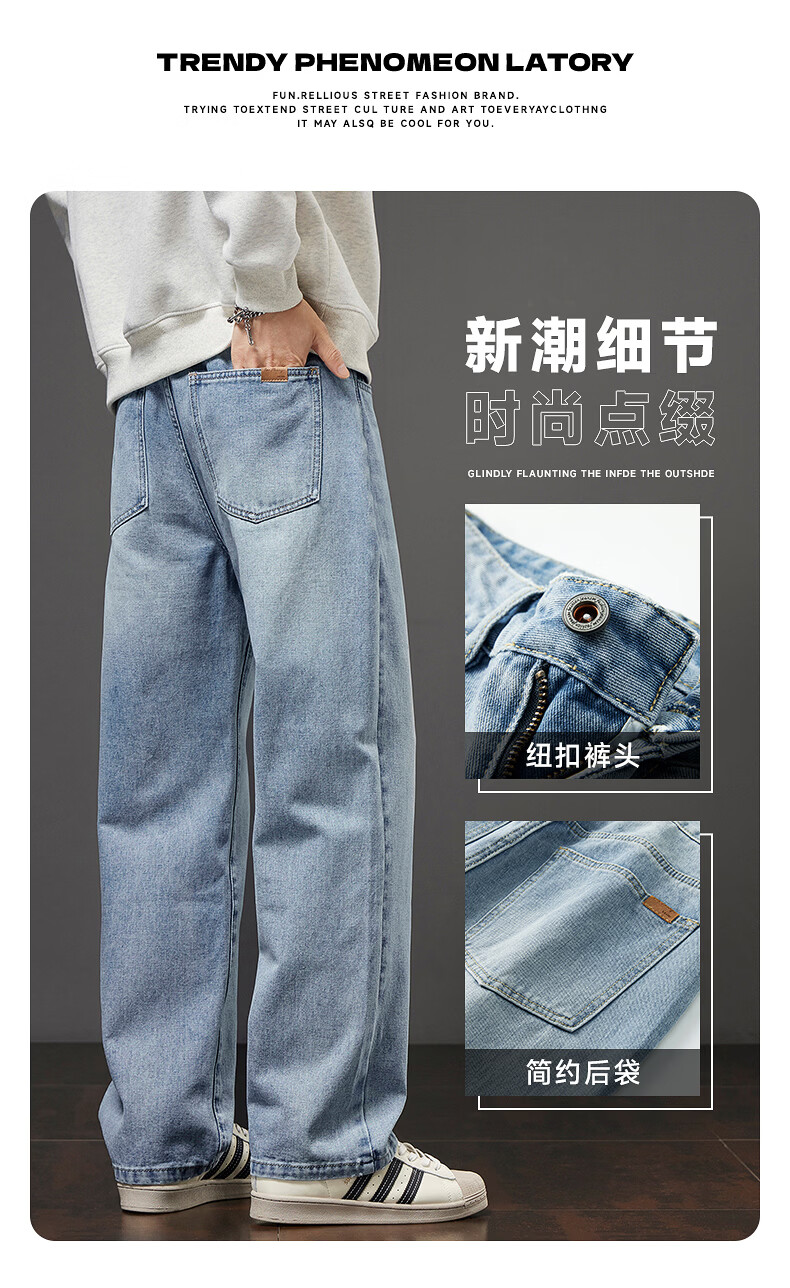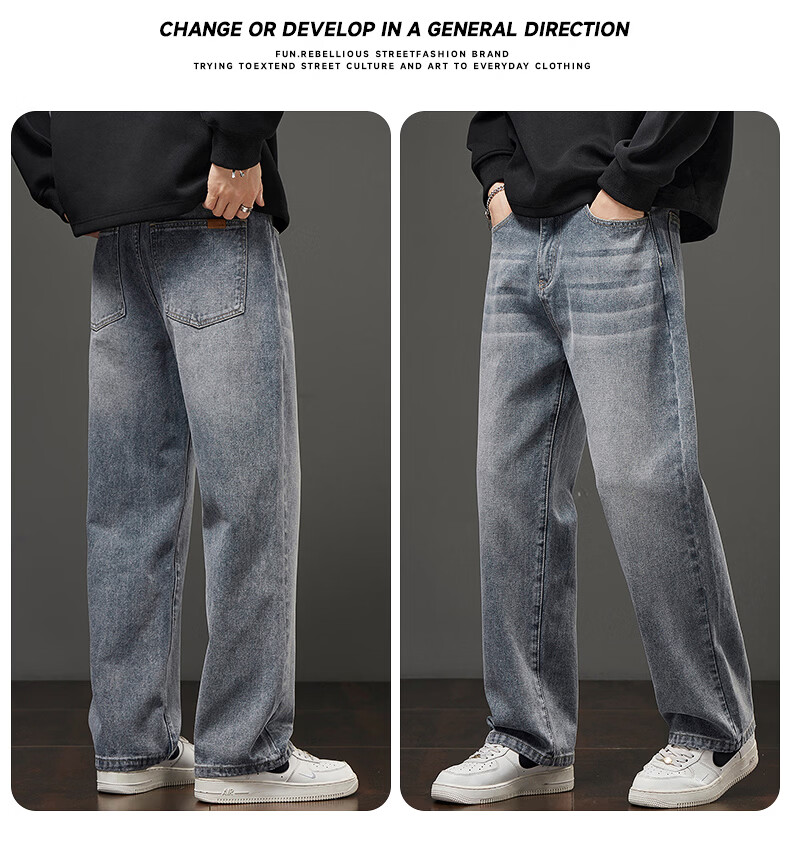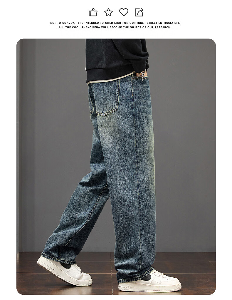 真维斯秋冬新款美式复古牛仔裤男潮流加绒加厚垂感阔腿休闲直筒裤 水泥灰 28