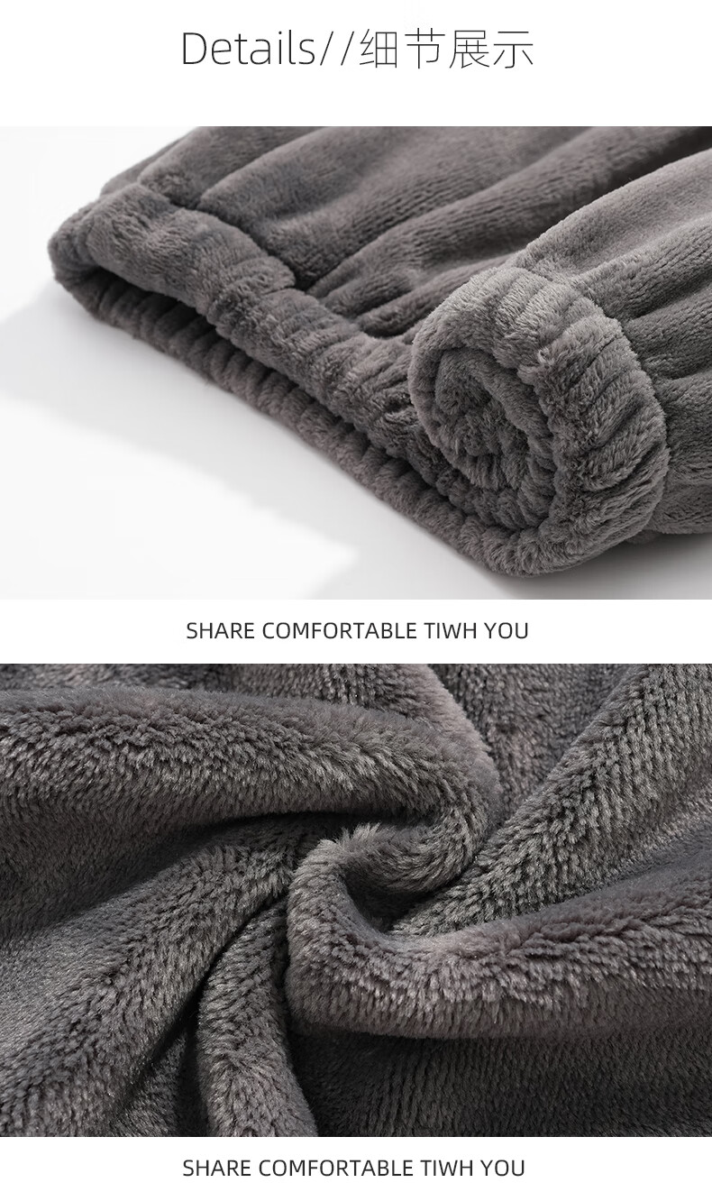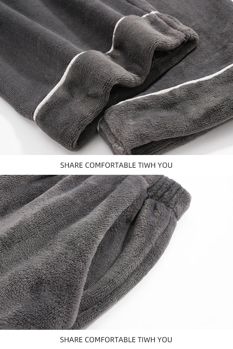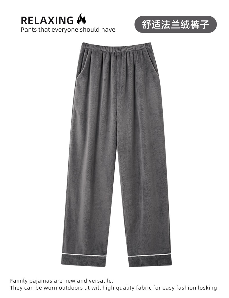 叶盼(yepan)【柔软保暖】法兰绒睡裤男士秋冬季加绒加厚大码冬天男款家居服裤 83905-黑灰 4XL (180) :建议200-220斤穿着