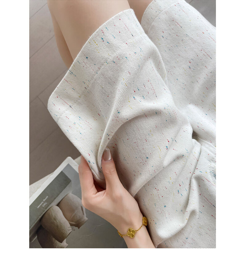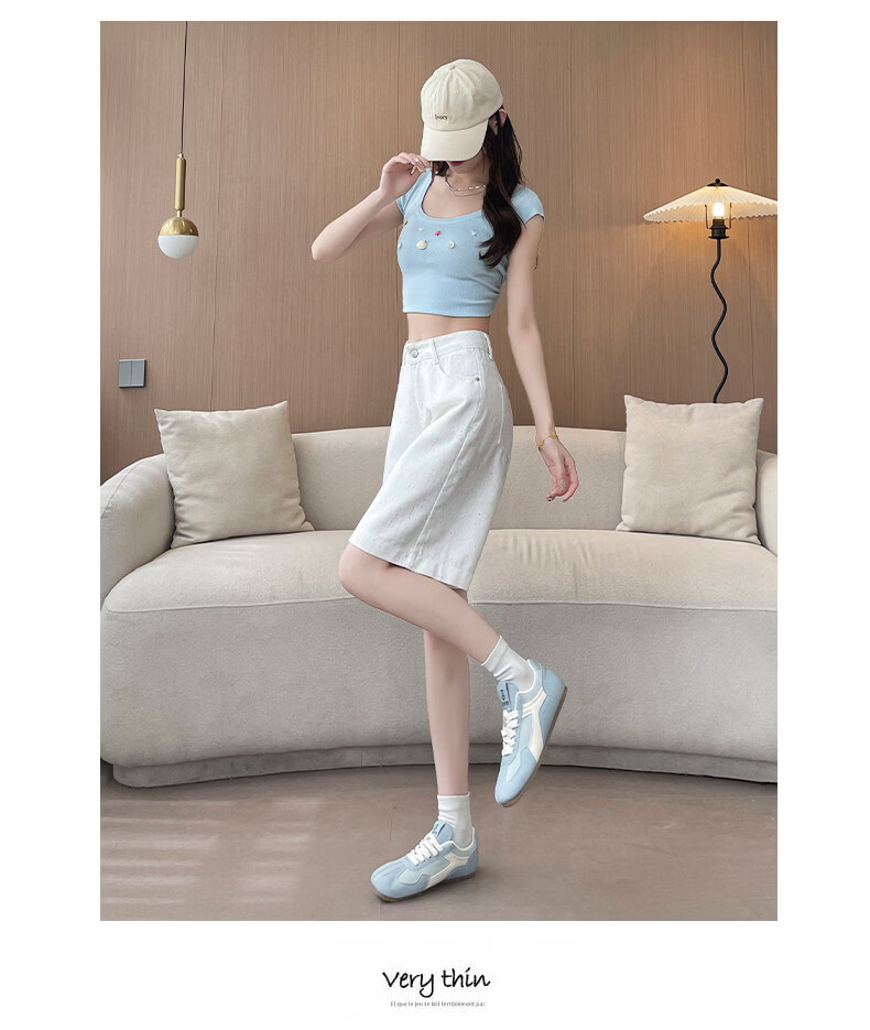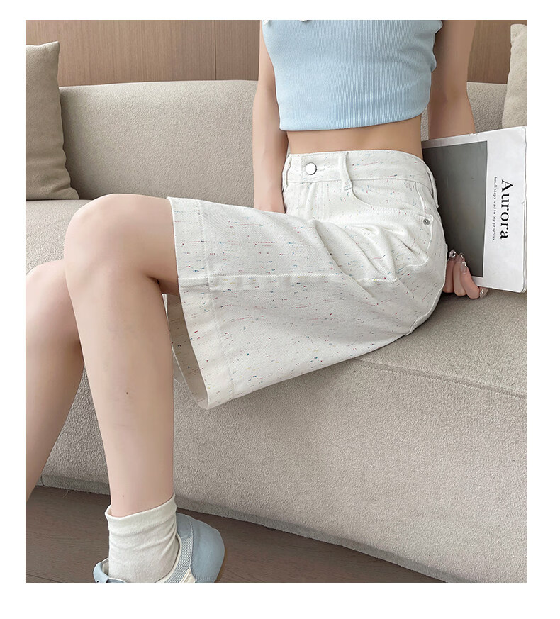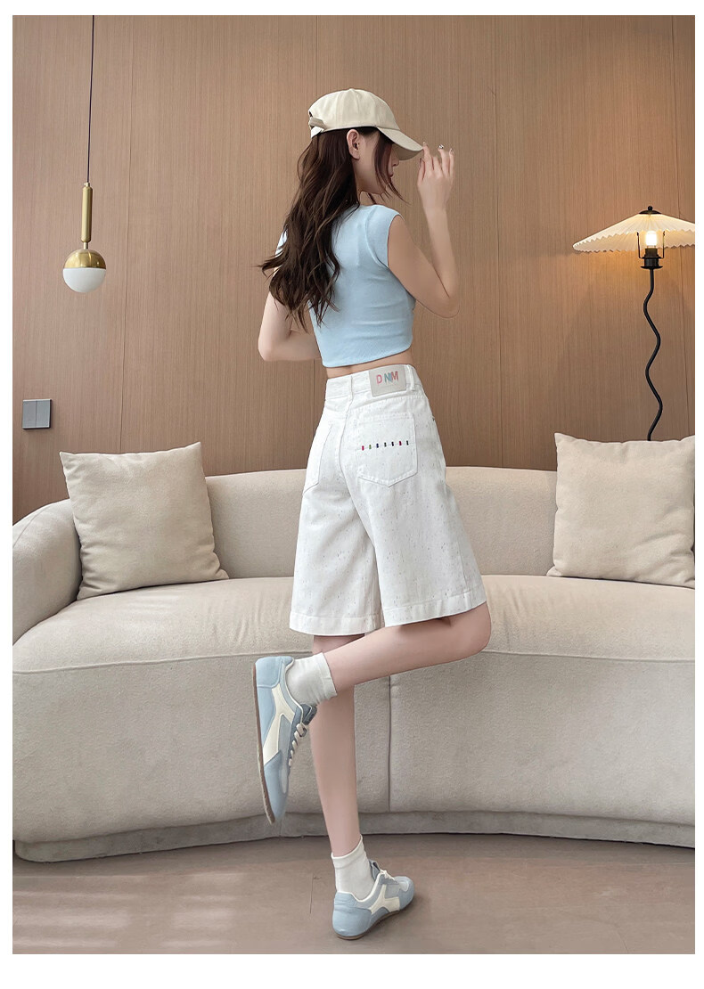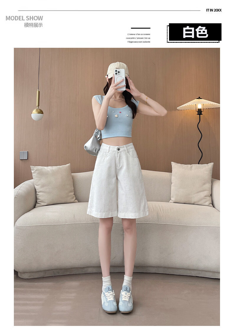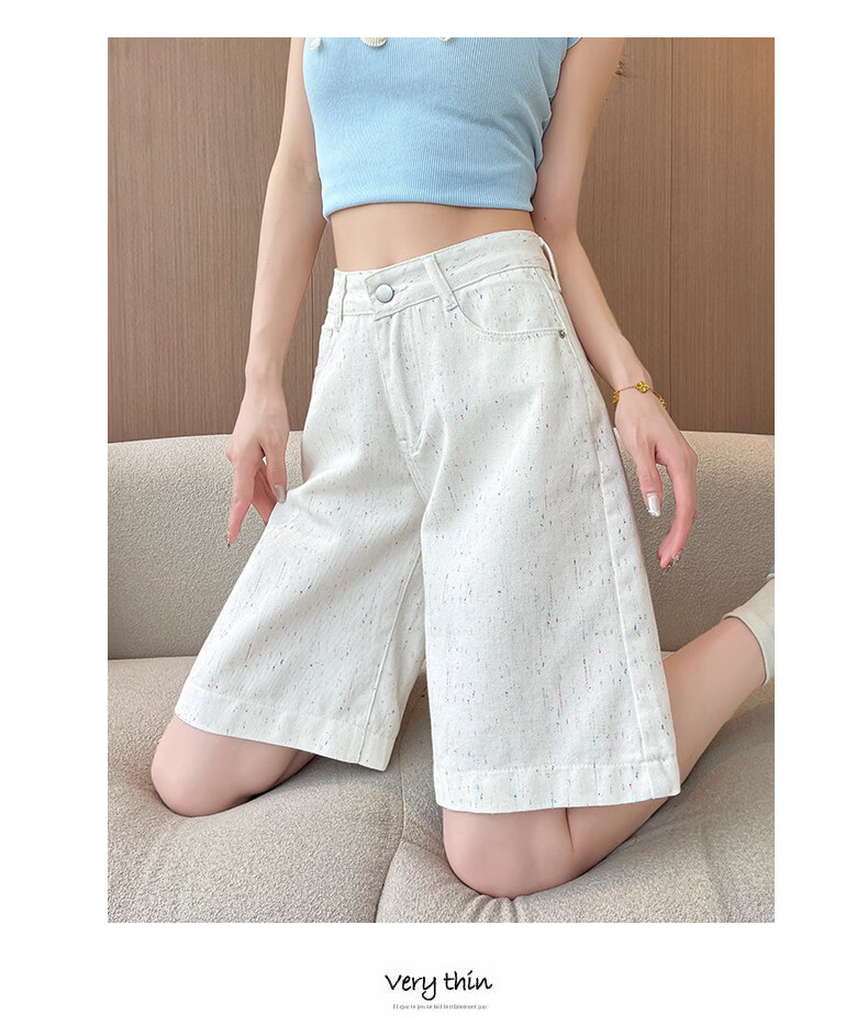 MODX碎花点白色五分牛仔短裤女2025年年夏薄款高腰显瘦字阔腿裤中裤 白色 XS