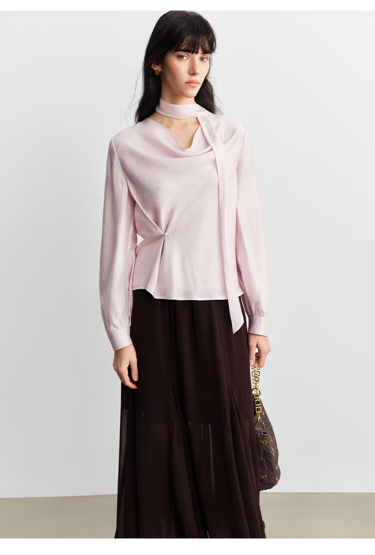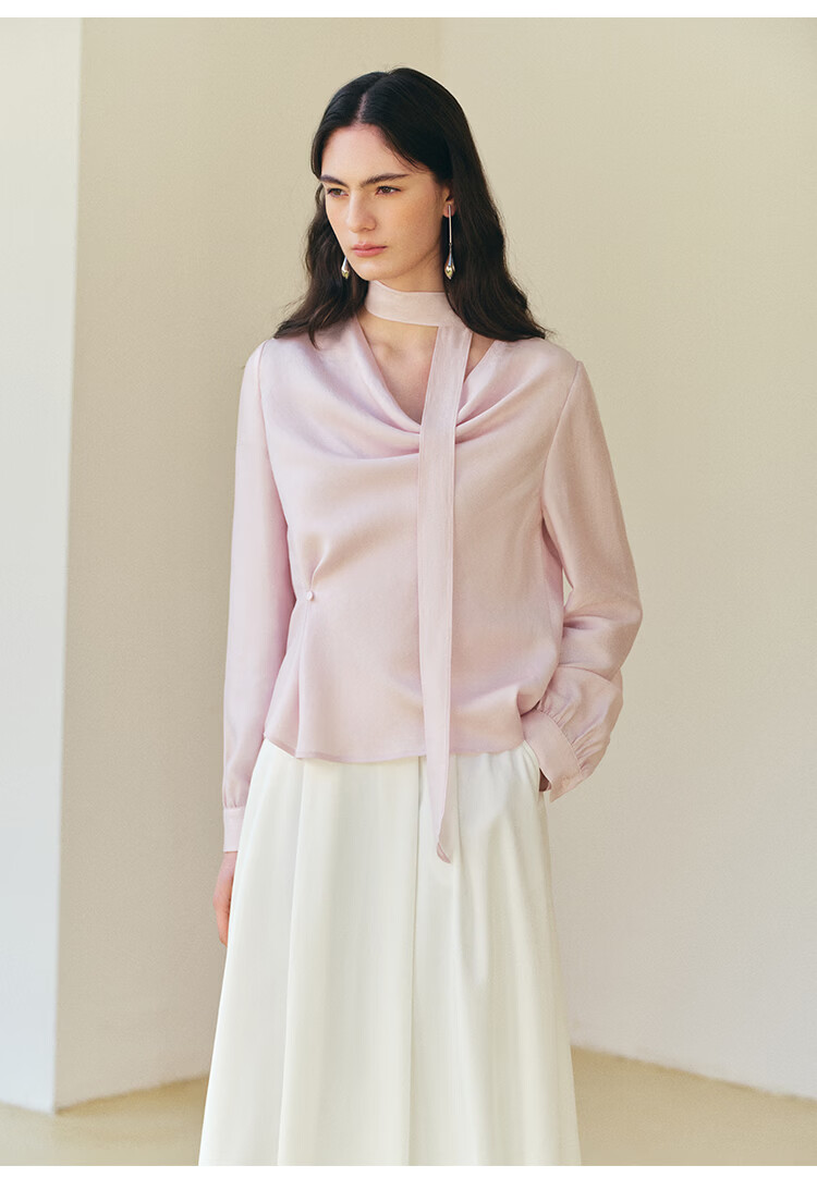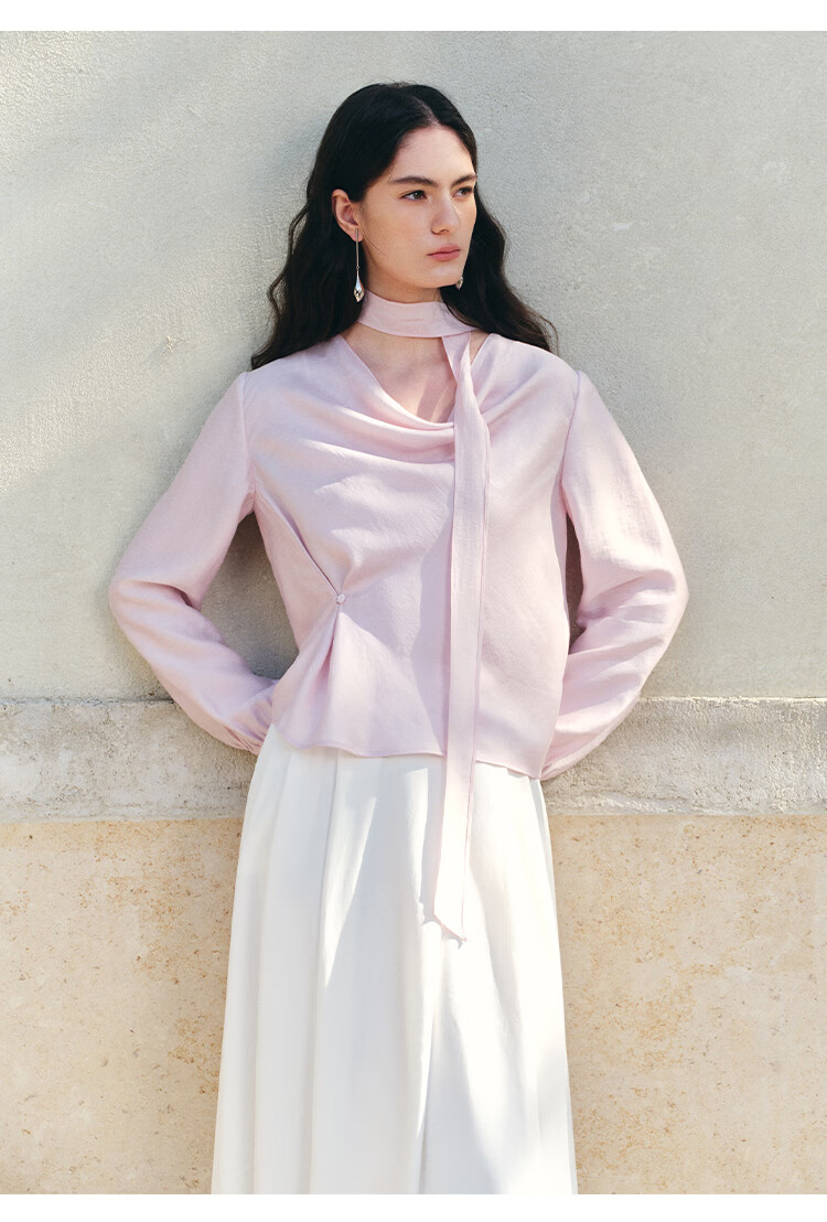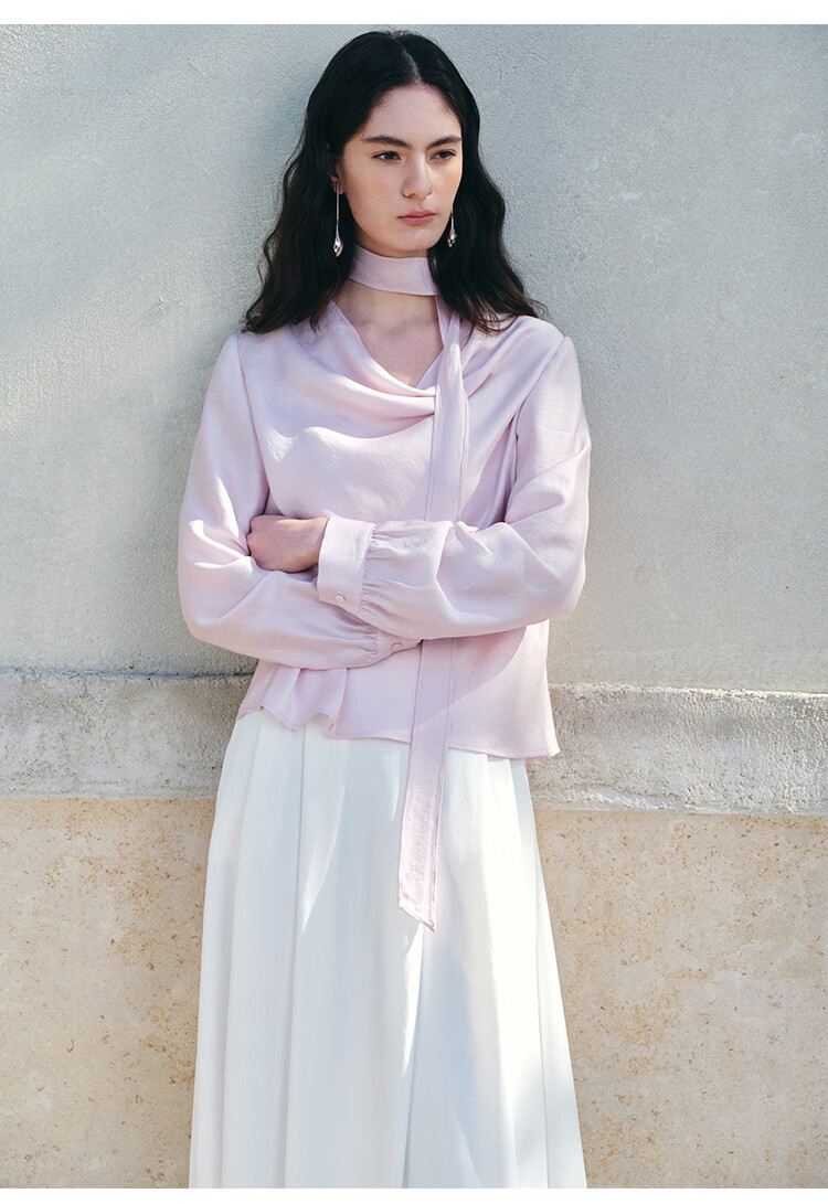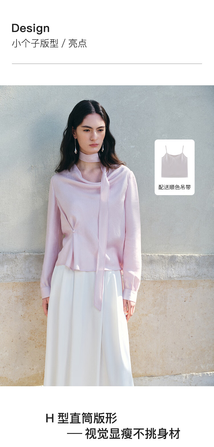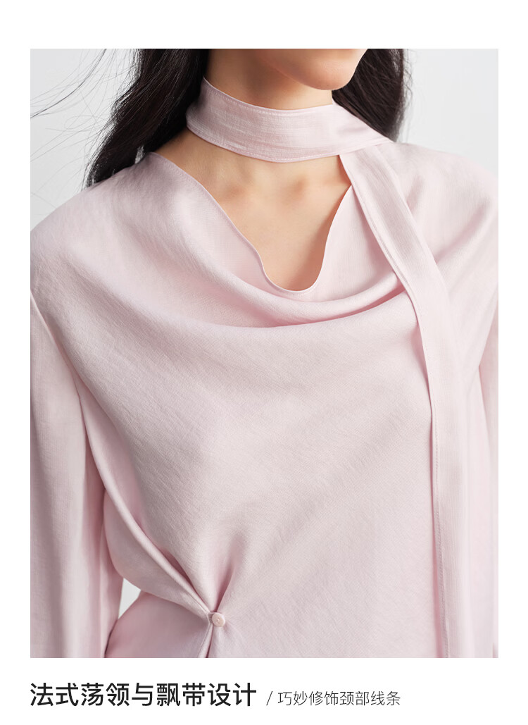 自巧小个子法式优雅荡领飘带衬衫一粒扣收腰上衣女2026年春季新品 粉紫色 XS (尺码:2)