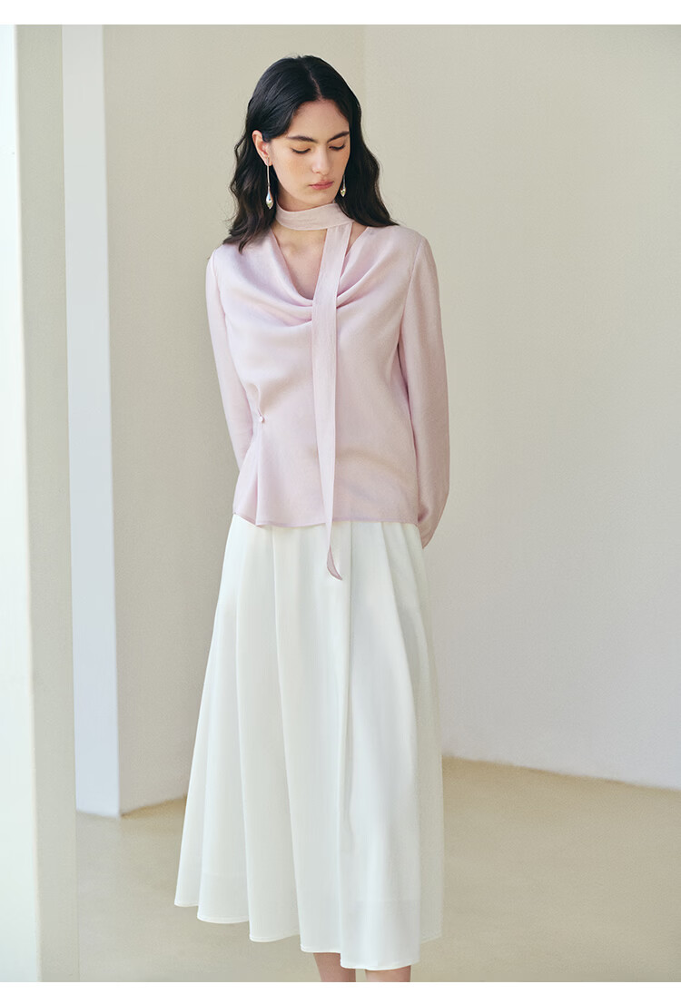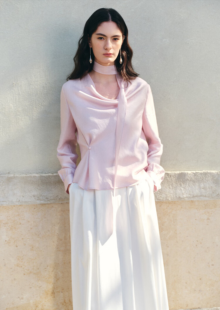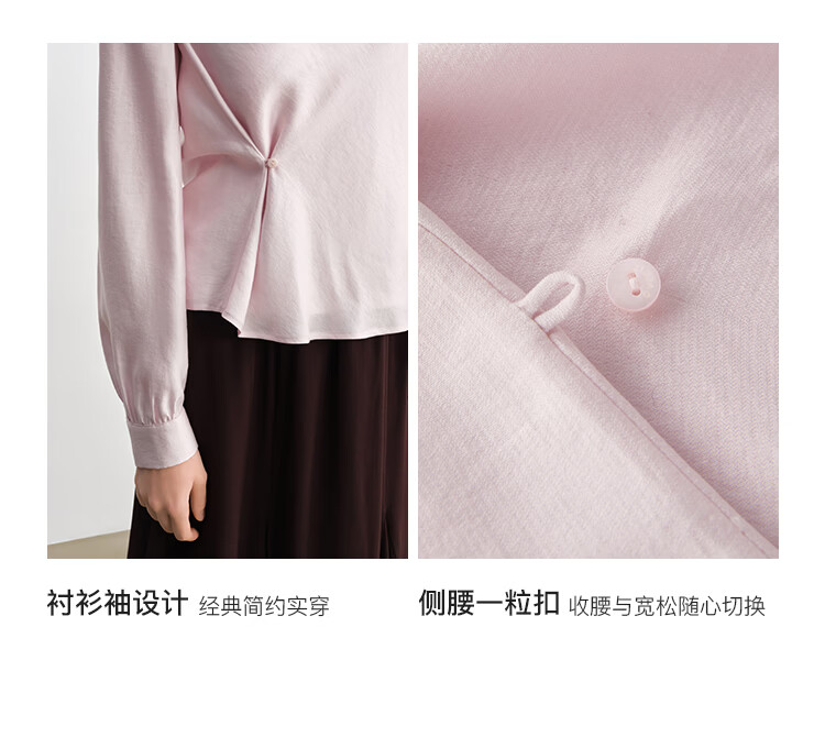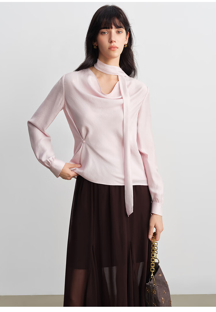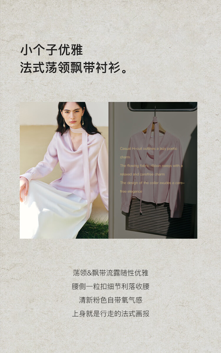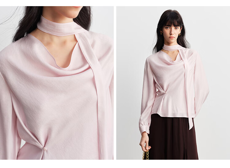 自巧小个子法式优雅荡领飘带衬衫一粒扣收腰上衣女2026年春季新品 粉紫色 XS (尺码:2)