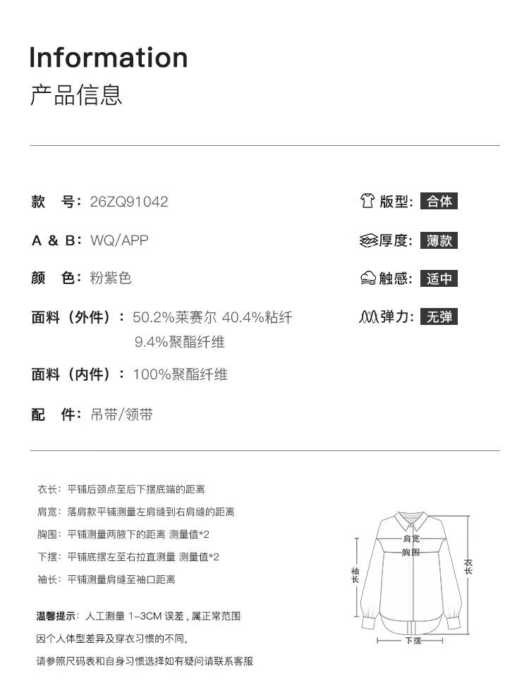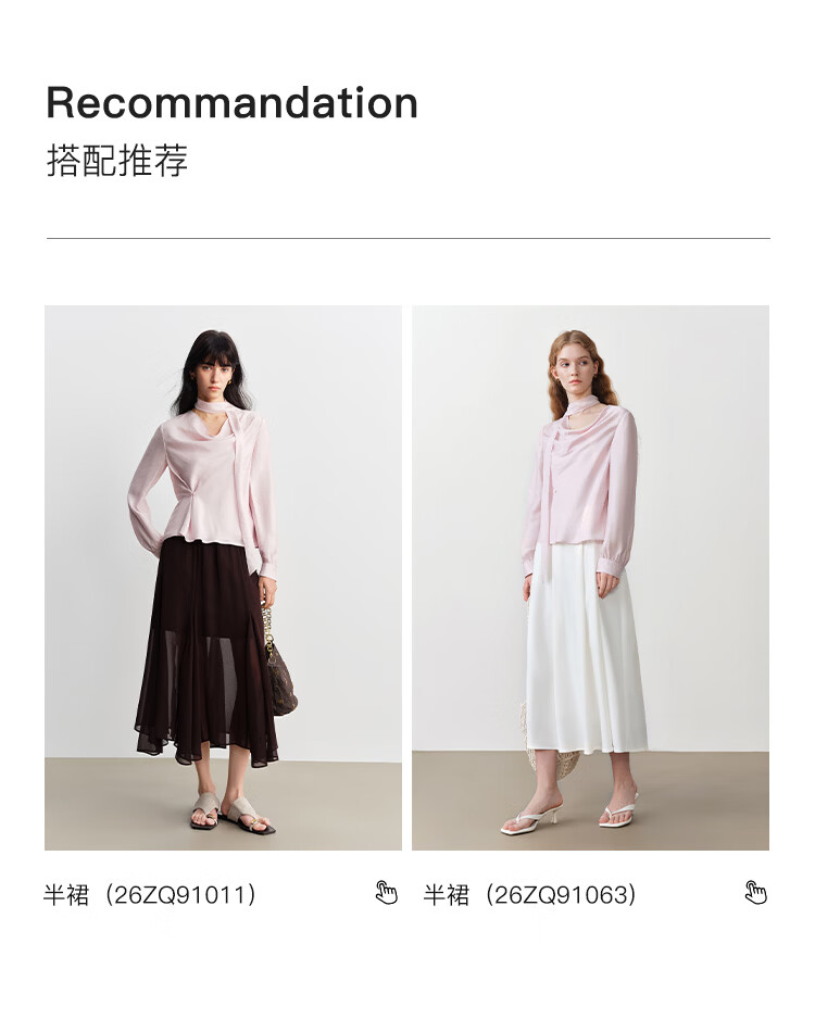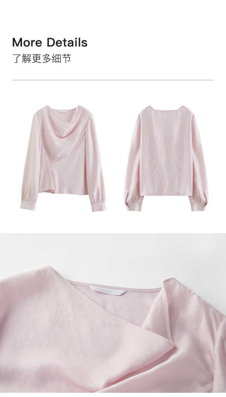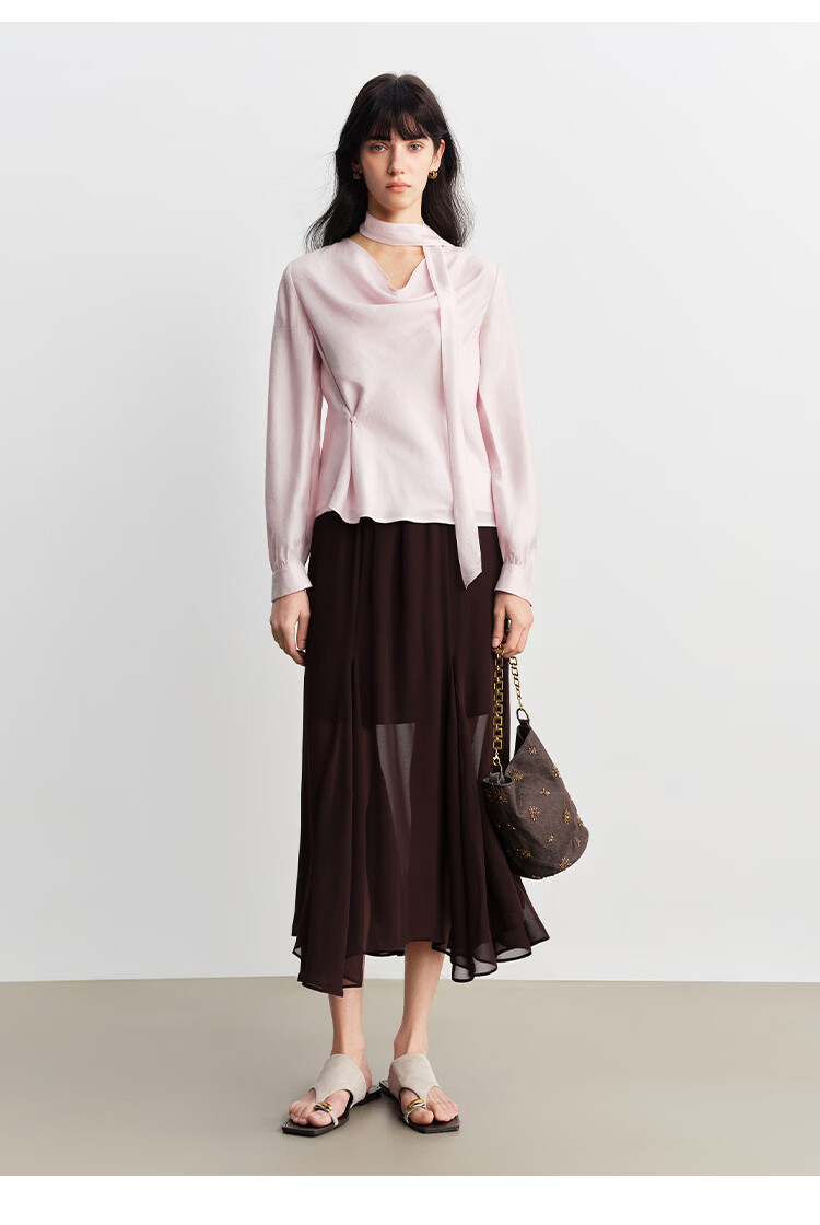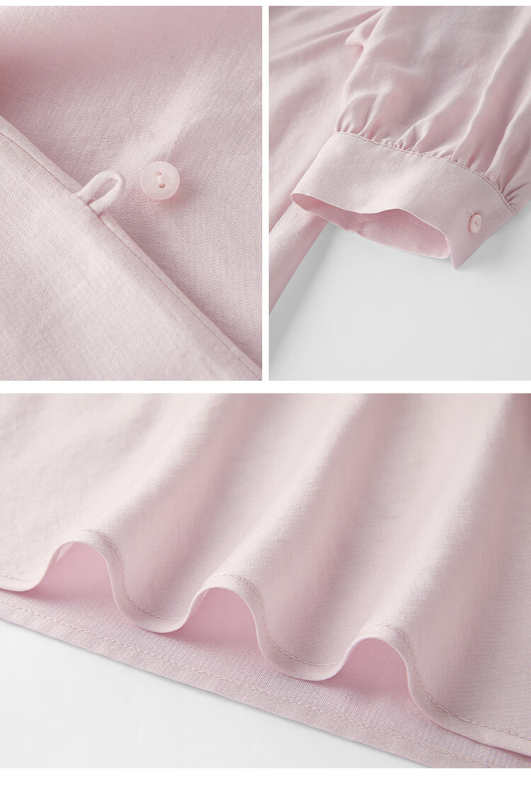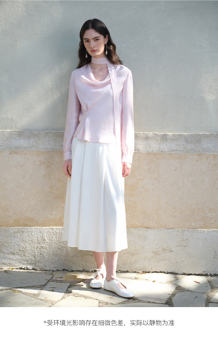 自巧小个子法式优雅荡领飘带衬衫一粒扣收腰上衣女2026年春季新品 粉紫色 XS (尺码:2)