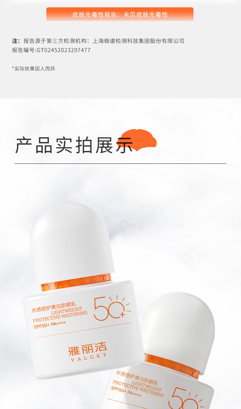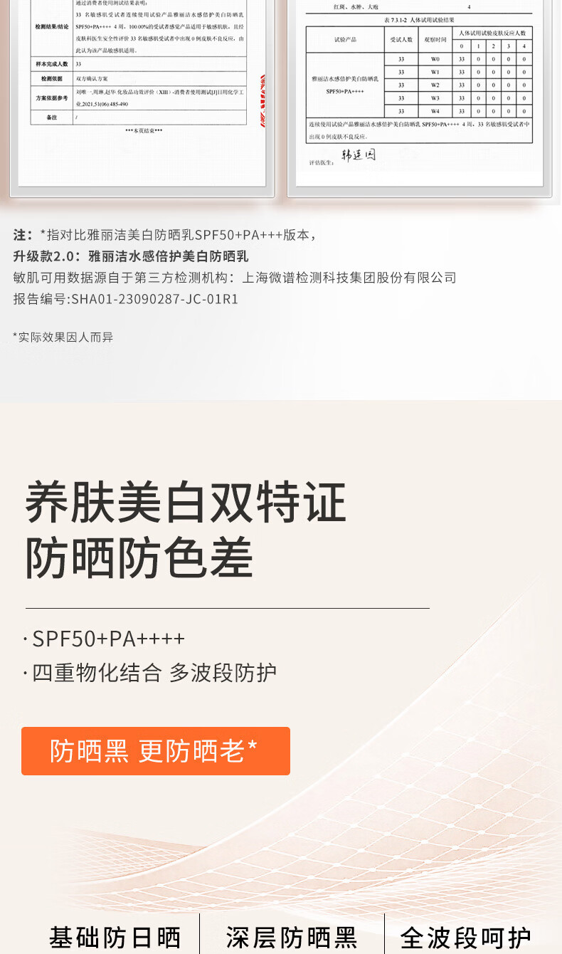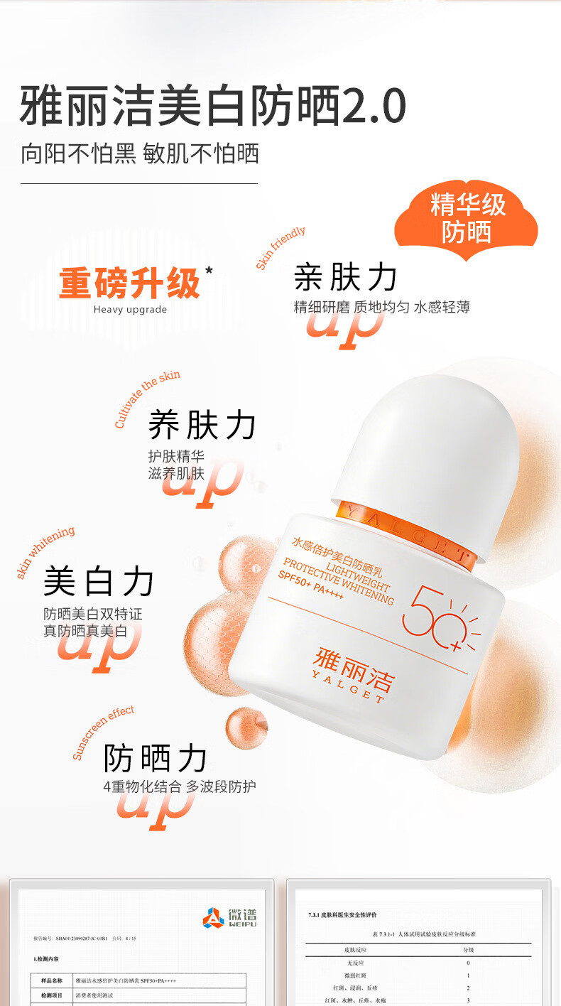 雅丽洁水感倍护美白防晒霜乳清爽敏感肌适用夏日高倍防晒户外正品 水感防晒50ml