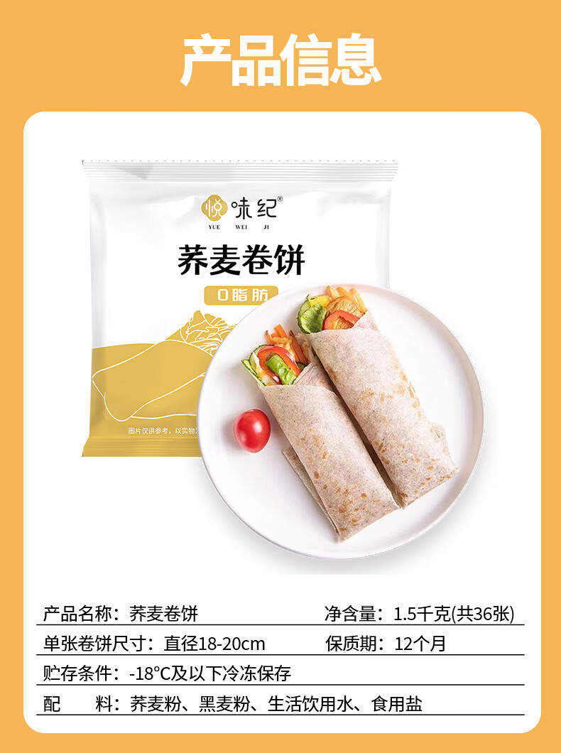 悦味纪 荞麦卷饼1.5kg 36张 0脂 代餐主食 手抓饼粗粮 早餐半成品 速食