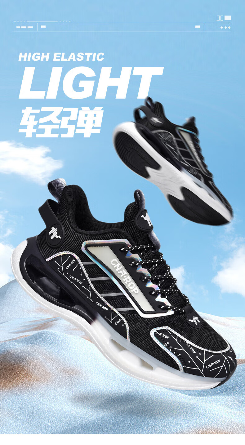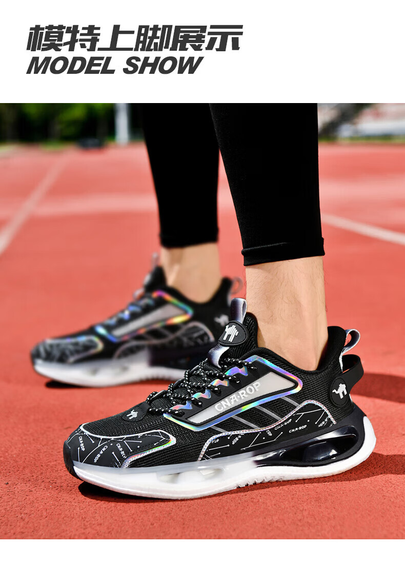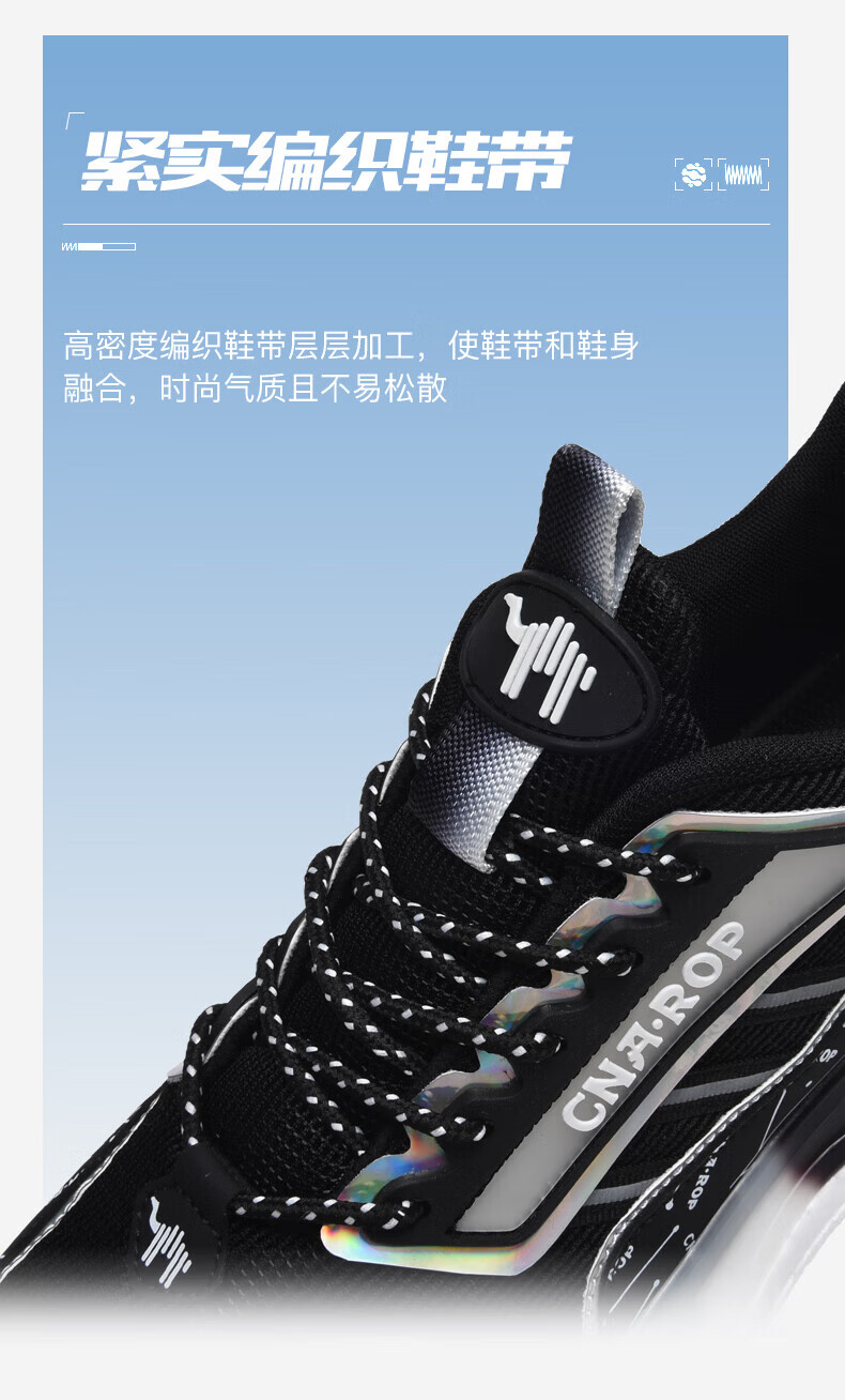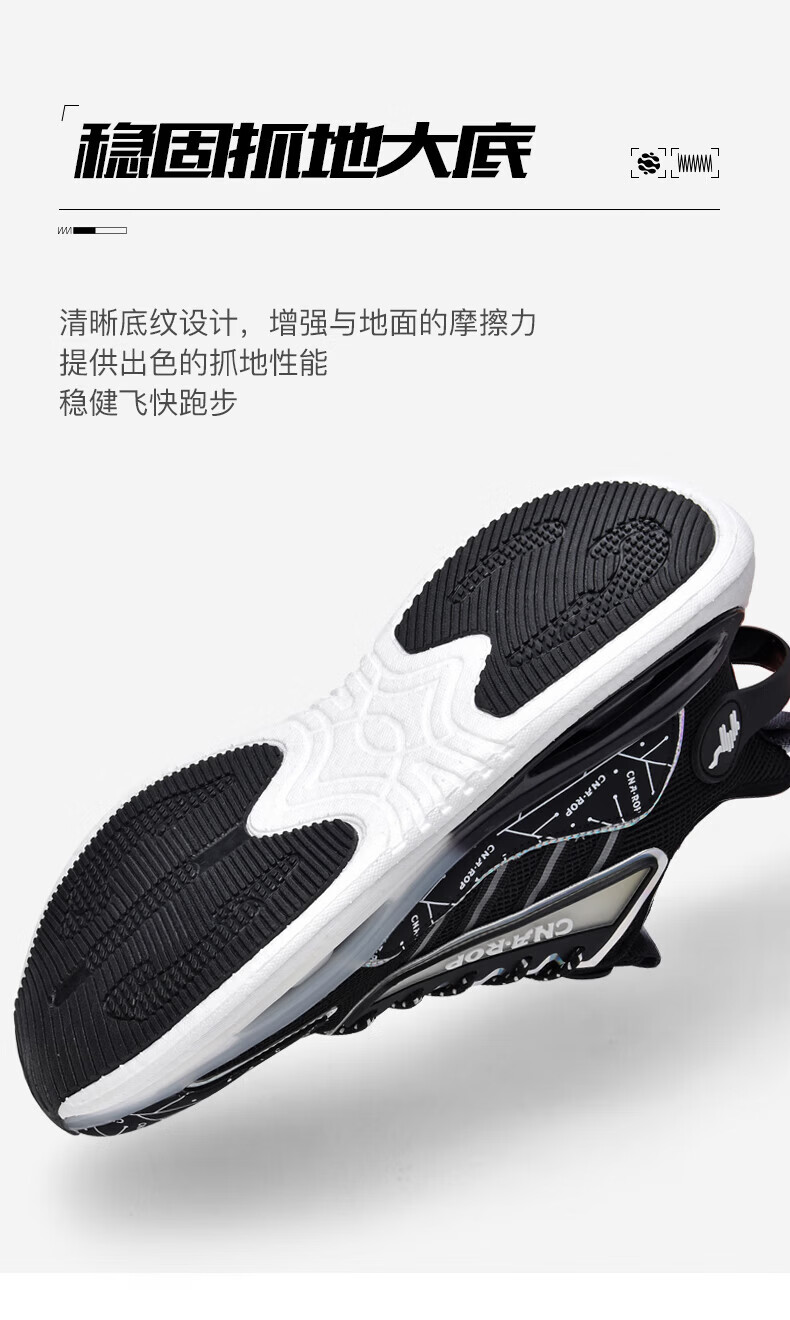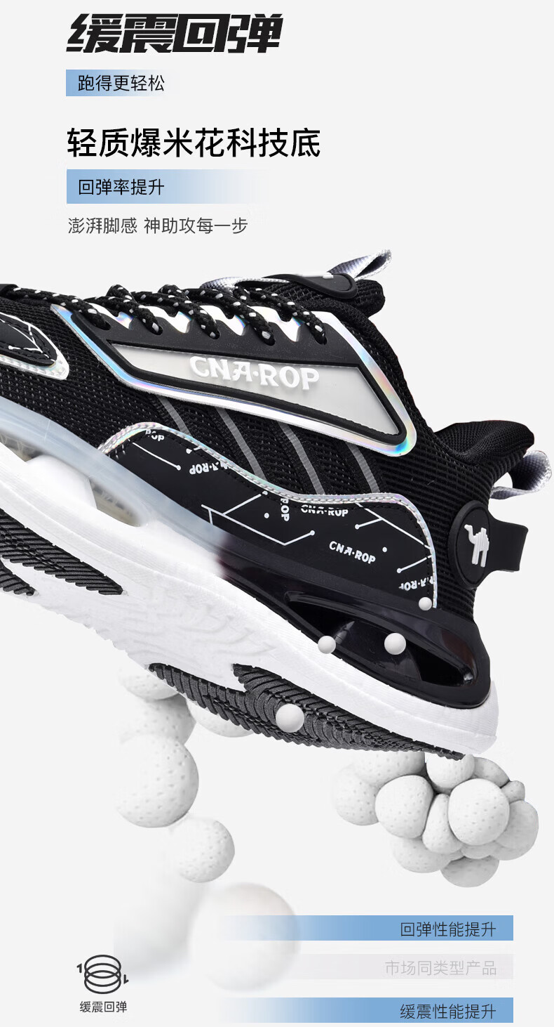 保罗骆驼男鞋 2026新款透气网面碳板运动跑步鞋 防滑高弹减震运动休 黑色【气柱科技系列QZ6118】 38 【标准运动鞋码】
