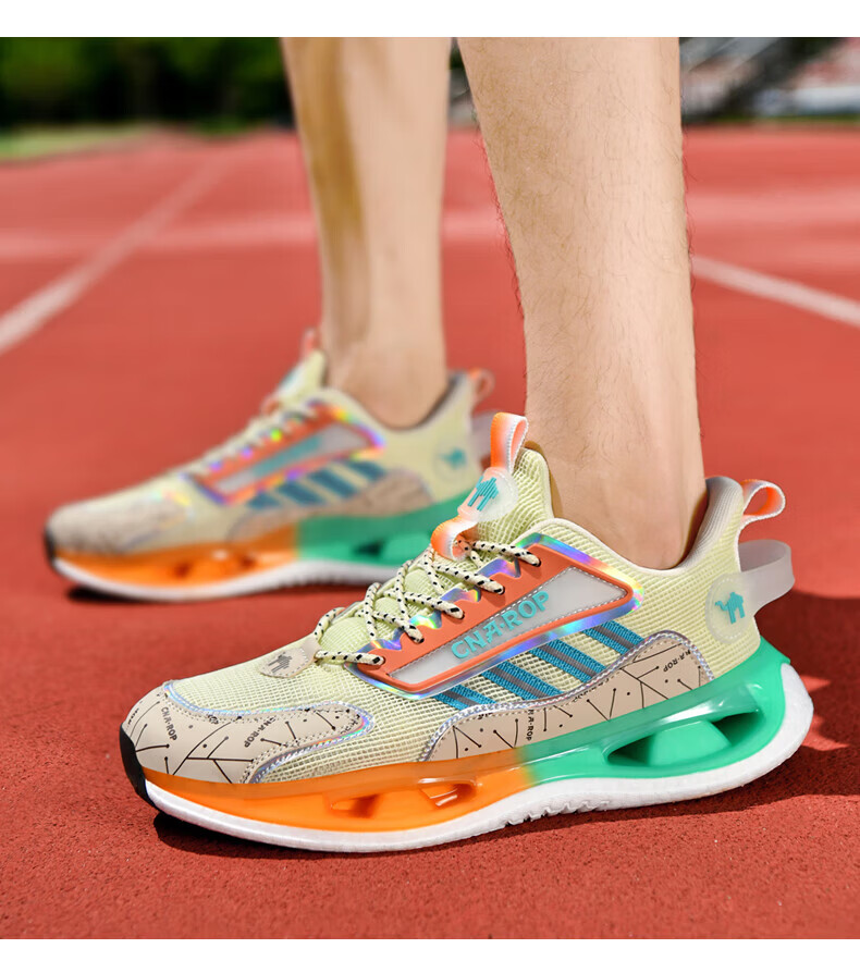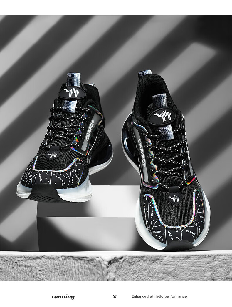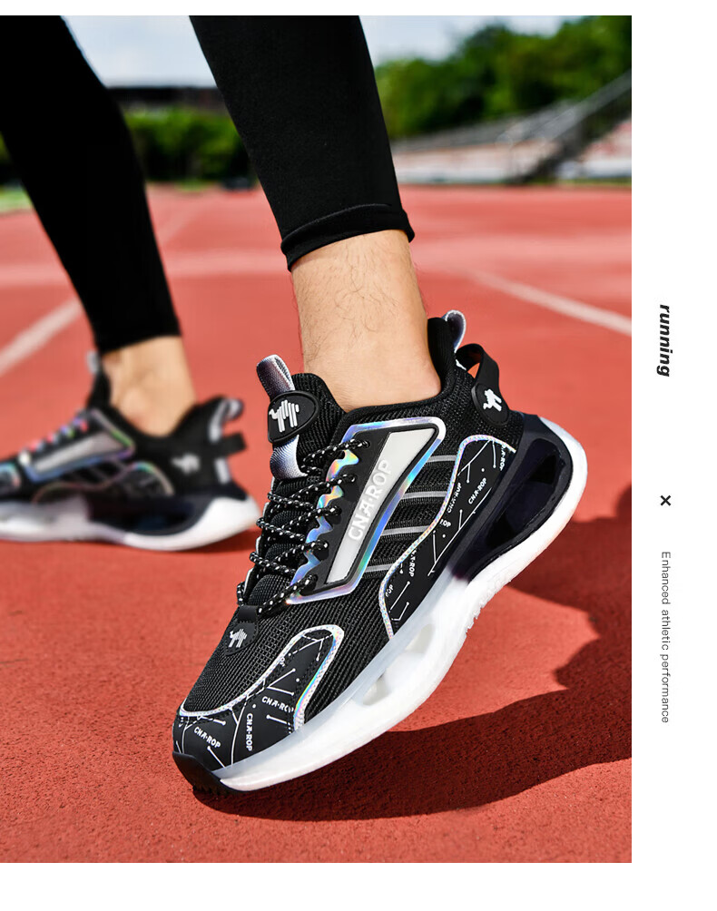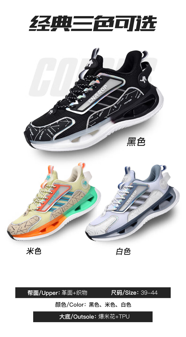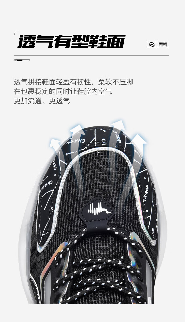 保罗骆驼男鞋 2026新款透气网面碳板运动跑步鞋 防滑高弹减震运动休 黑色【气柱科技系列QZ6118】 38 【标准运动鞋码】