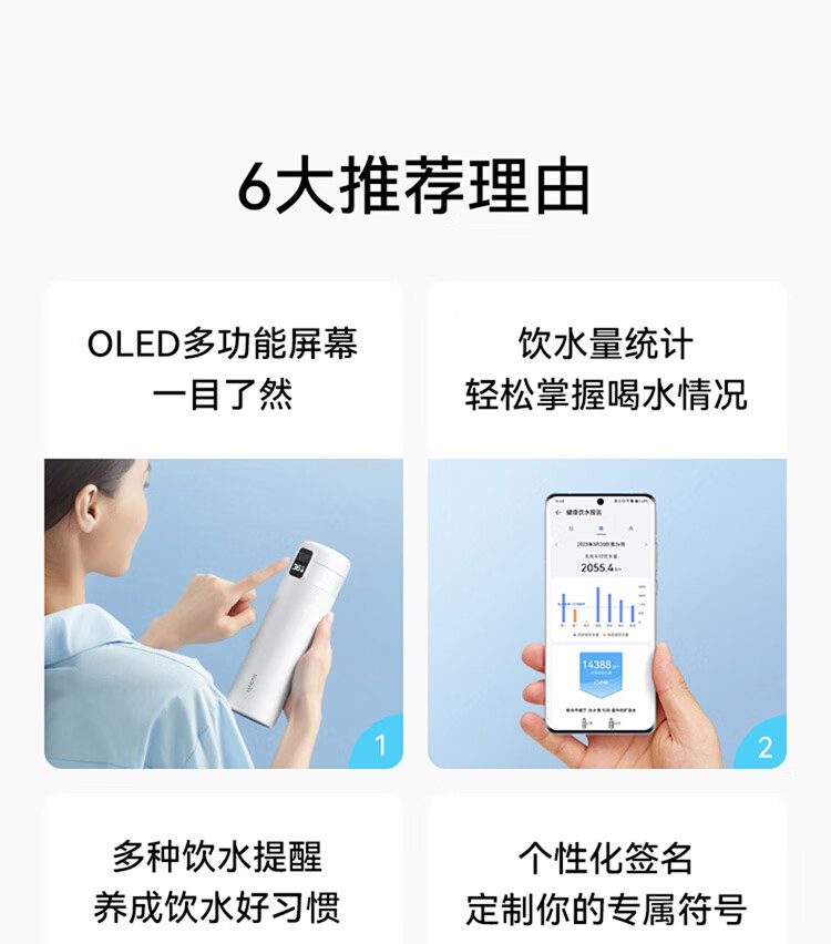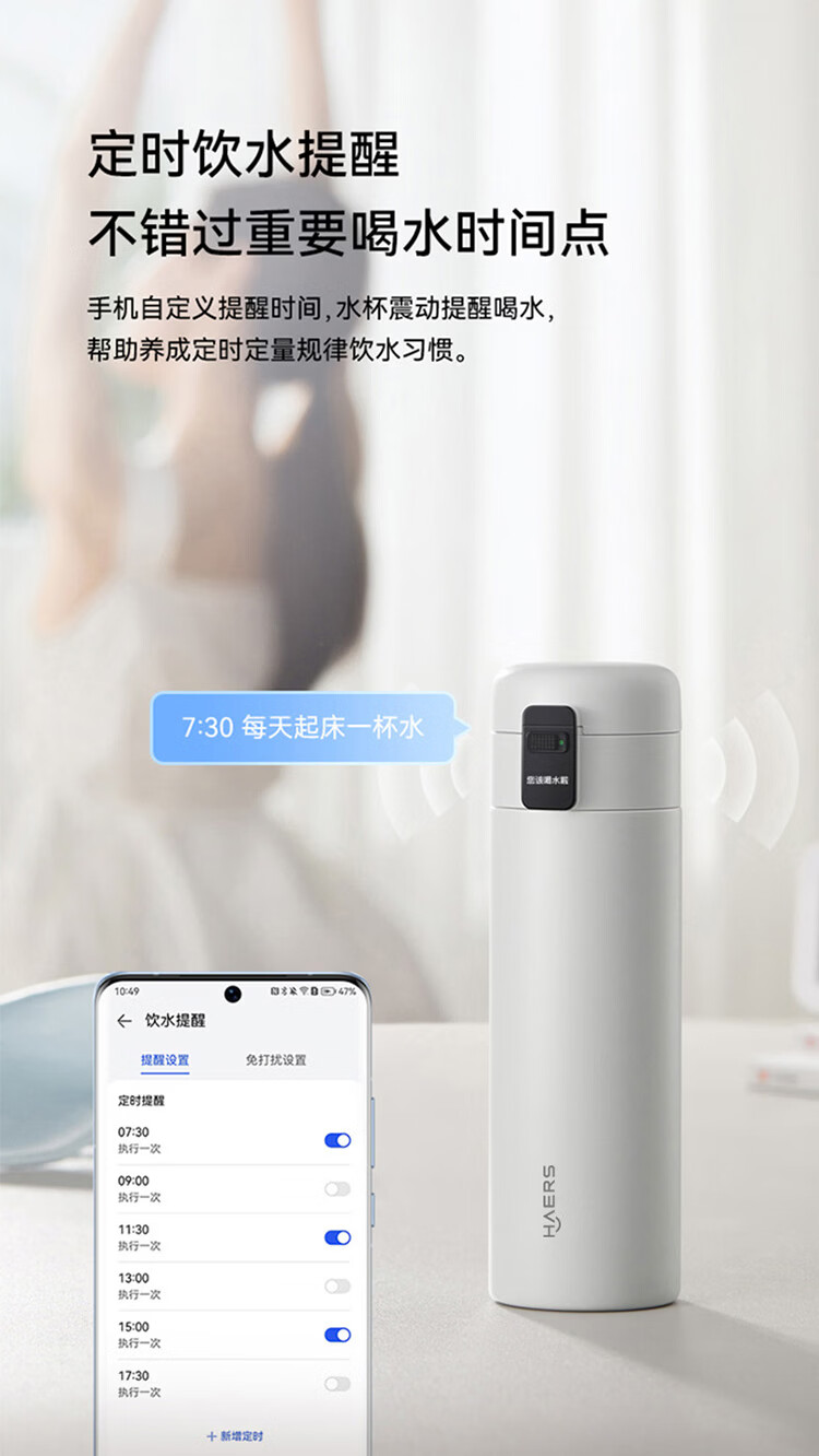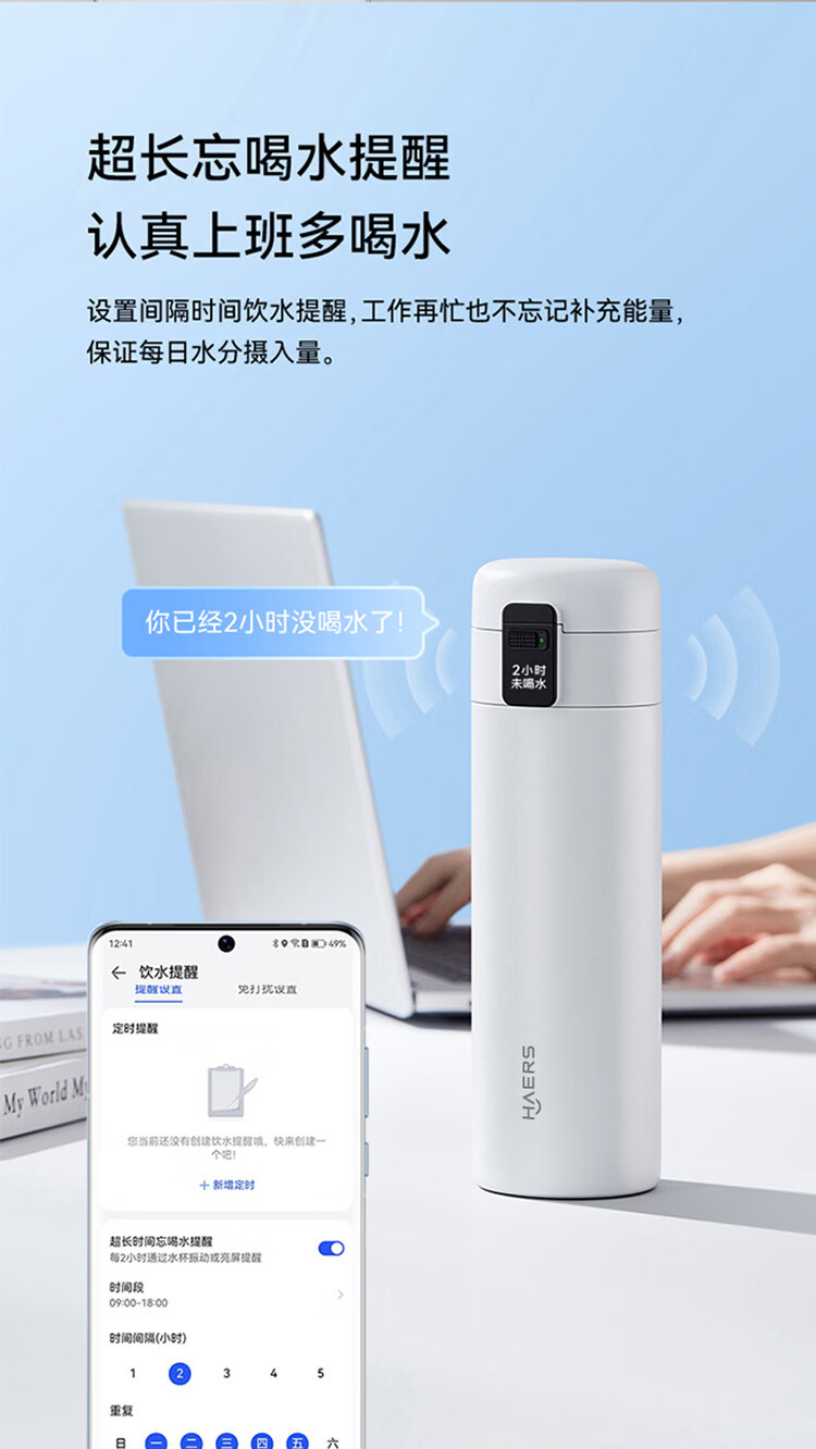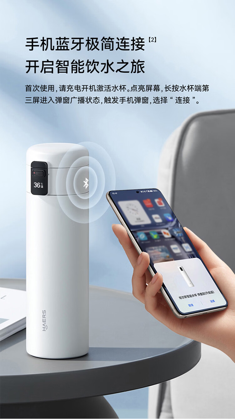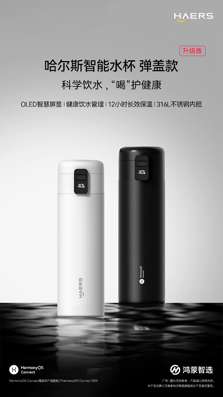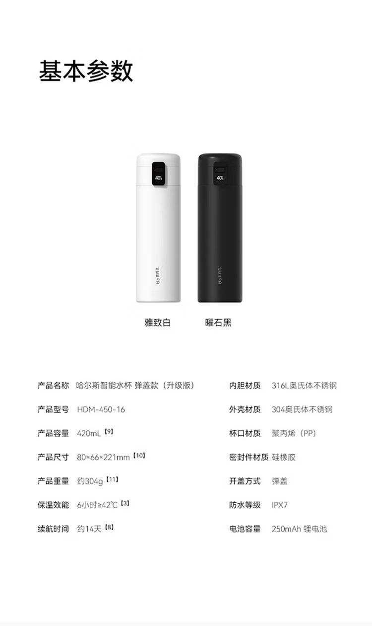鸿蒙智选哈尔斯保温杯智能弹盖杯420ml男女士妇女节女神伴手礼物