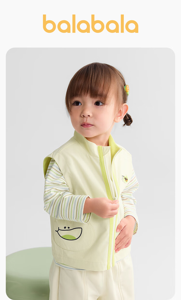 巴拉巴拉童装宝宝马甲男女童2025秋装防泼水加绒外套立领上衣208325101201
