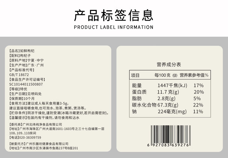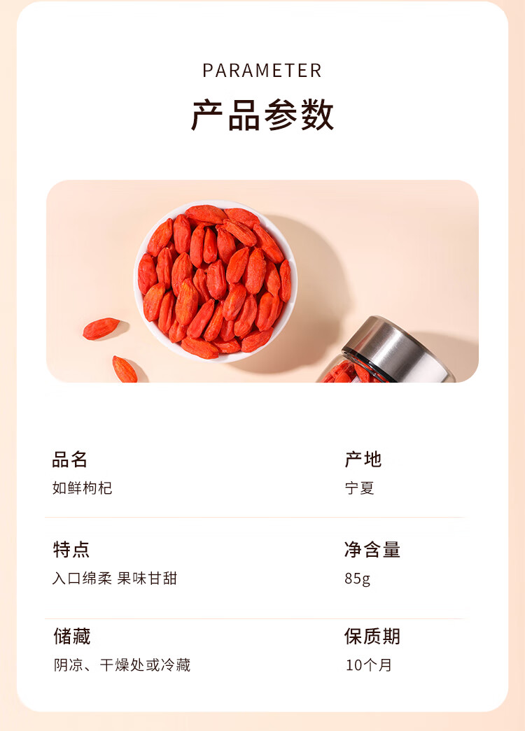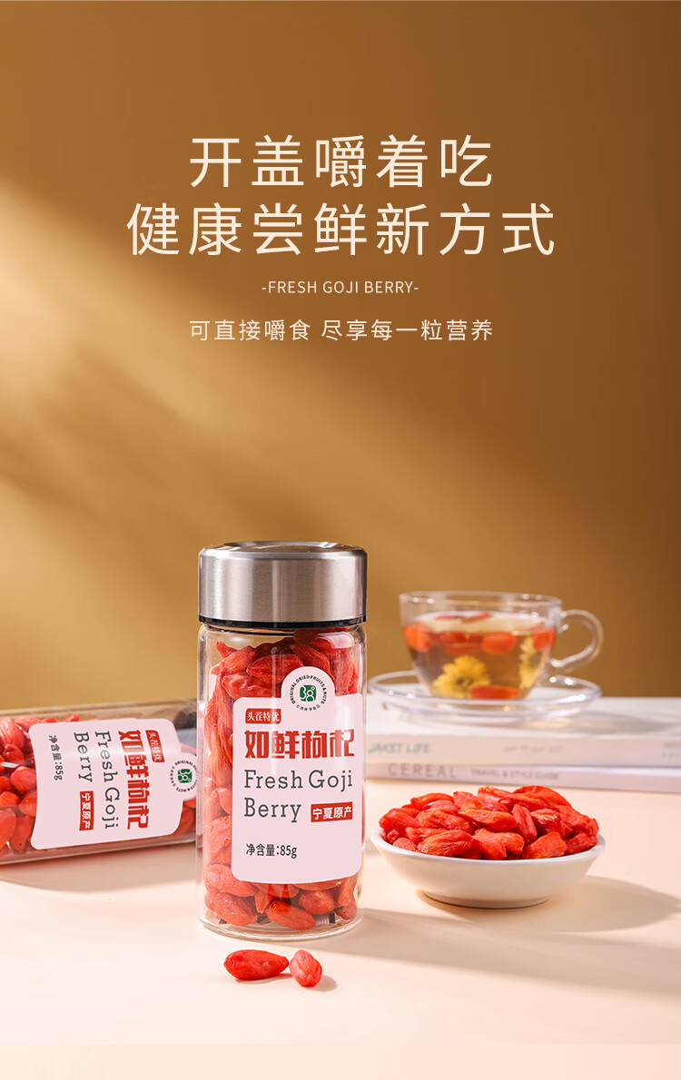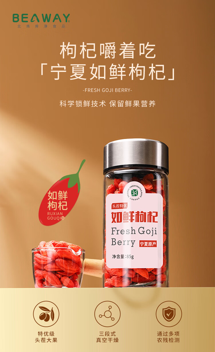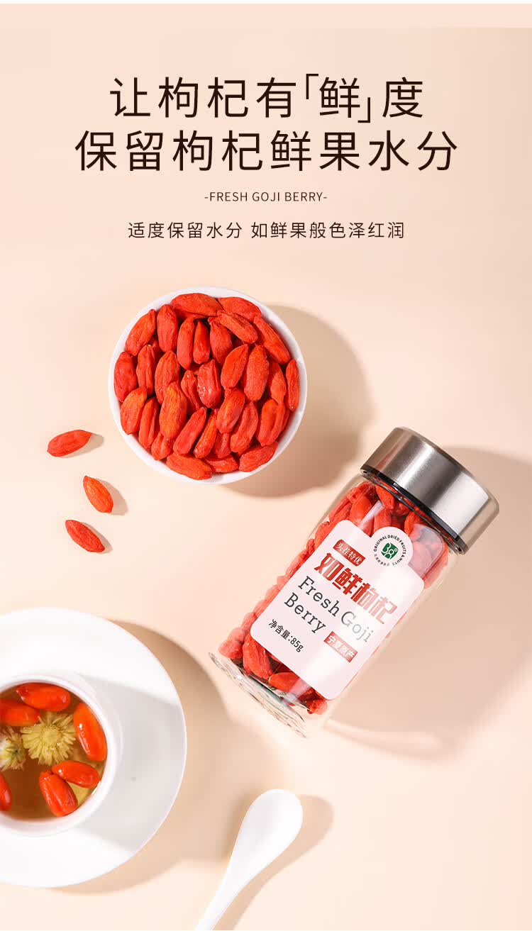 北纬纯净食品|38°宁夏头茬如鲜枸杞冻干精选特优级颗粒无熏硫煲汤泡水 如鲜枸杞双支礼盒 85g*2罐