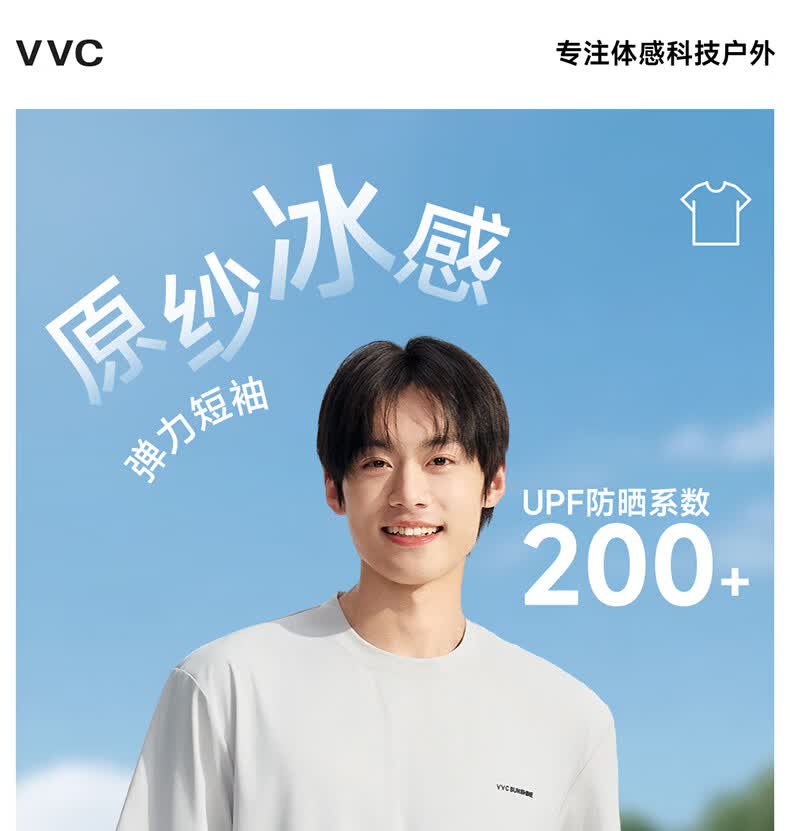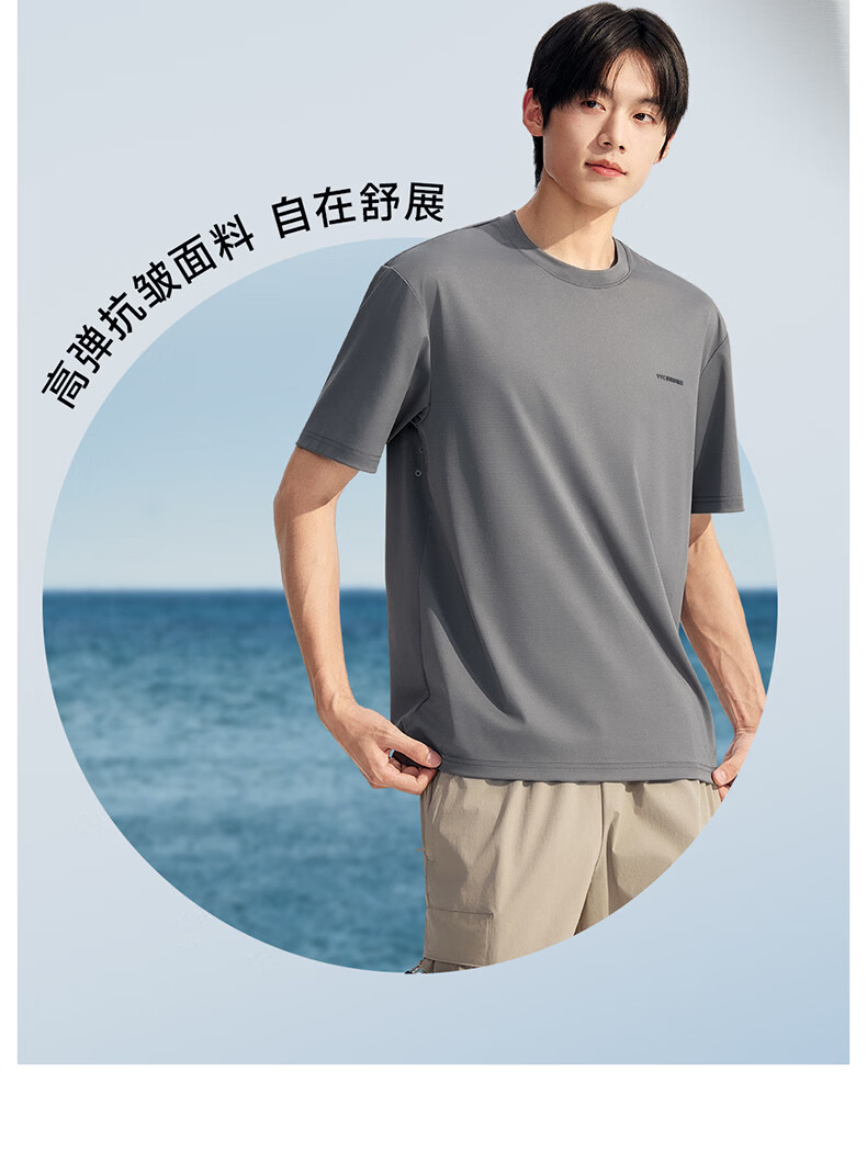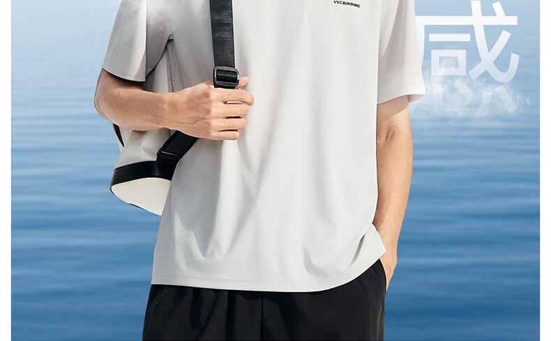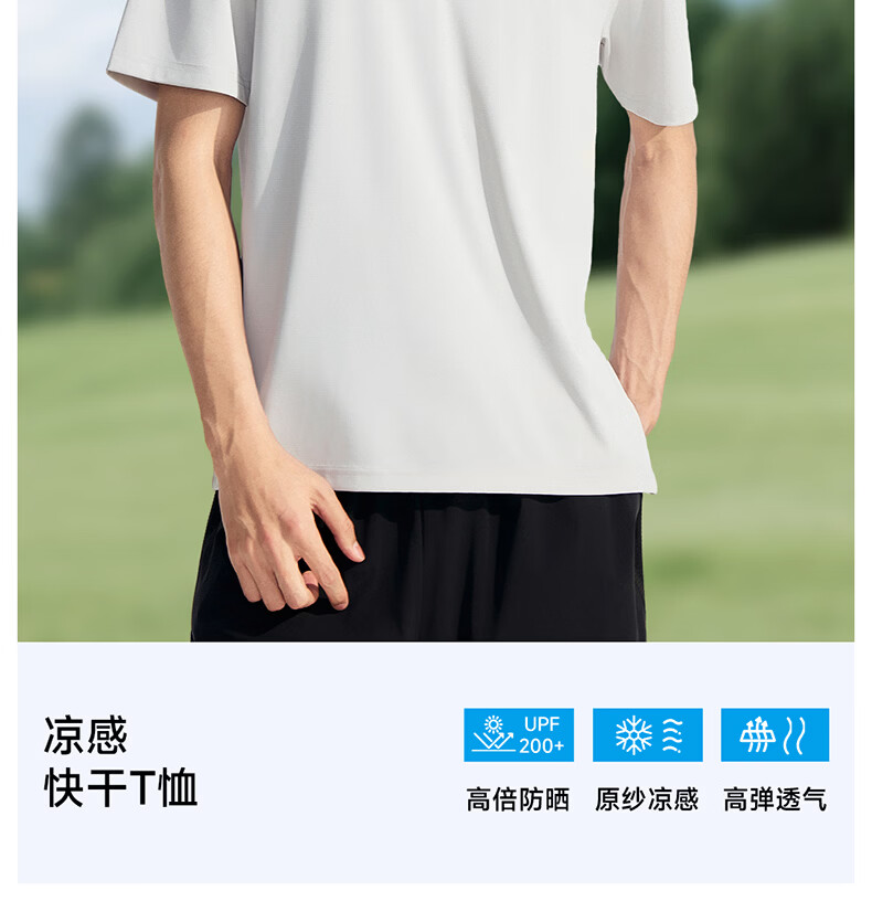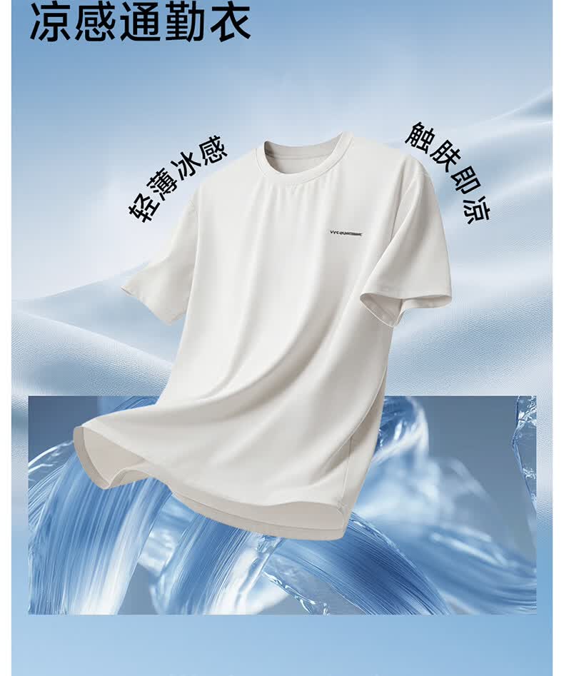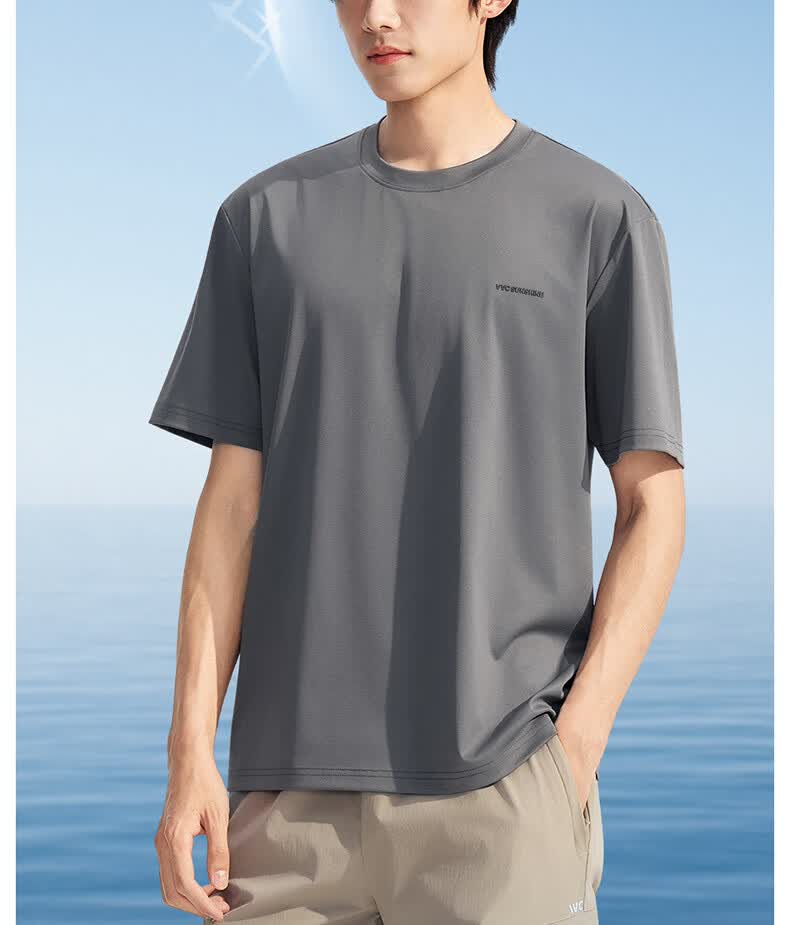 VVC防晒短袖T恤男原纱冰感短袖夏季透气凉感防紫外线运动速干上衣 雁羽灰 L