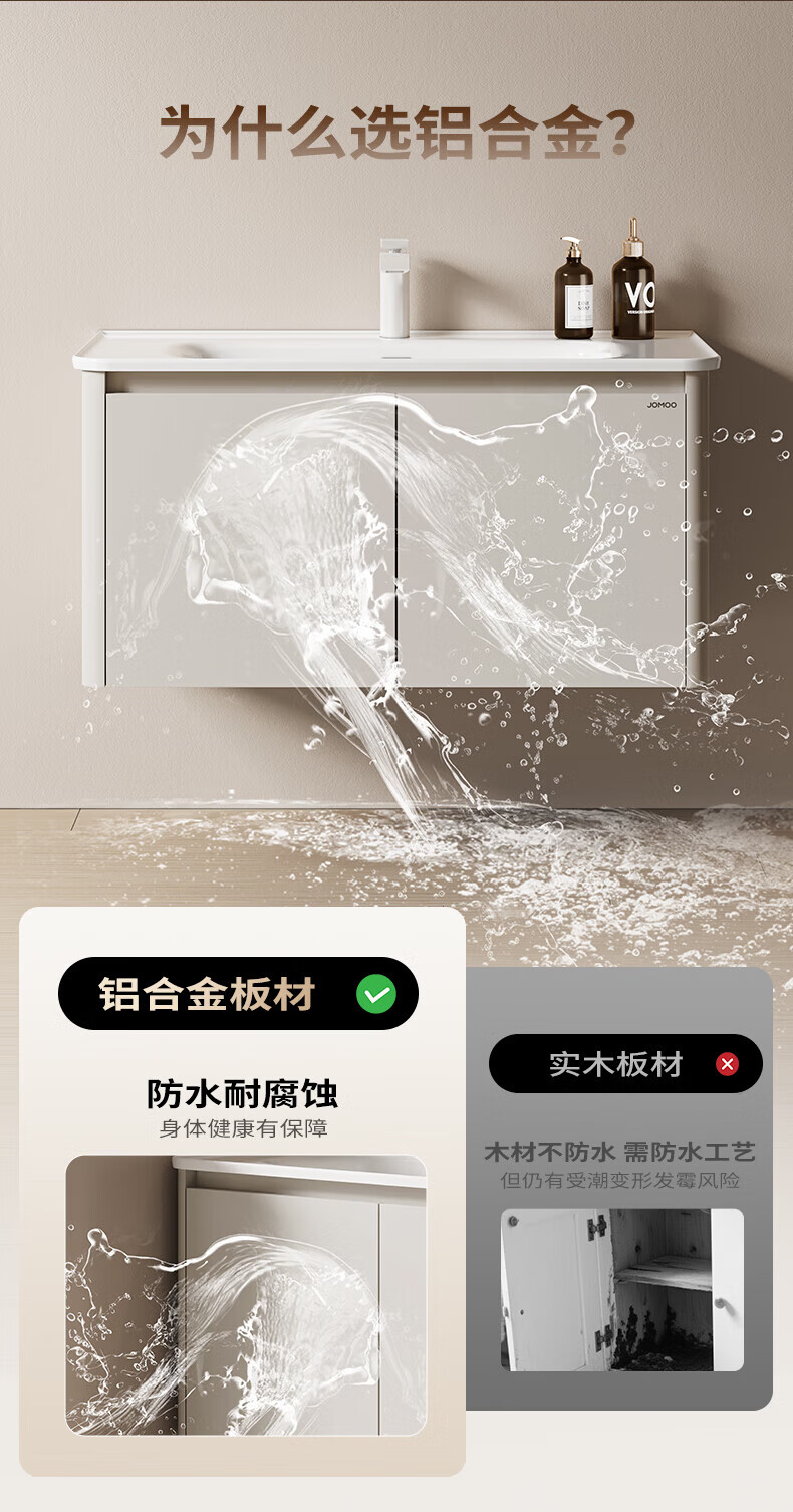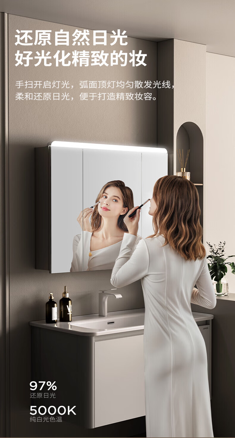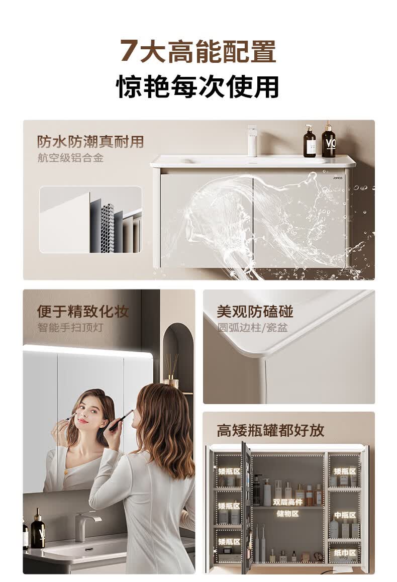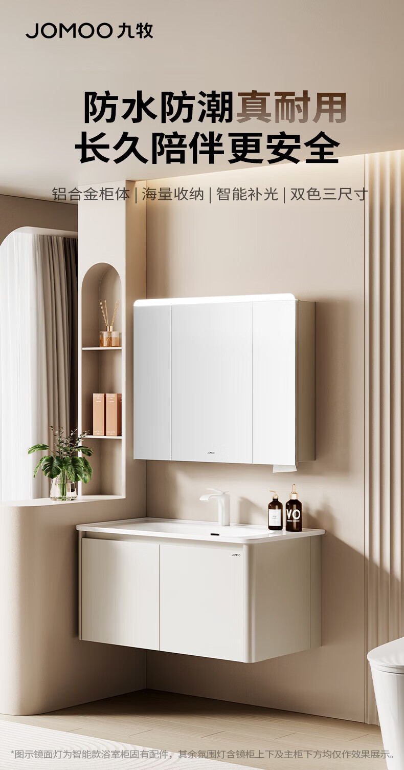 九牧(JOMOO)浴室柜洗脸盆柜陶瓷一体盆防水防潮铝合金组合洗漱盆无龙头A2736 【经典 镜背收纳|防潮】80cm