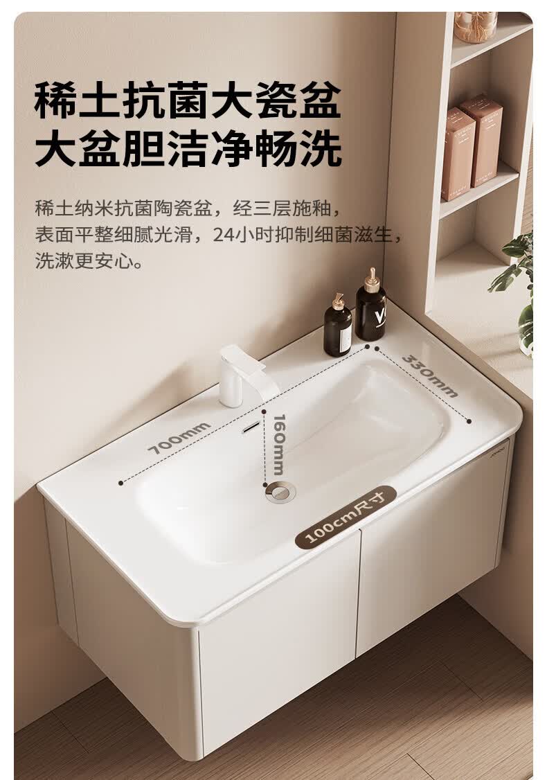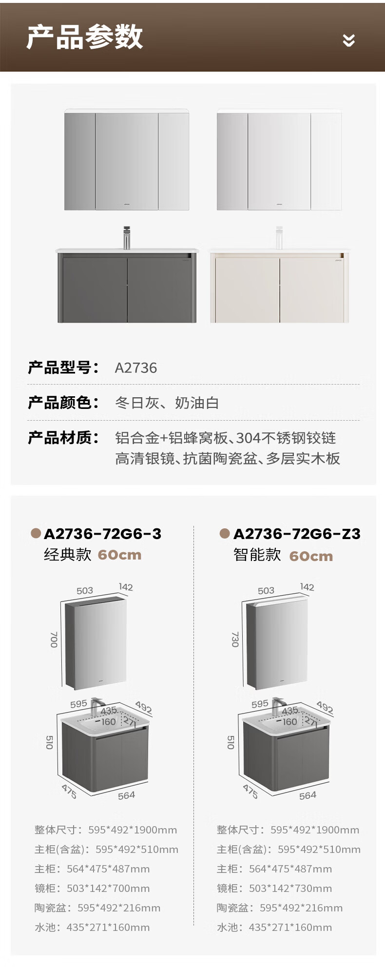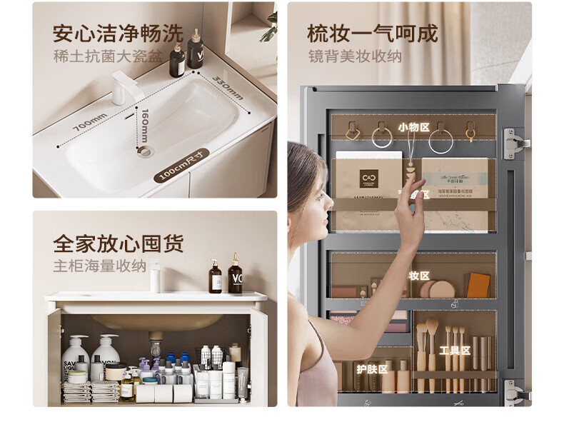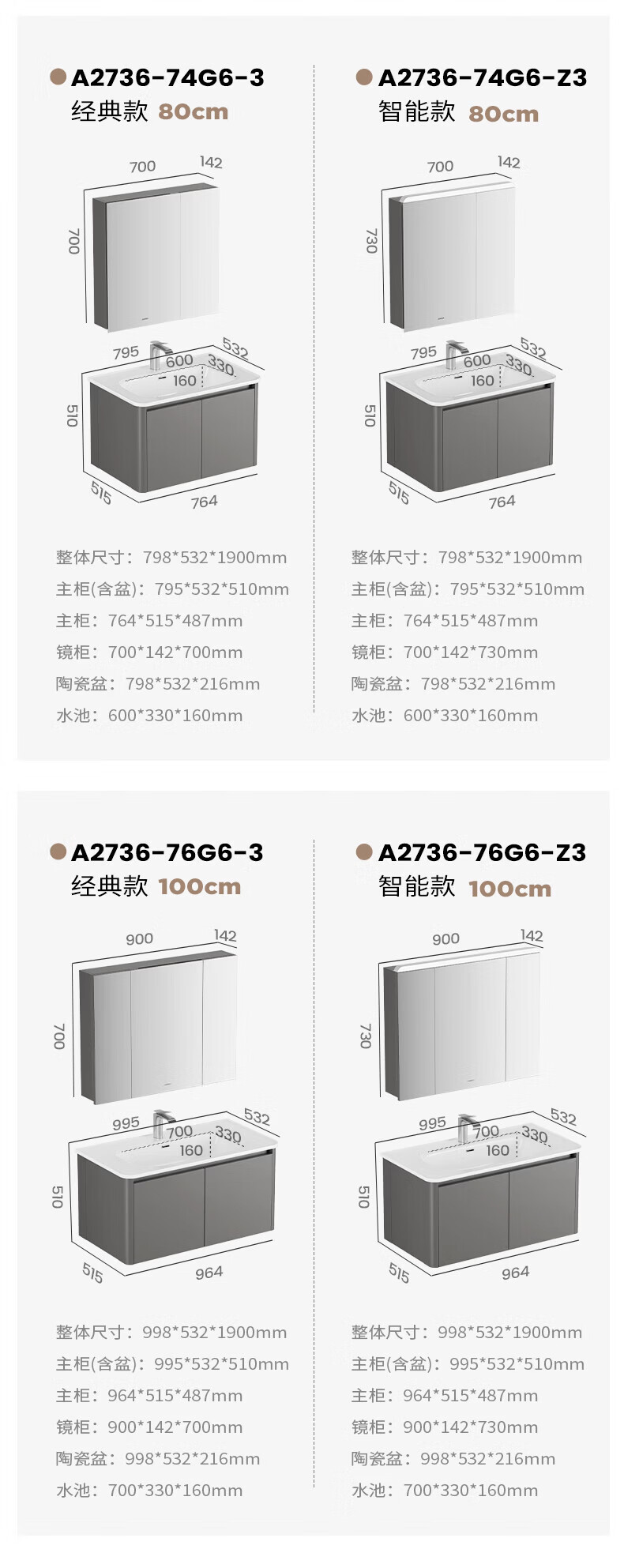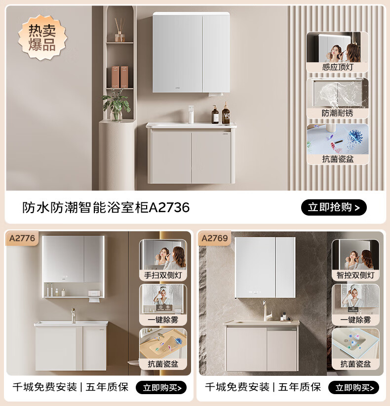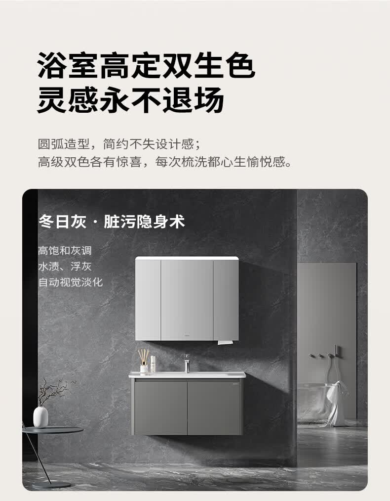 九牧(JOMOO)浴室柜洗脸盆柜陶瓷一体盆防水防潮铝合金组合洗漱盆无龙头A2736 【经典 镜背收纳|防潮】80cm