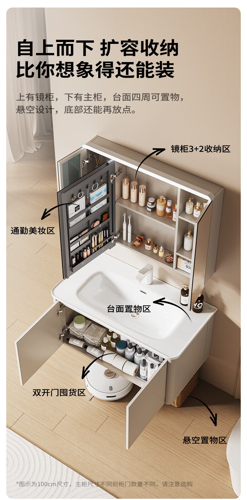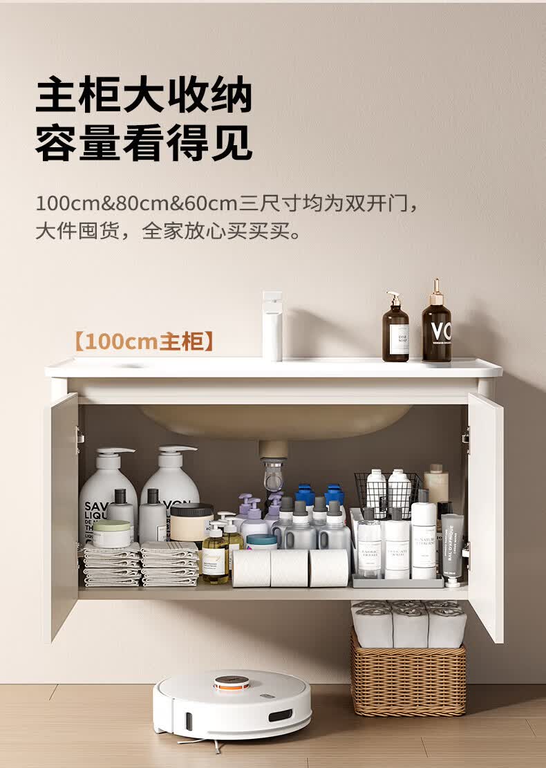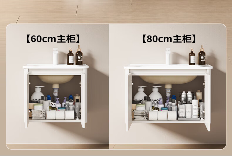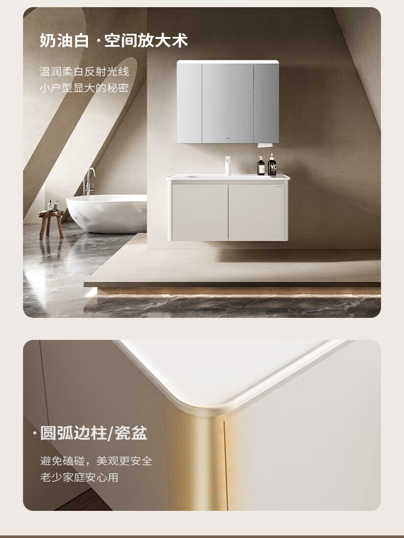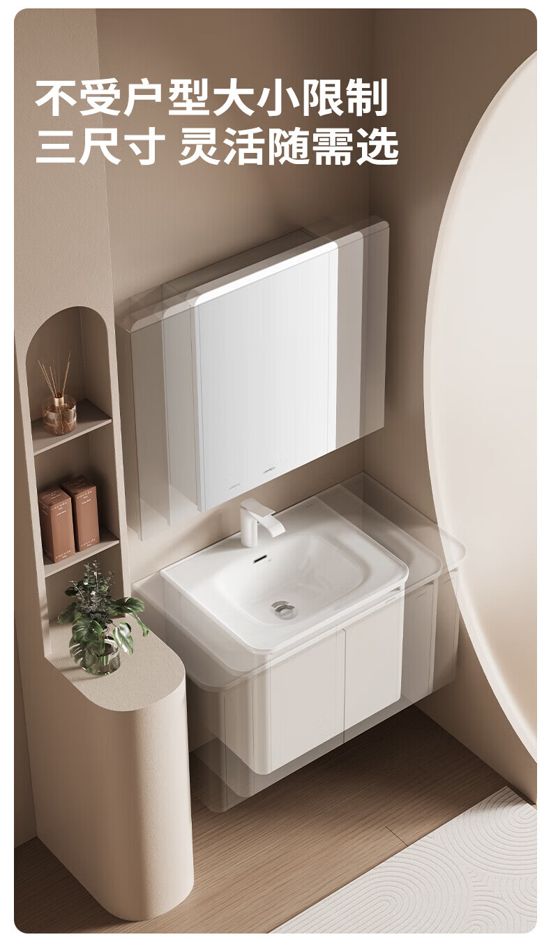科勒(KOHLER)科勒陶比浴室柜家用卫生间台下盆洗脸盆奶油风小户型挂墙浴室柜 80cm暖白色浴室柜|铝合金收纳全面镜|易洁陶瓷盆