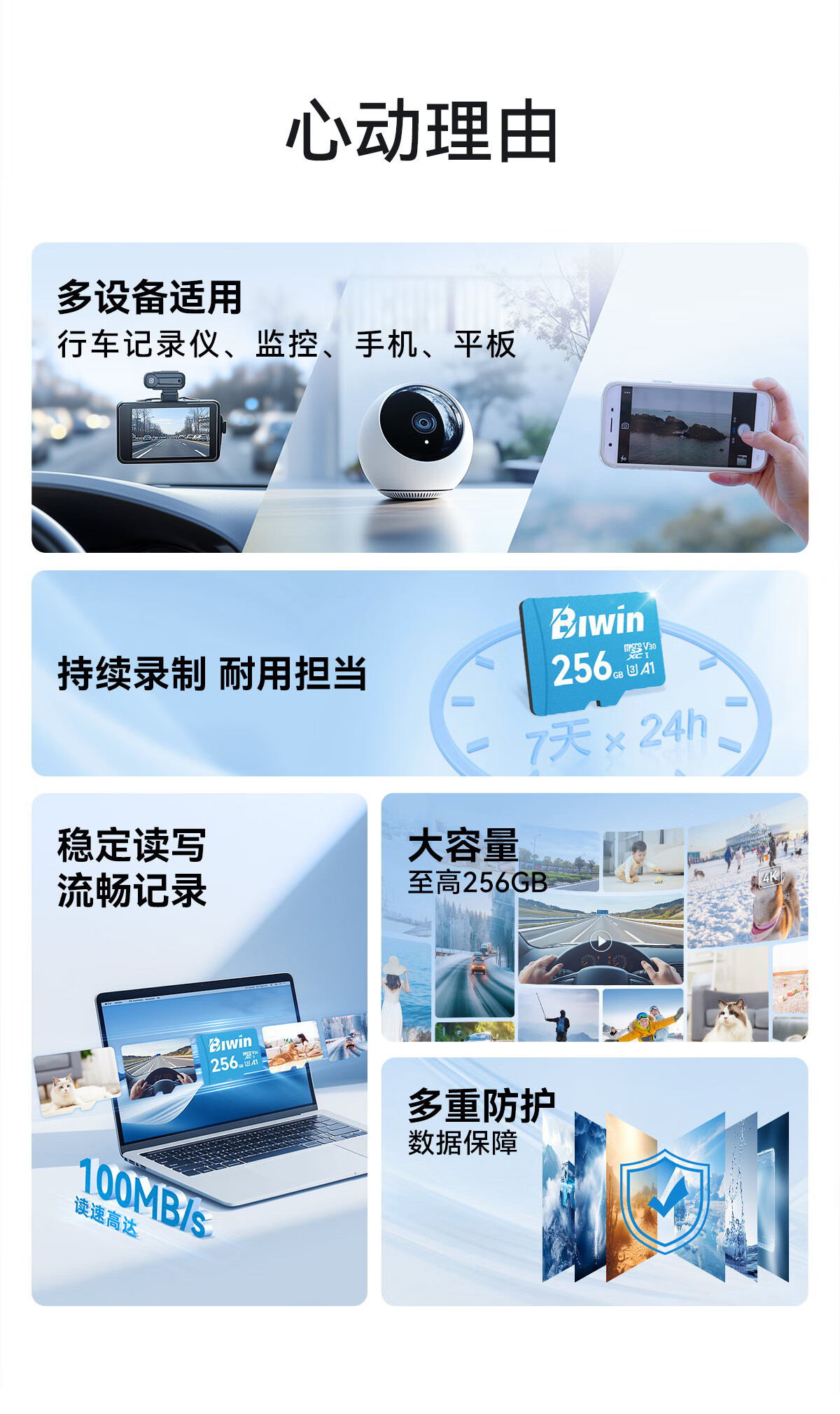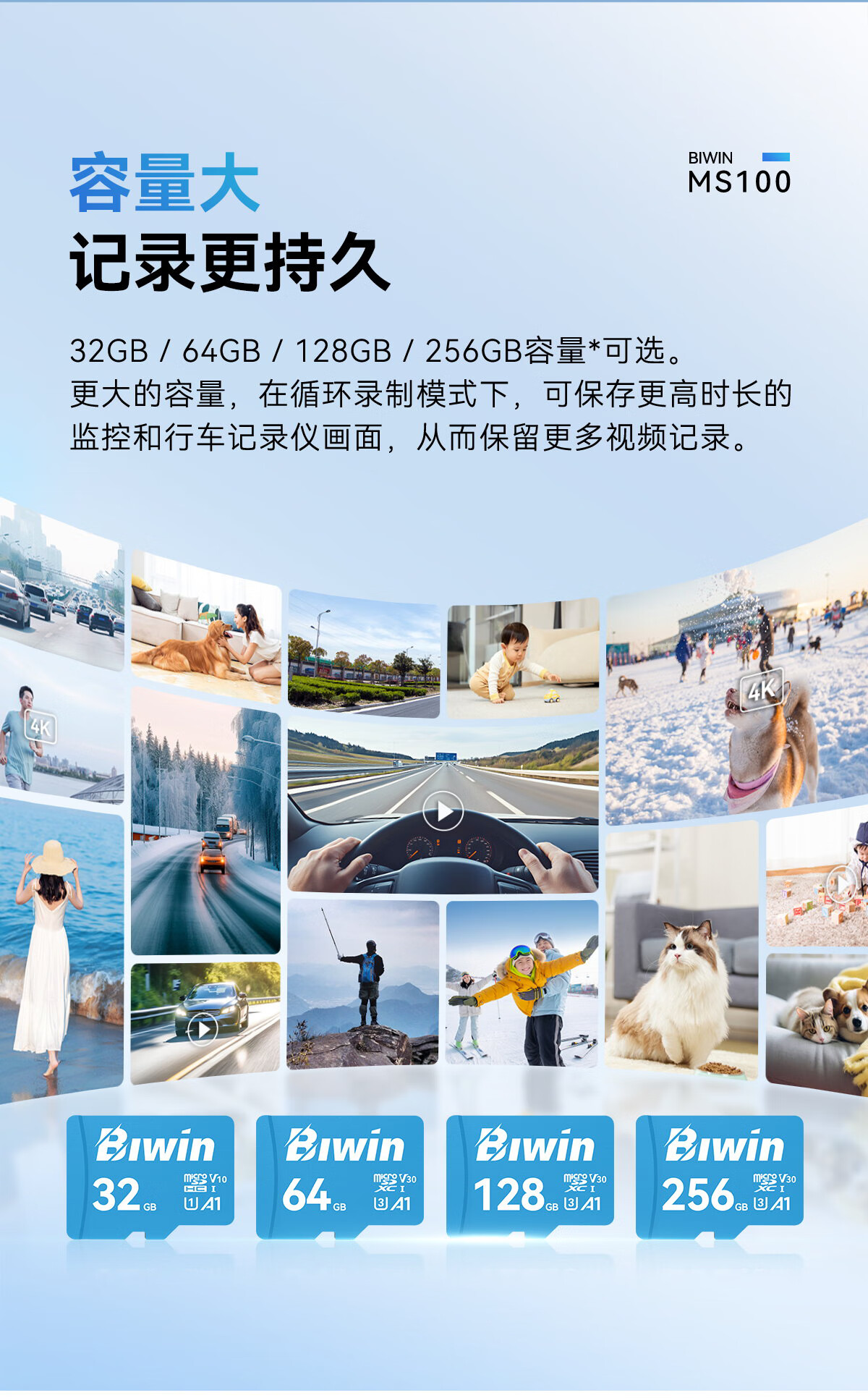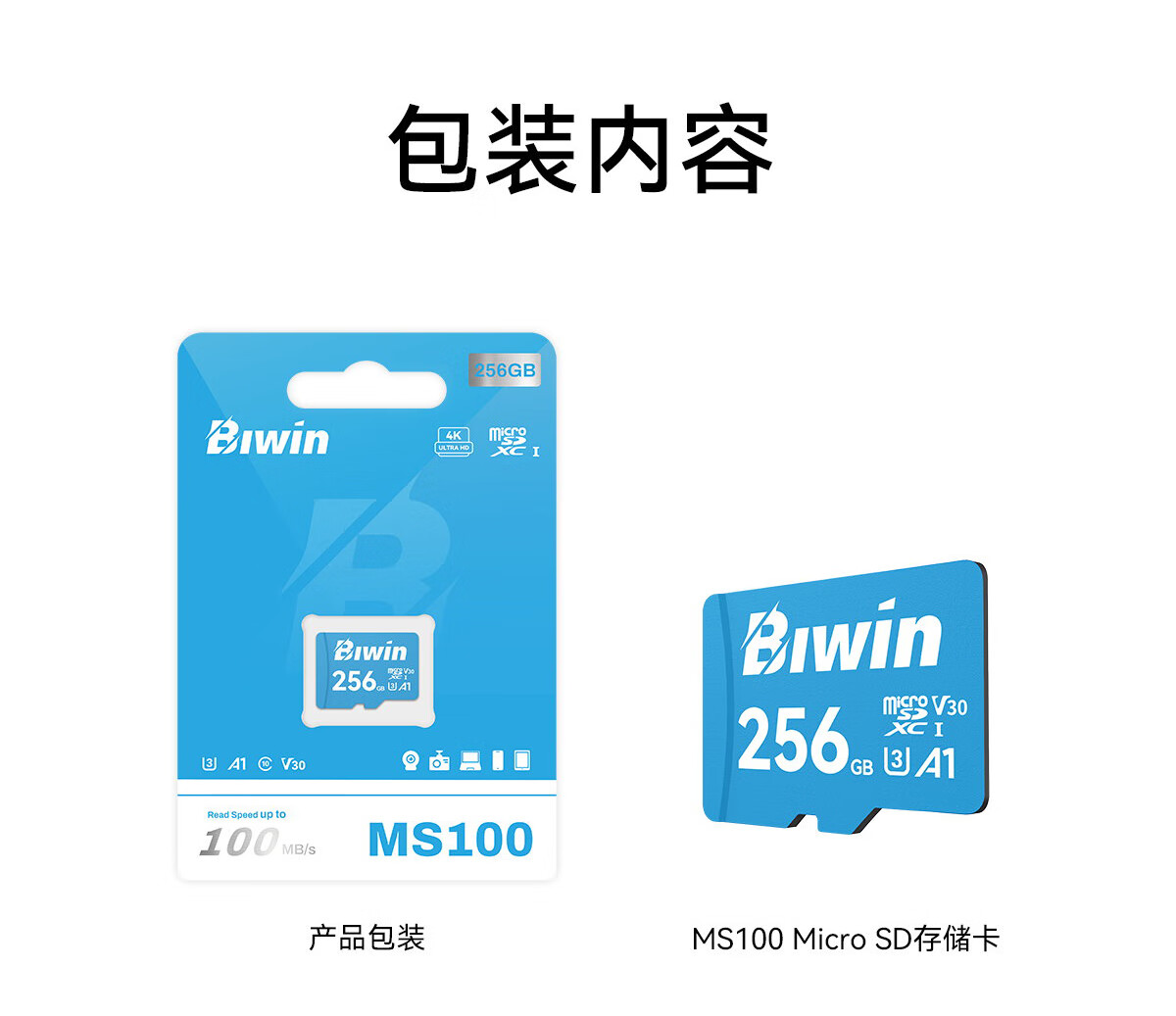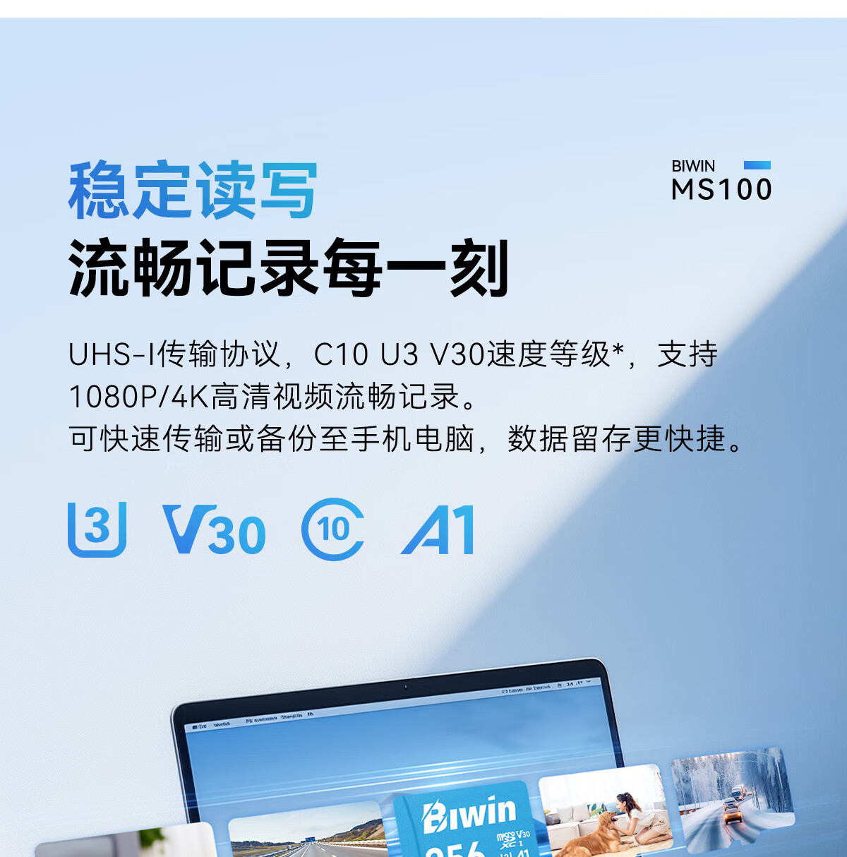 佰维(BIWIN)128GB TF(MicroSD)内存卡 C10 U3 V30 A1 MS100存储卡 读速100MB/s 适配行车记录仪/监控