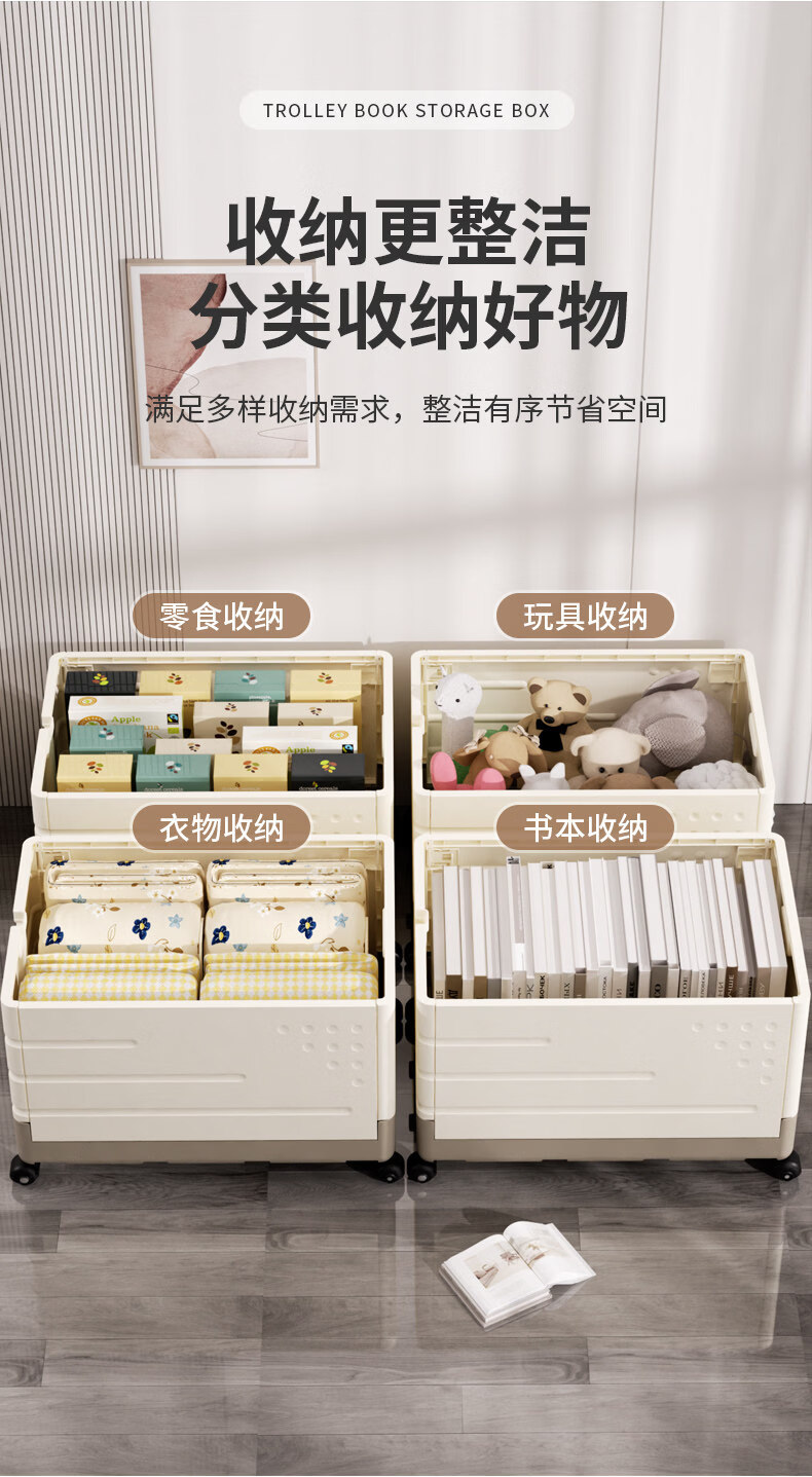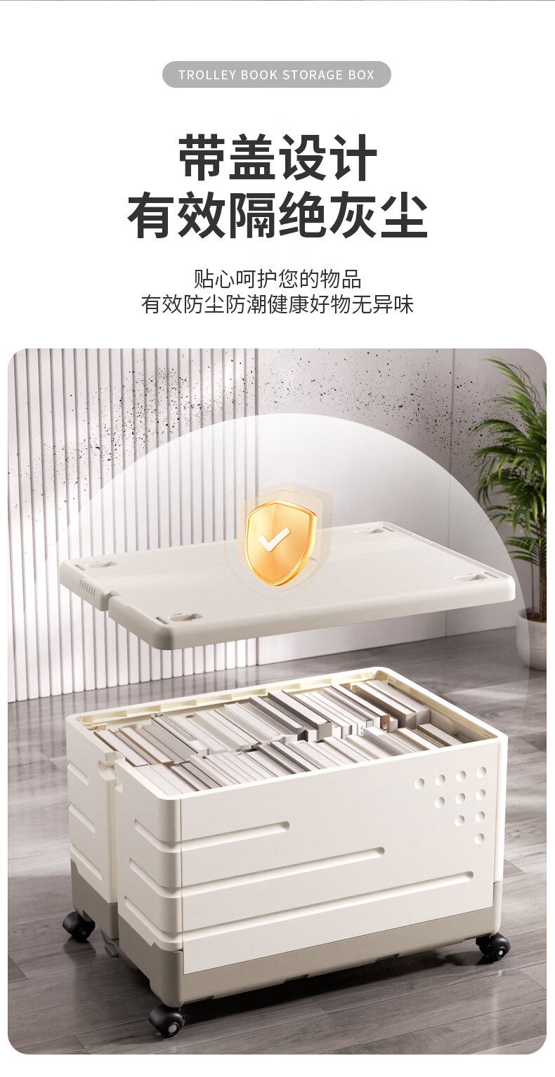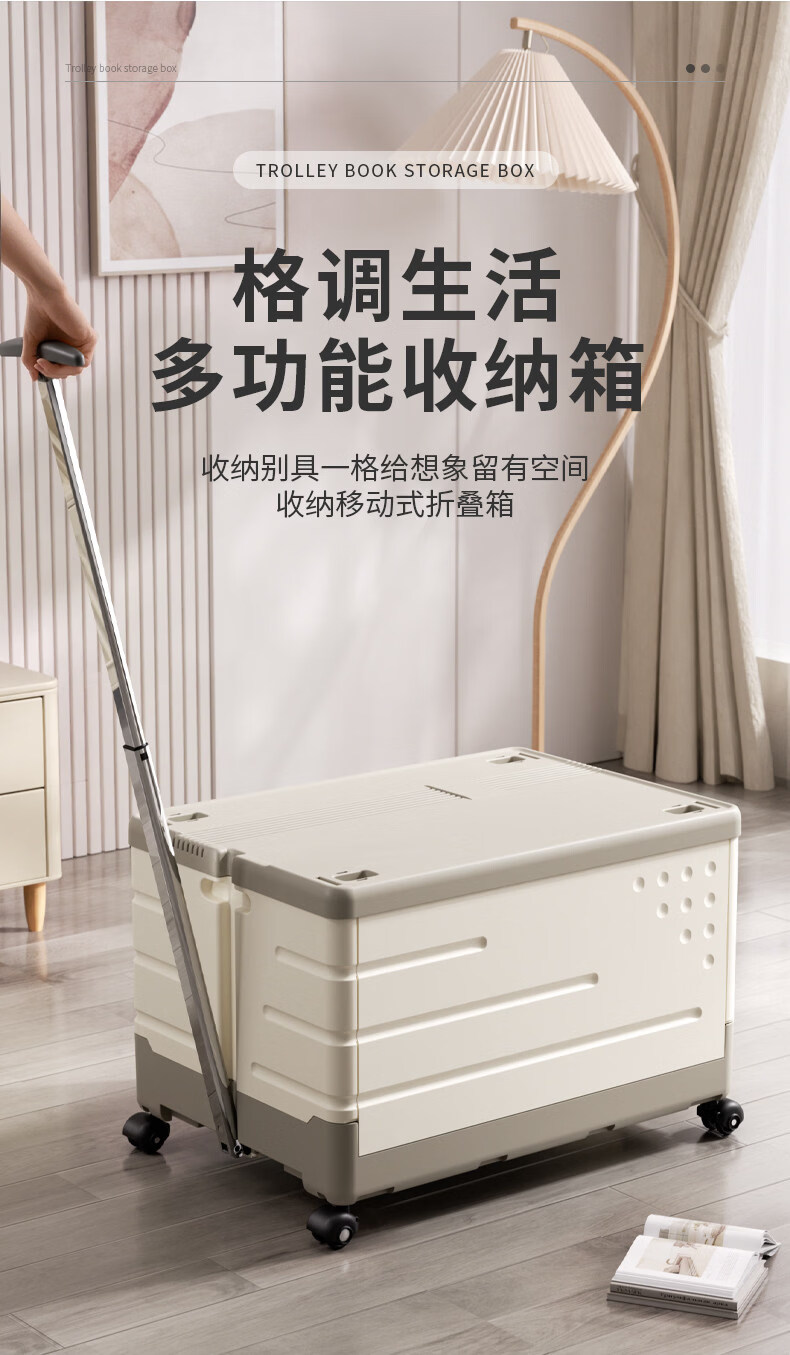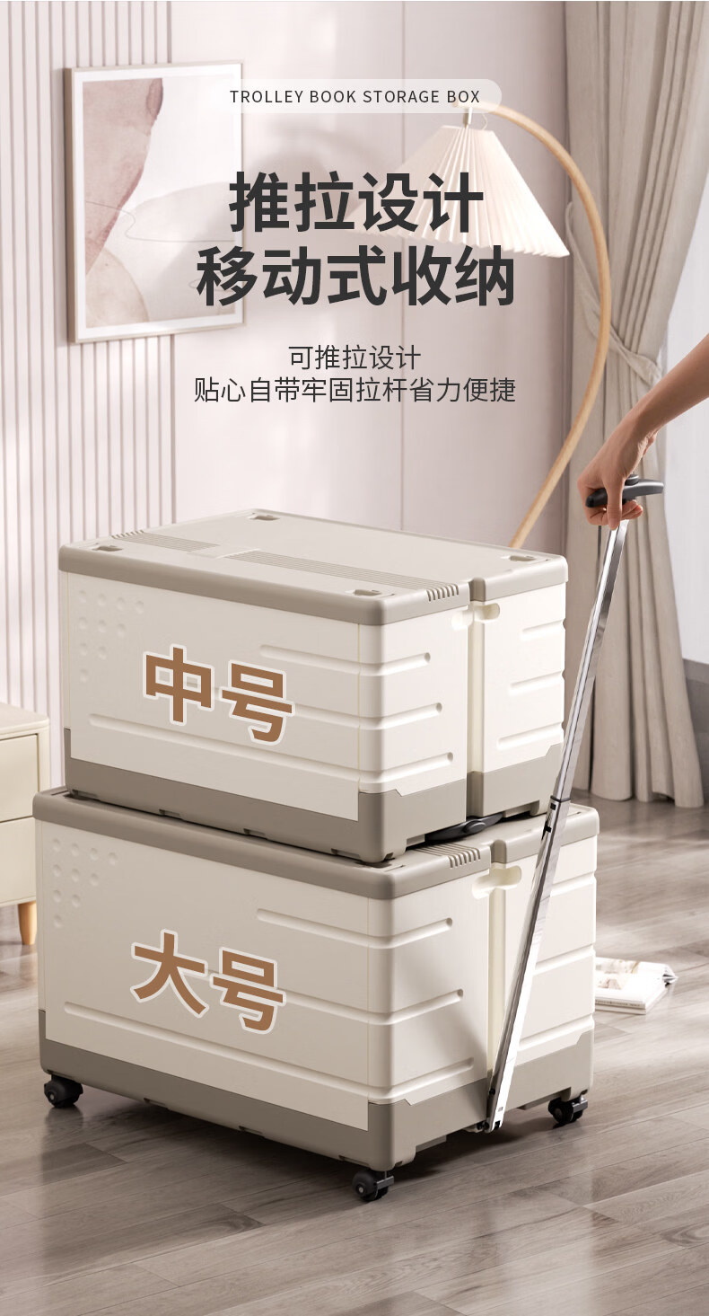 艾仕可(ASCOR)超大容量折叠拉杆书本收纳箱子带滑轮子装书籍神器书箱玩具整理盒 大号/带轮【拉杆可伸缩/加厚无异味】