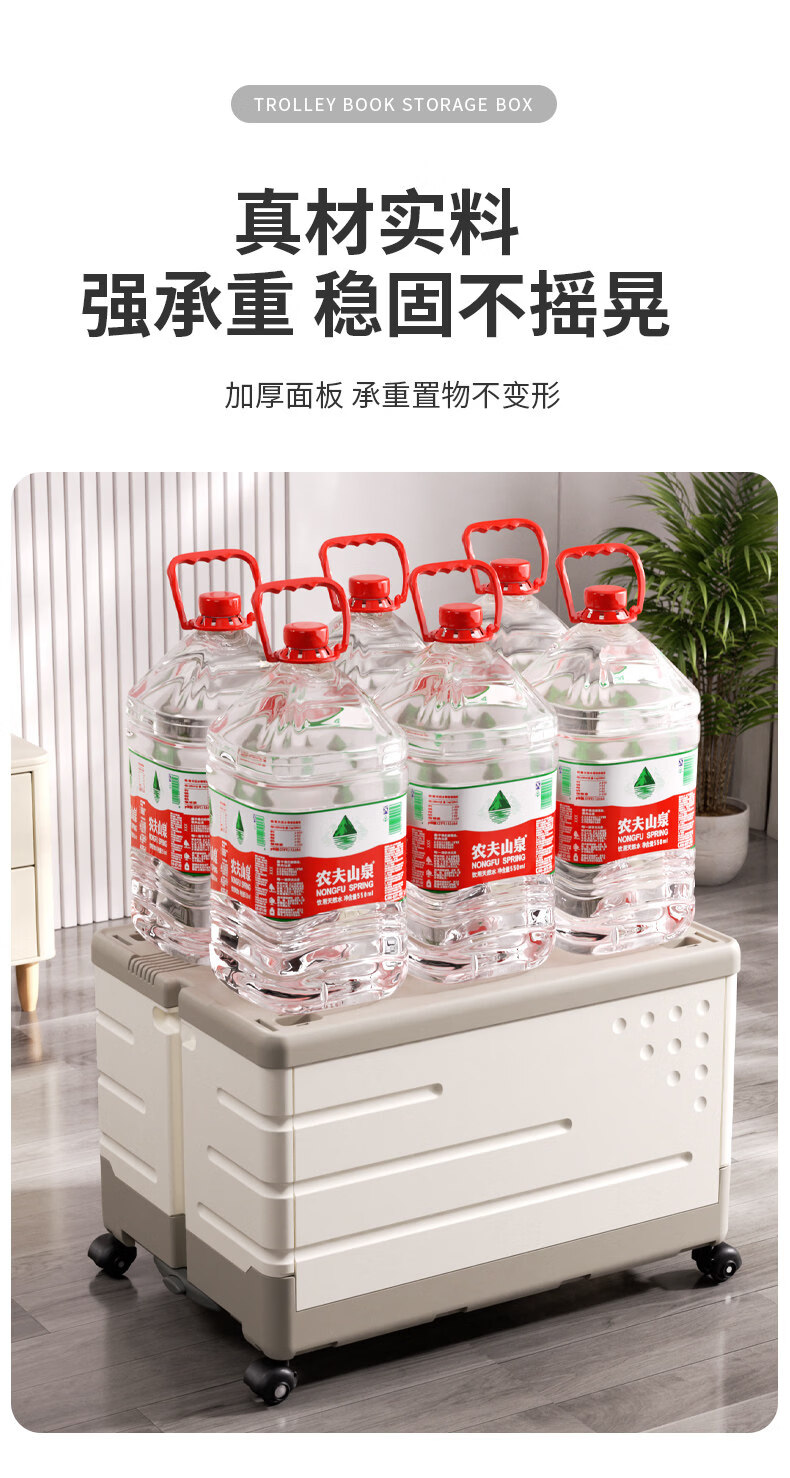 艾仕可(ASCOR)书包置物架可移动小推车书本收纳架神器家用多层放书包桌下滑轮柜 【透明白】加厚双层