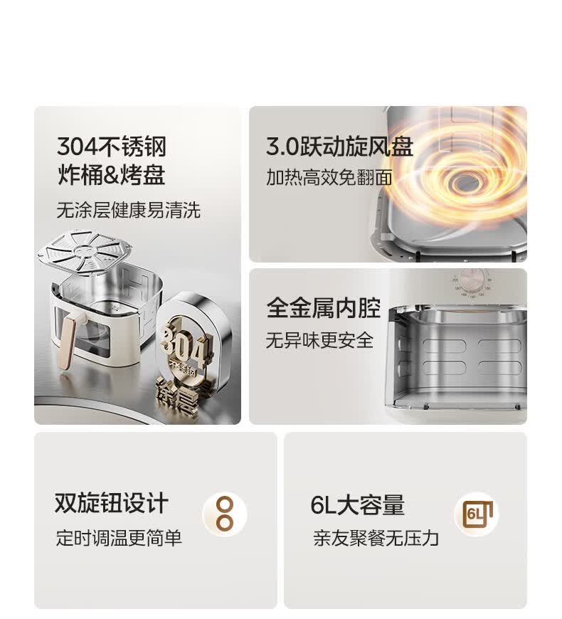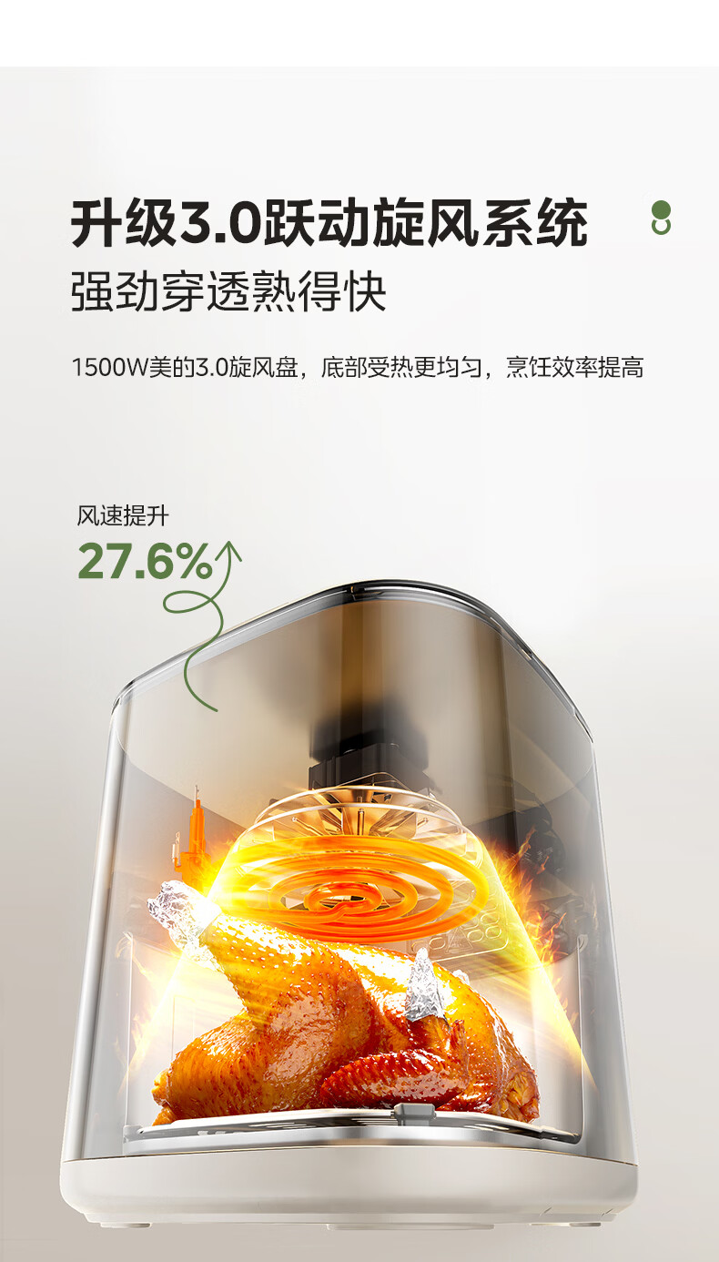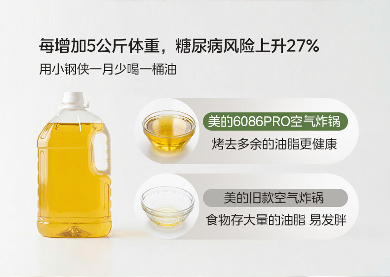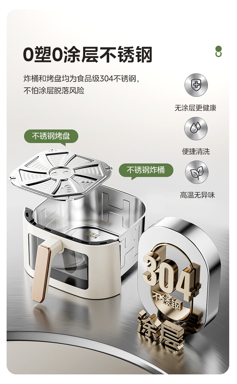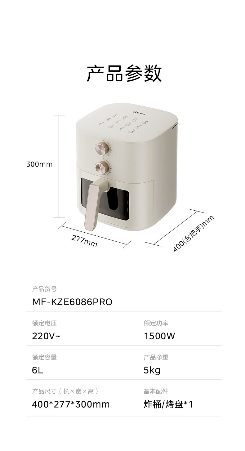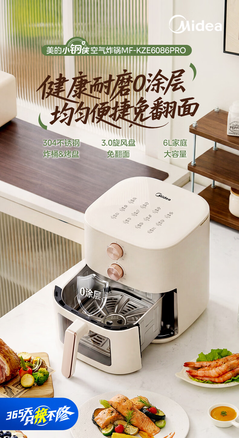 美的(Midea)0涂层不锈钢空气炸锅蒸烤一体2026年新款 家用6L大容量金属内腔 多功能可视空气炸锅MF-KZE6086PRO