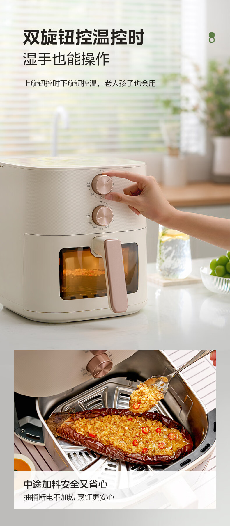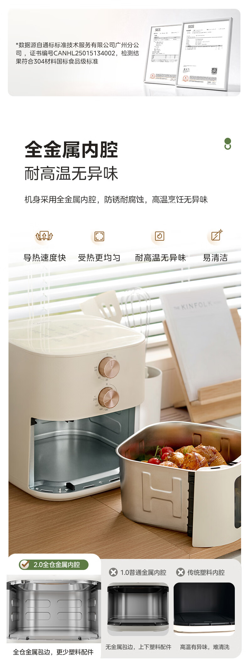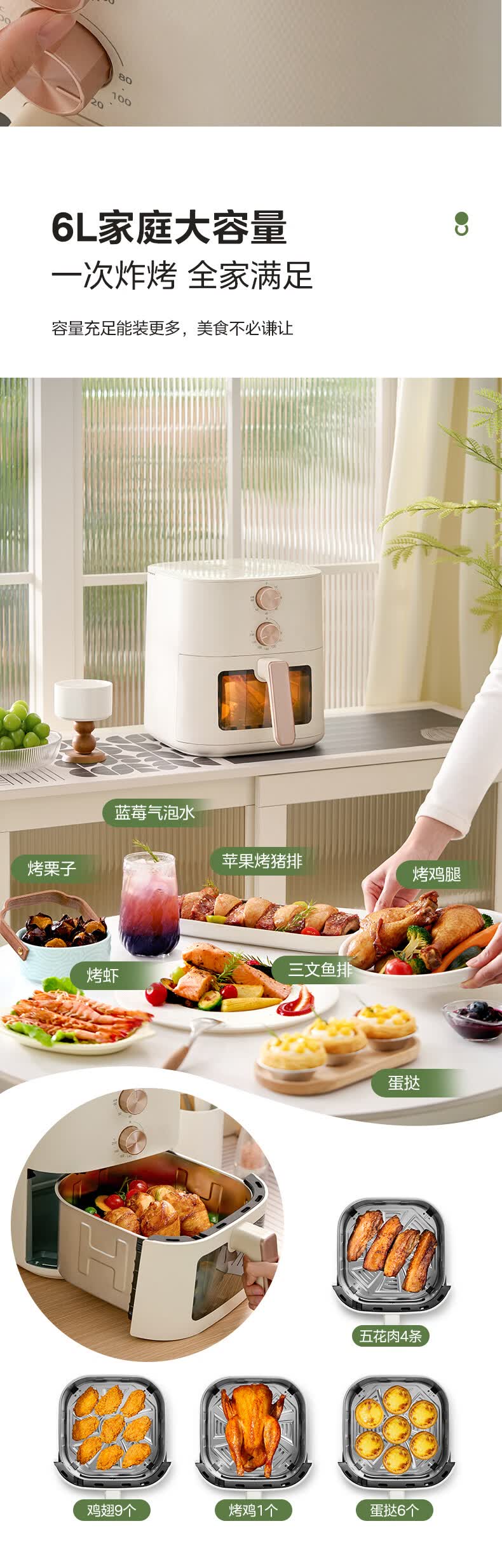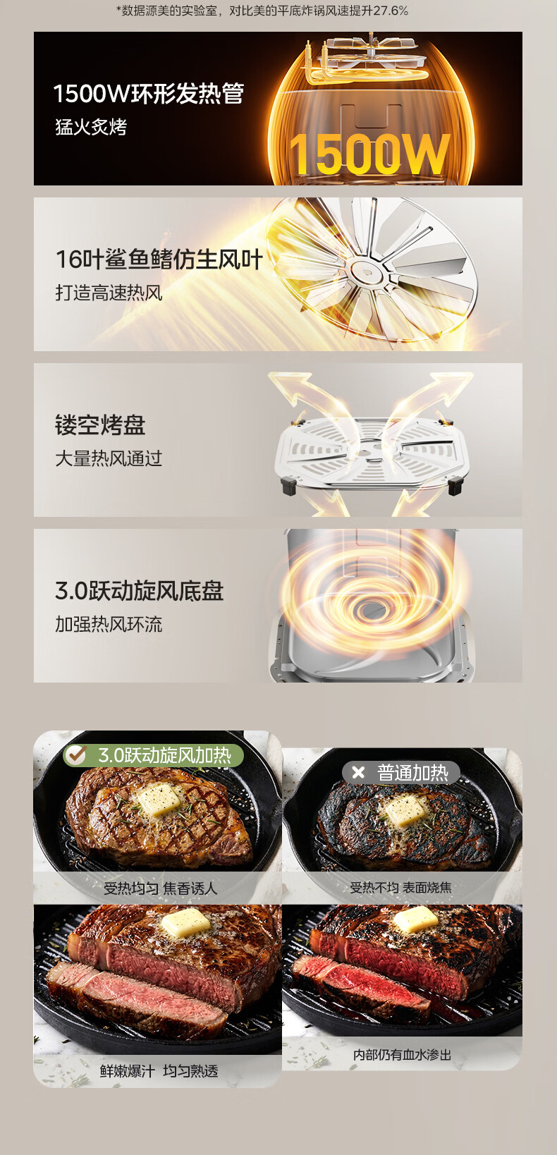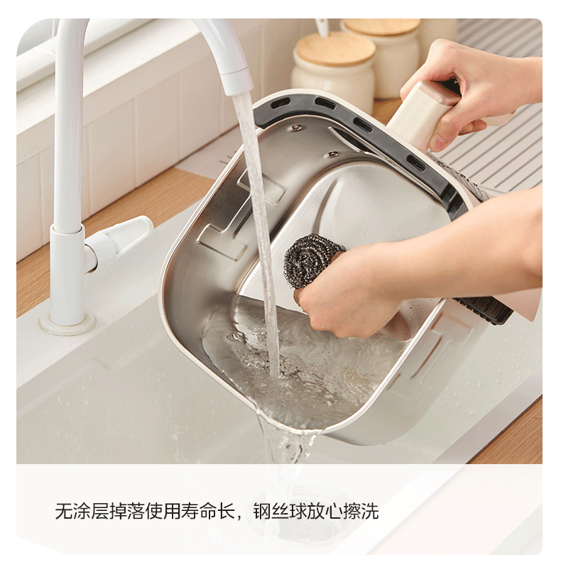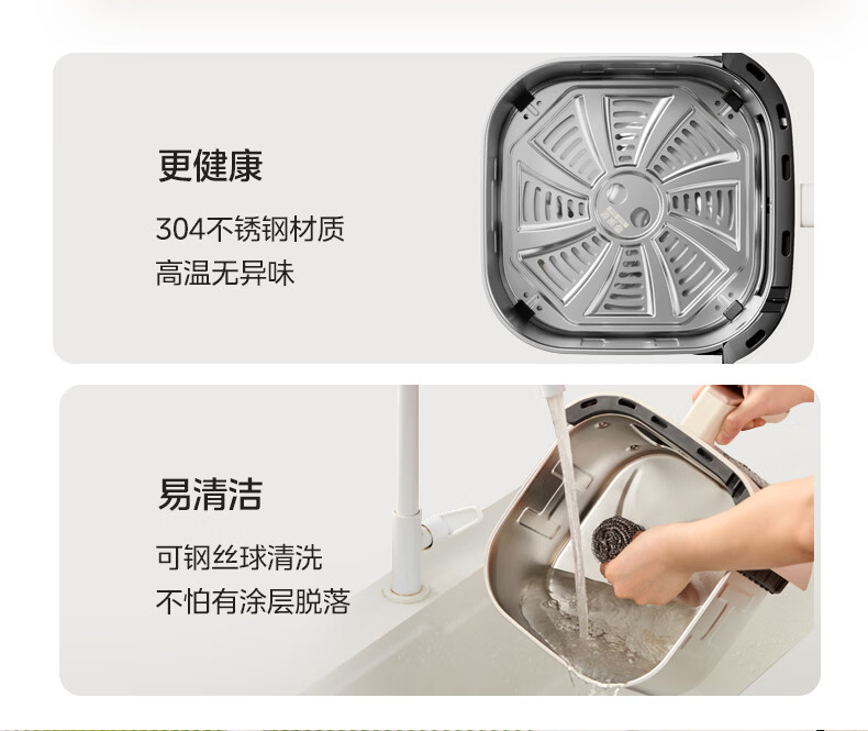 美的(Midea)0涂层不锈钢空气炸锅蒸烤一体2026年新款 家用6L大容量金属内腔 多功能可视空气炸锅MF-KZE6086PRO