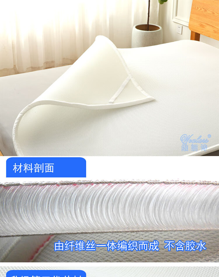 维朗诗3D空气纤维床垫2cm 透气防潮可水洗4D 可折叠 学生宿舍 0甲醛 A款:芯材 (高品质升级六角网孔) 180*200cm