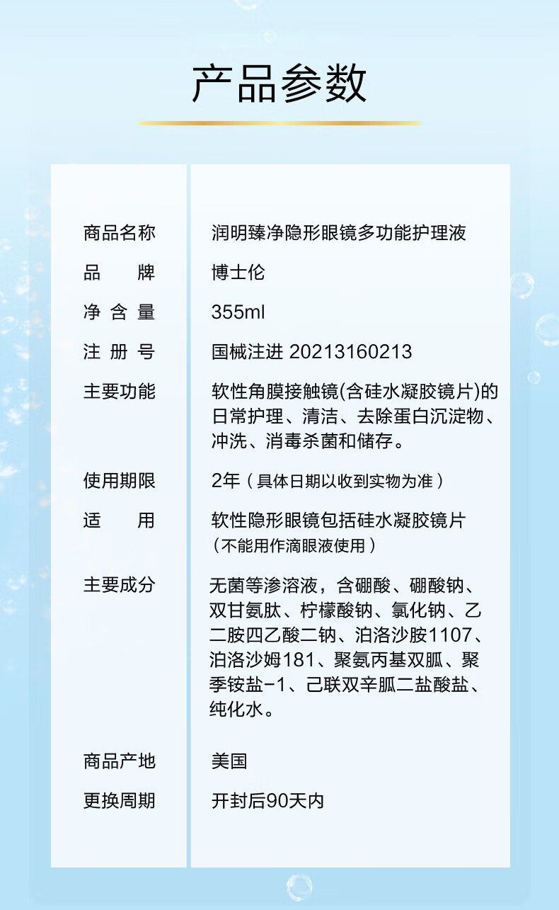 博士伦美瞳药水隐形近视眼镜水护理液355ml清透升级臻净大小瓶便携盒装