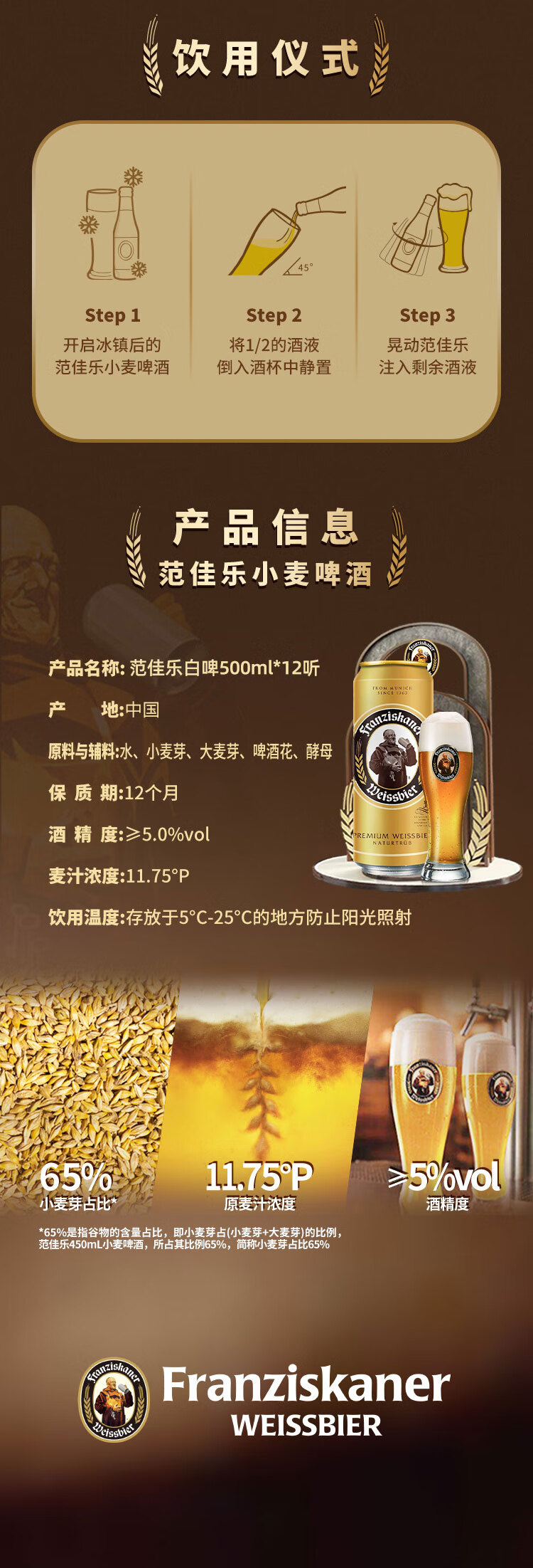 范佳乐(原教士啤酒)德国小麦白啤酒500ml*12听整箱装京东自营踏春送礼