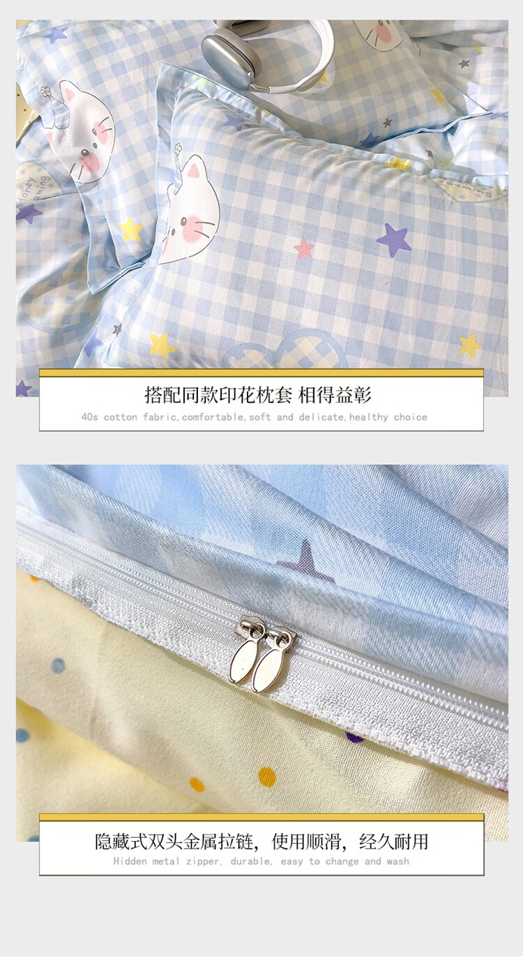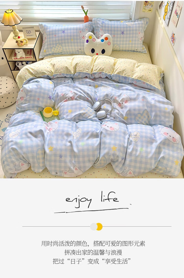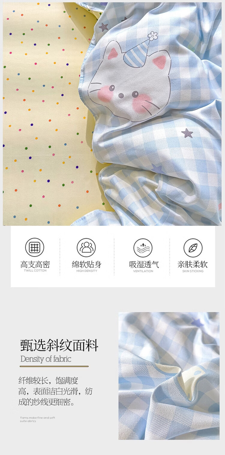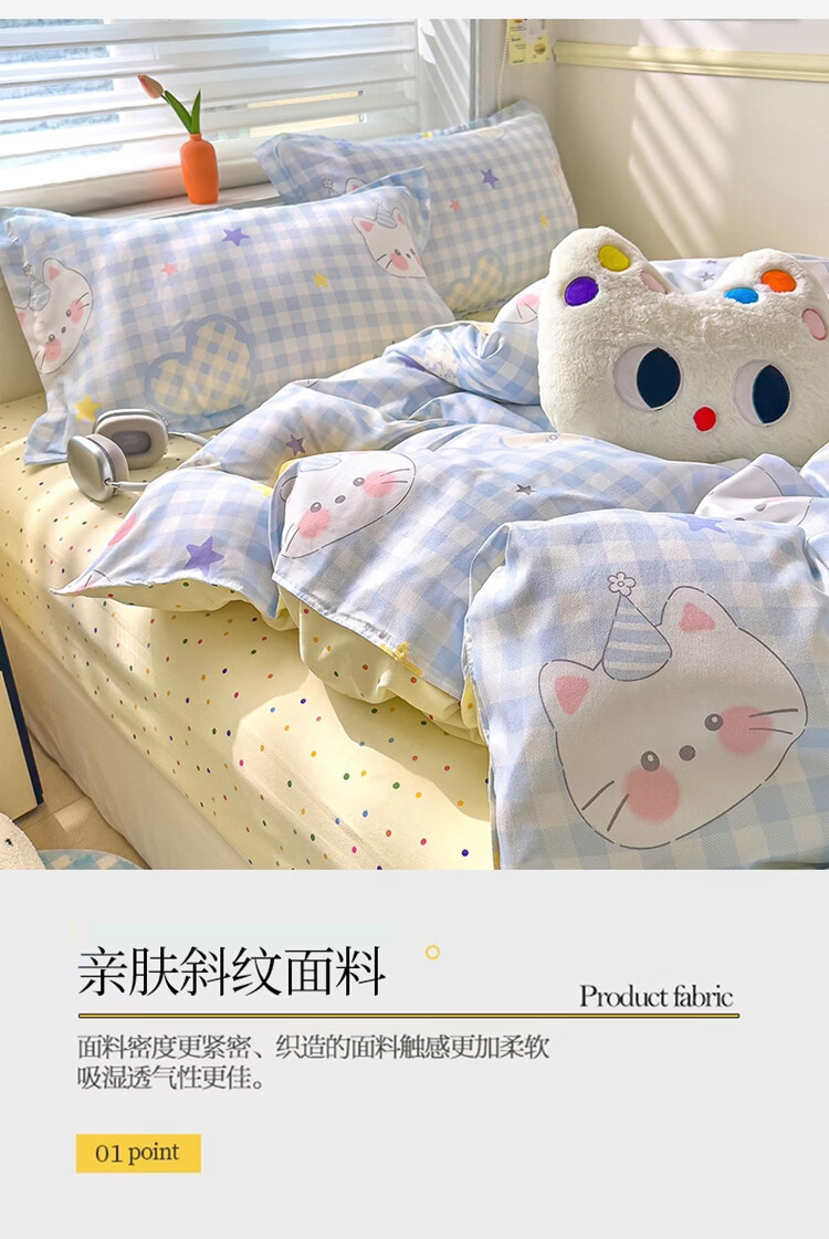 软贝小清新被套单人床单款宿舍三件套四季通用被罩四件套 嘟嘟猫 床单款 2.0m 被套200*230cm 四件套