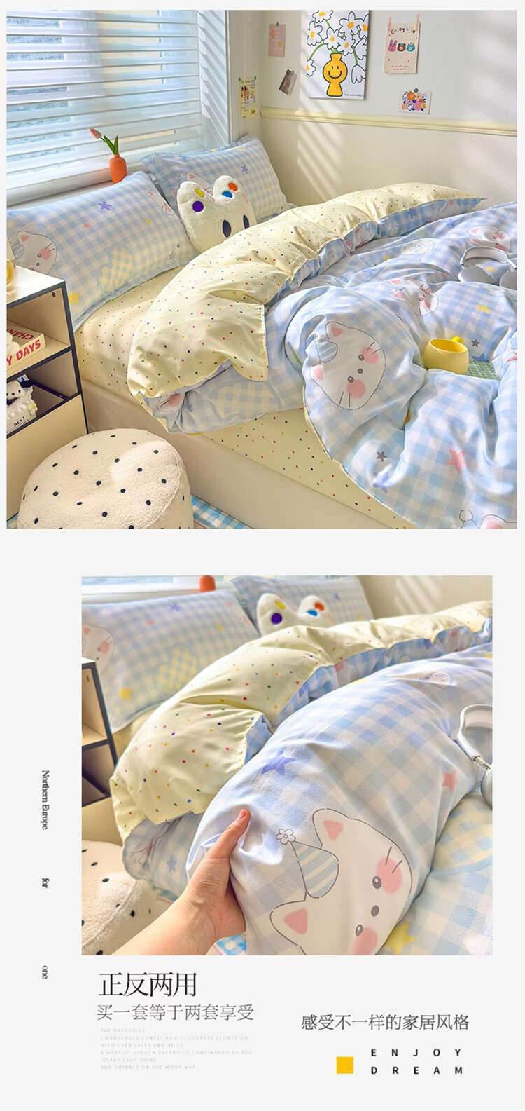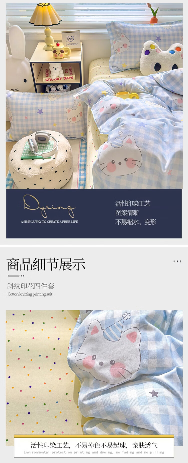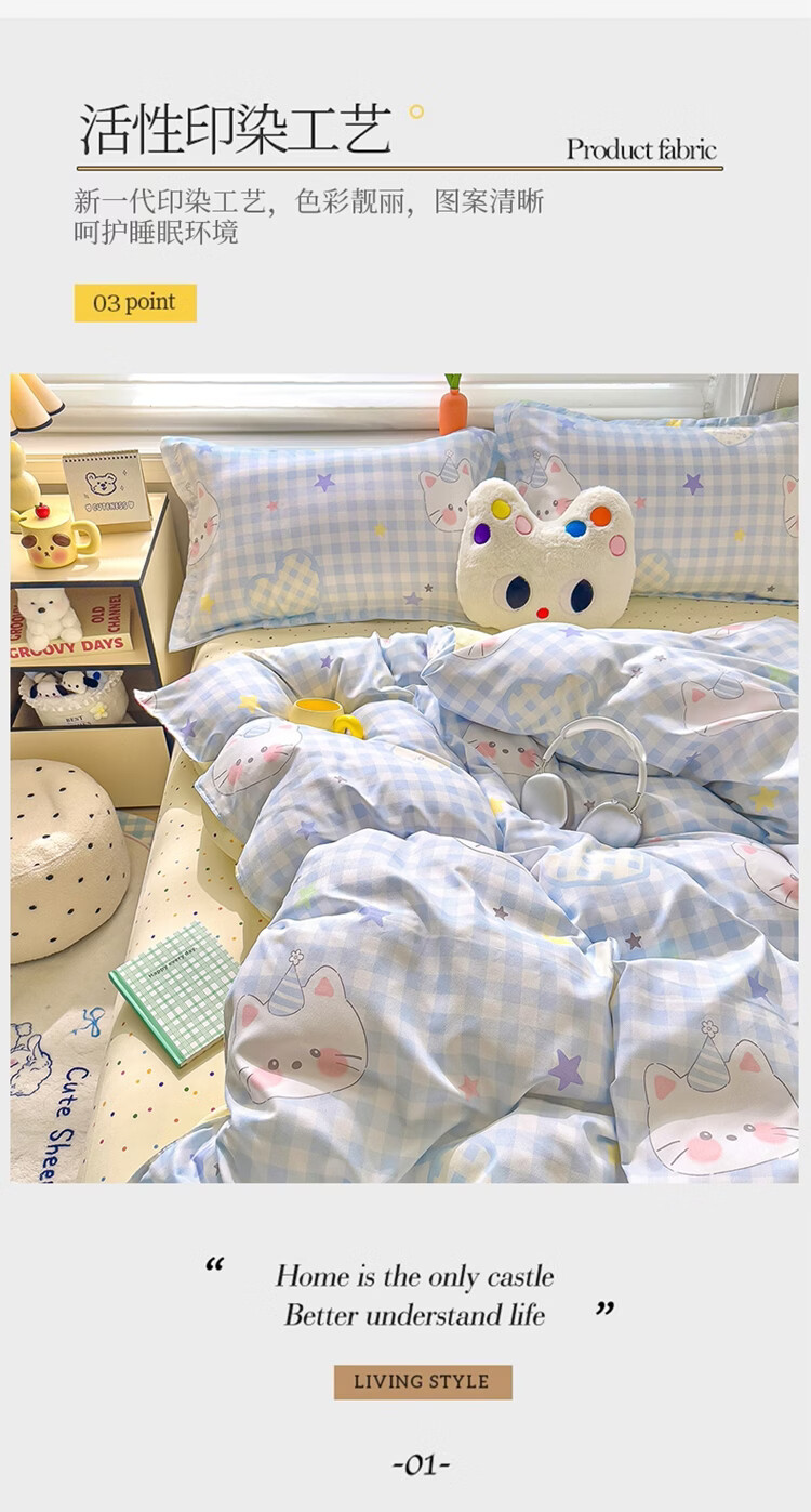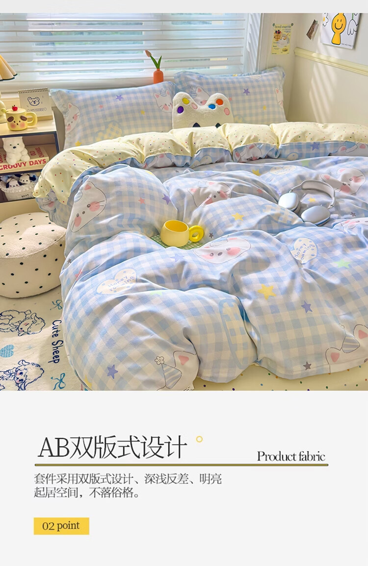 软贝小清新被套单人床单款宿舍三件套四季通用被罩四件套 嘟嘟猫 床单款 2.0m 被套200*230cm 四件套