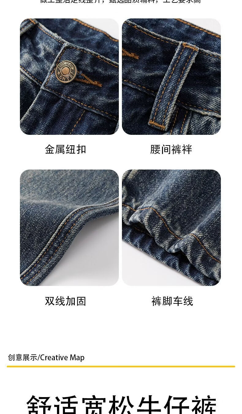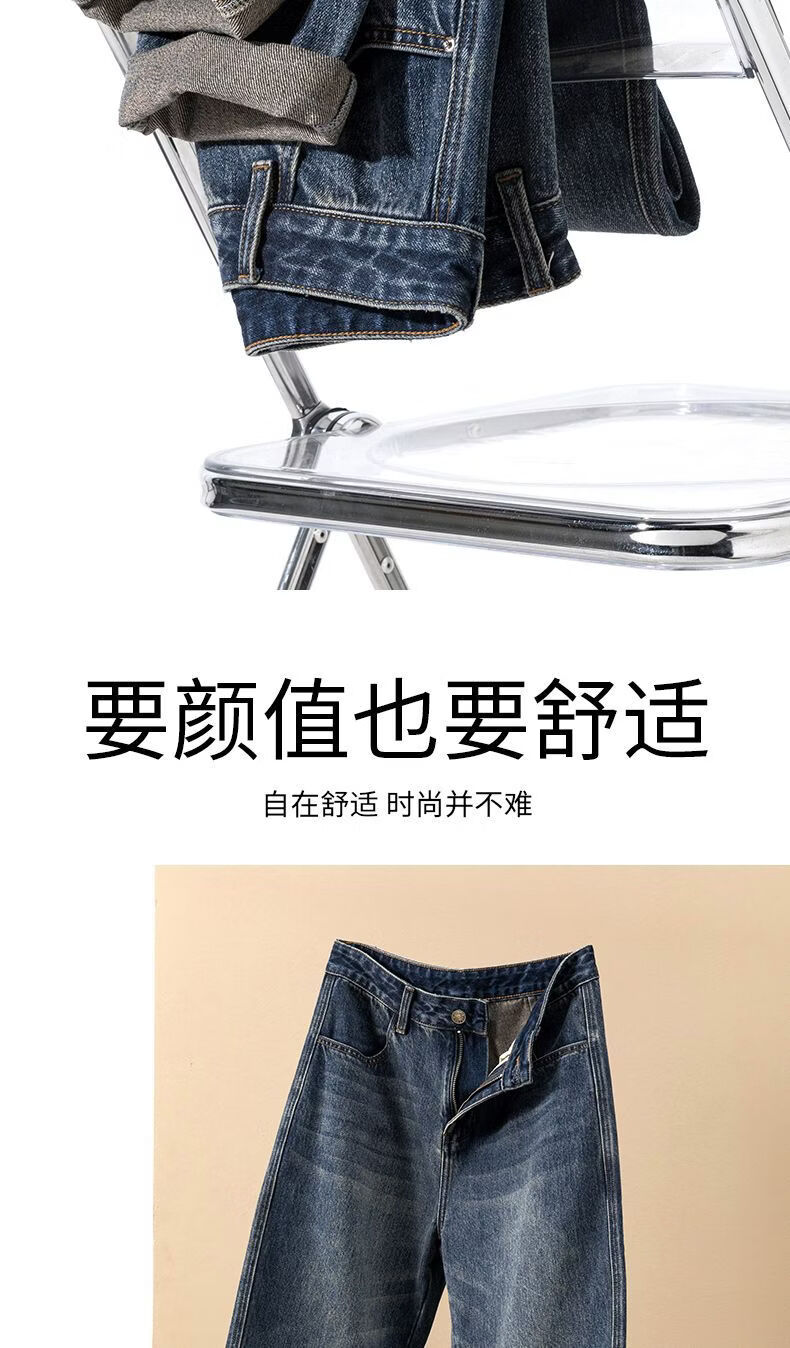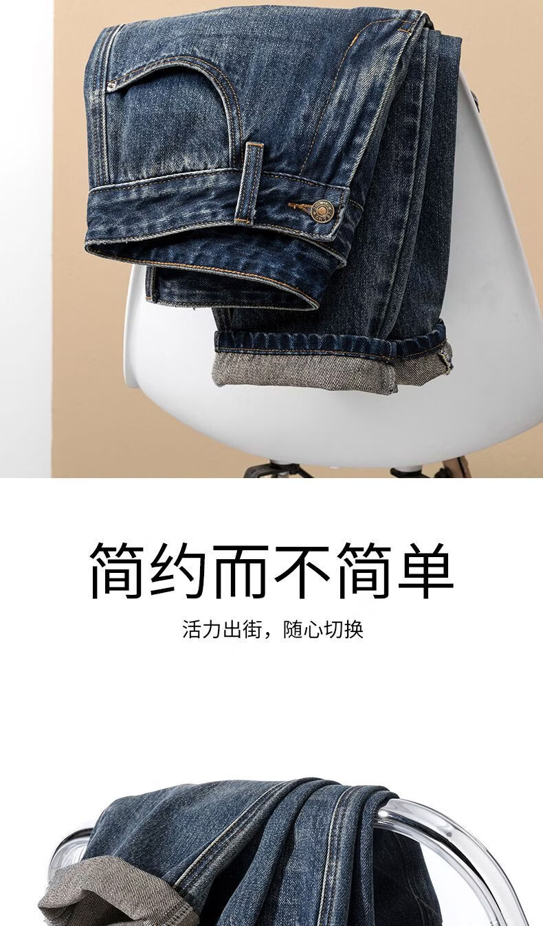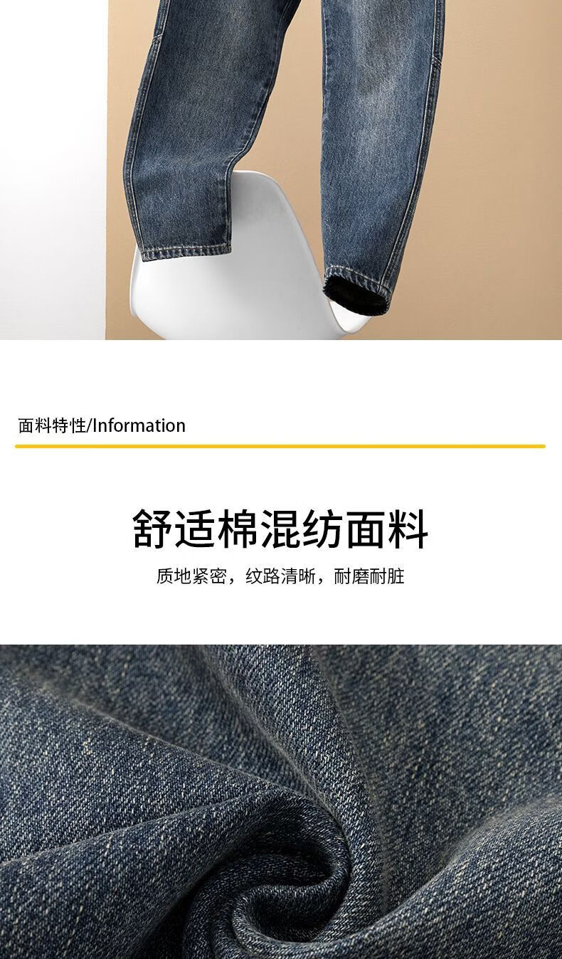 真维斯(Jeanswest)真维斯美式复古潮牌锥形小直筒牛仔裤男士加绒加厚保暖垂感休闲裤 深蓝色 28