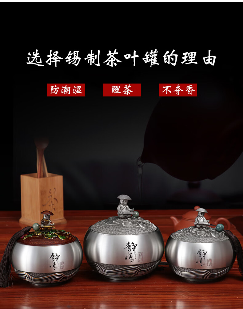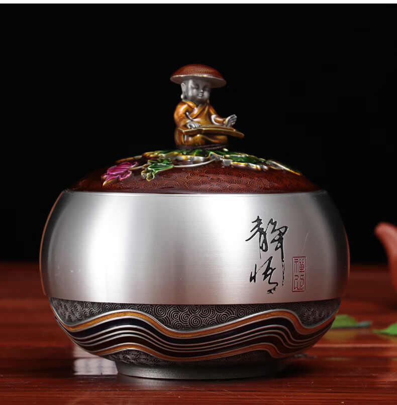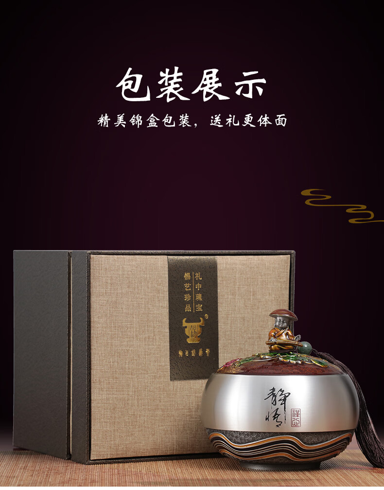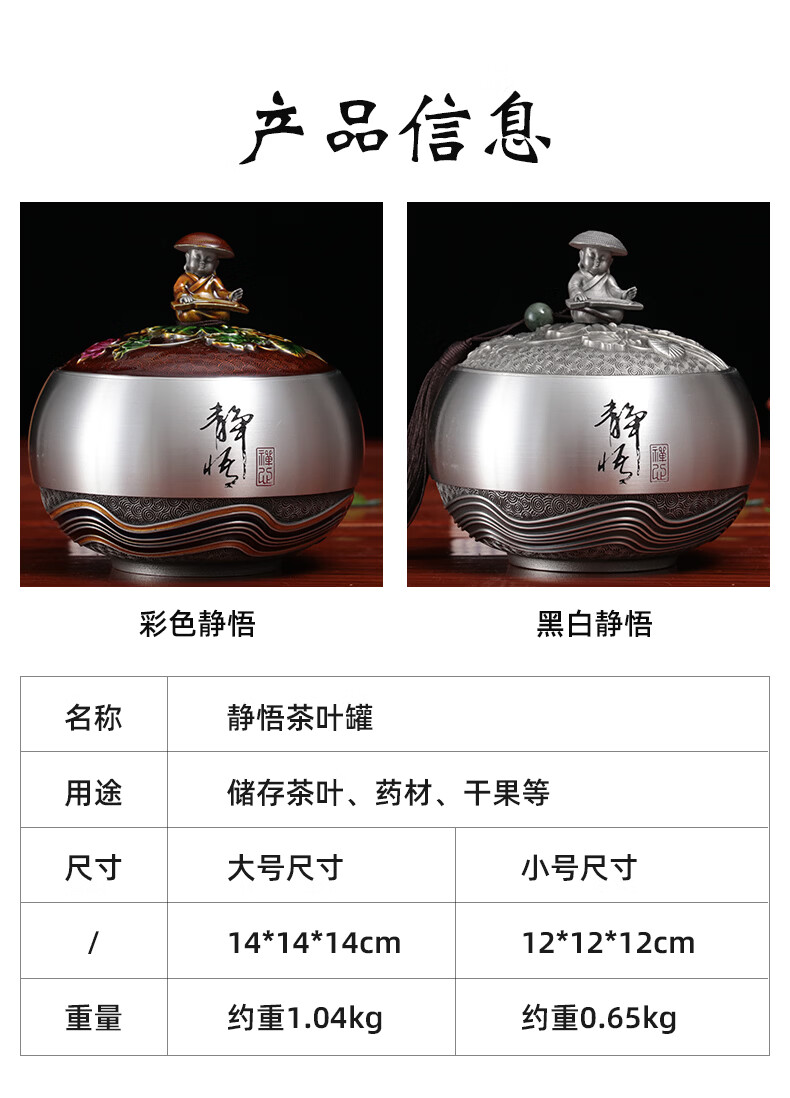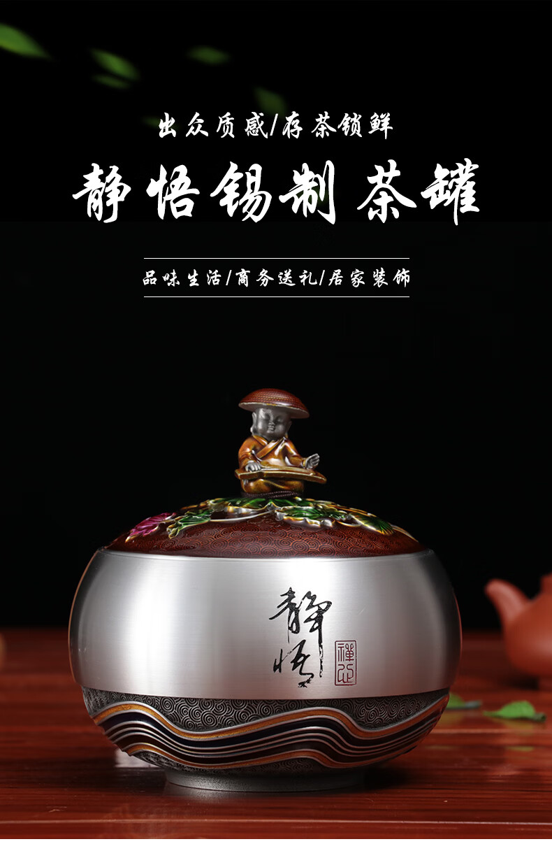 铜老爷同事退休纪念品定制实用纯锡茶叶罐茶室摆件毕业礼物教师节送老师 静悟-A款【12*12*12cm】容纳4两茶叶