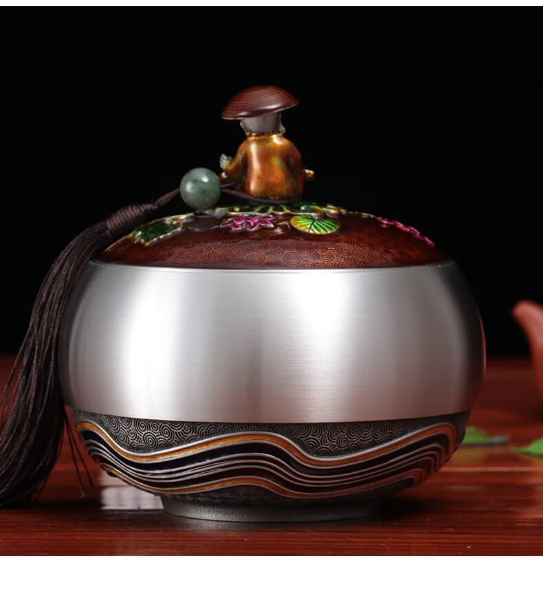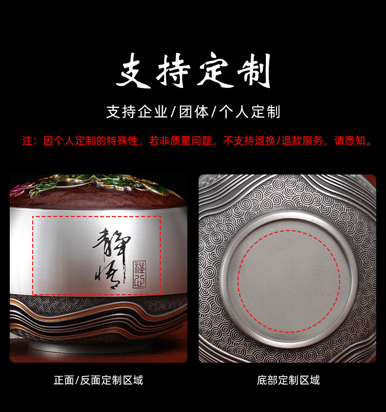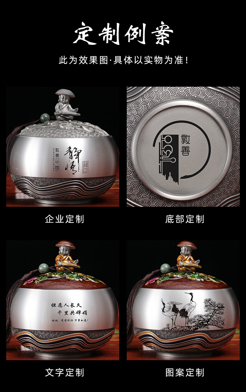 铜老爷老师光荣退休礼物送同事荣休退伍纪念品定制茶室摆件纯锡茶叶罐 小号-如意【10.8*10.8*10.2cm】容纳3两茶叶