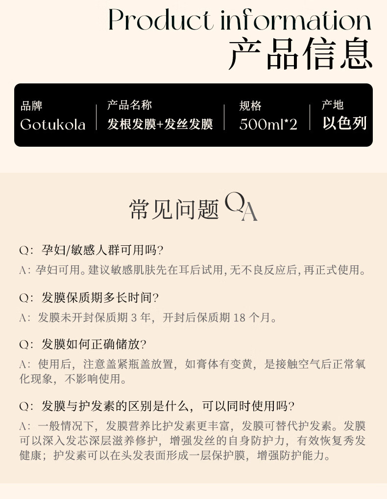 GOTUKOLA狗头发膜染烫修复控油蓬松柔顺干枯毛躁修复顺滑蛋白护发素橙膜绿膜500ml发膜cp