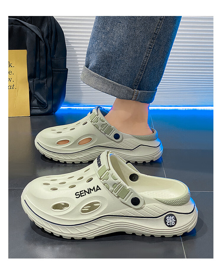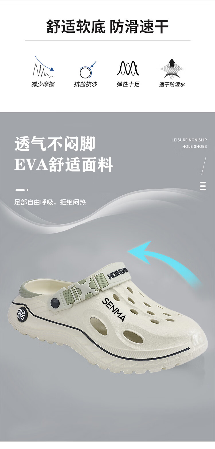 森馬凉鞋男2026夏季外穿防臭防滑开车包头拖鞋青少年两用沙滩运动凉拖 米绿【基础款】 38-39 现货秒发