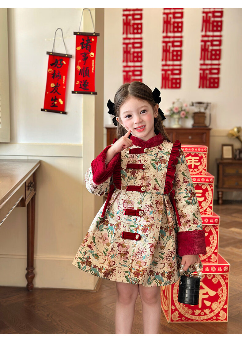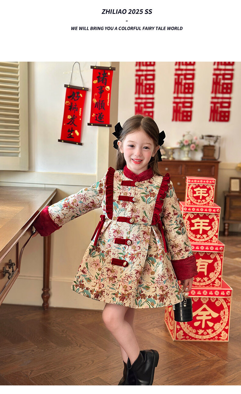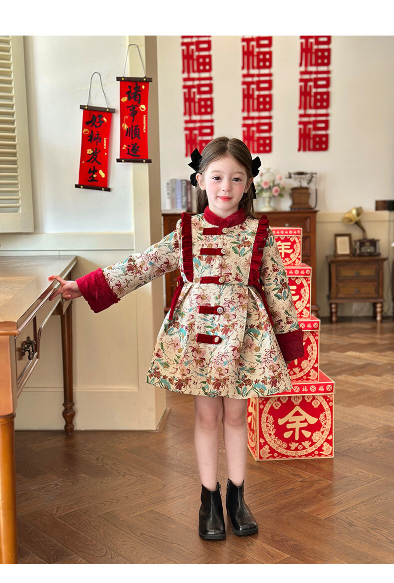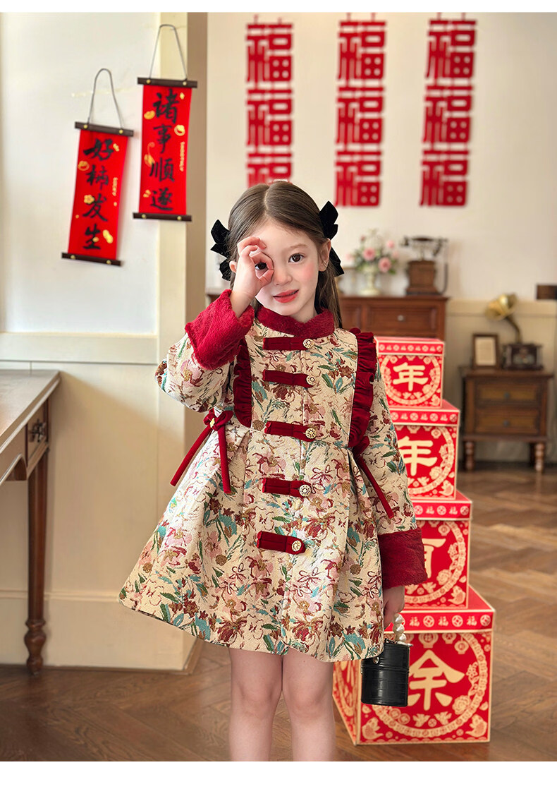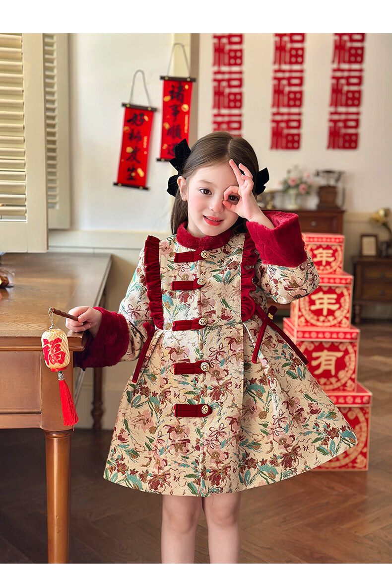 栀了成长记童装女童国风新年上衣2025冬季儿童新中式夹棉保暖外套 红色 外套 100 cm