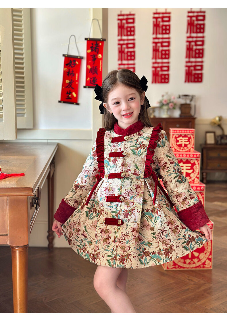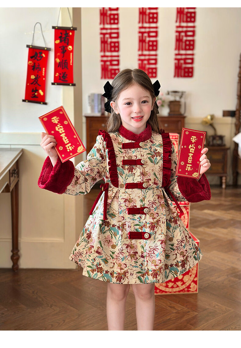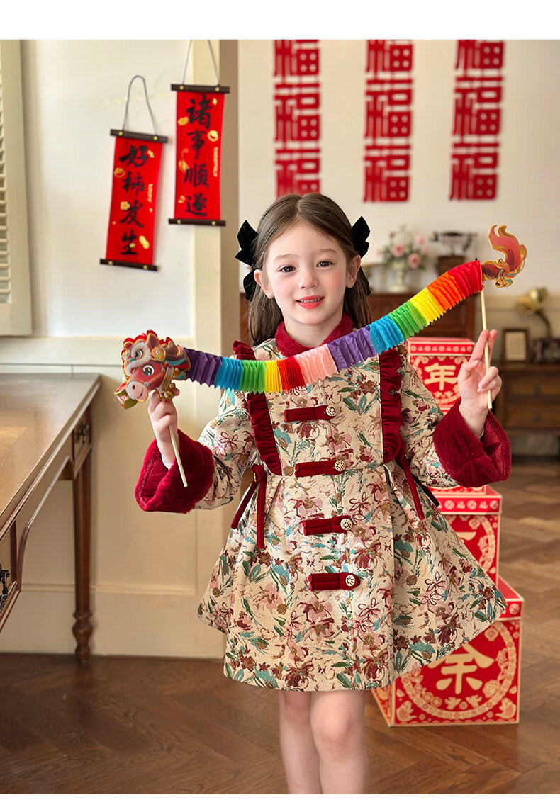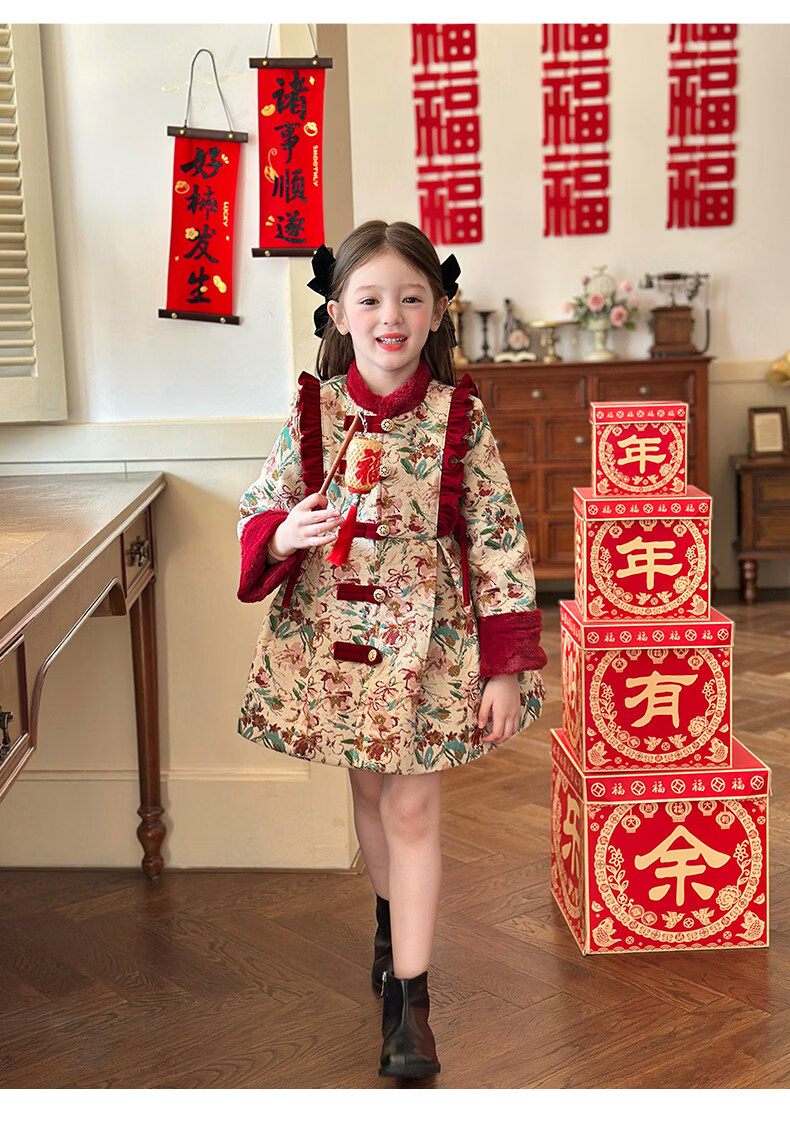 栀了成长记童装女童国风新年上衣2025冬季儿童新中式夹棉保暖外套 红色 外套 100 cm