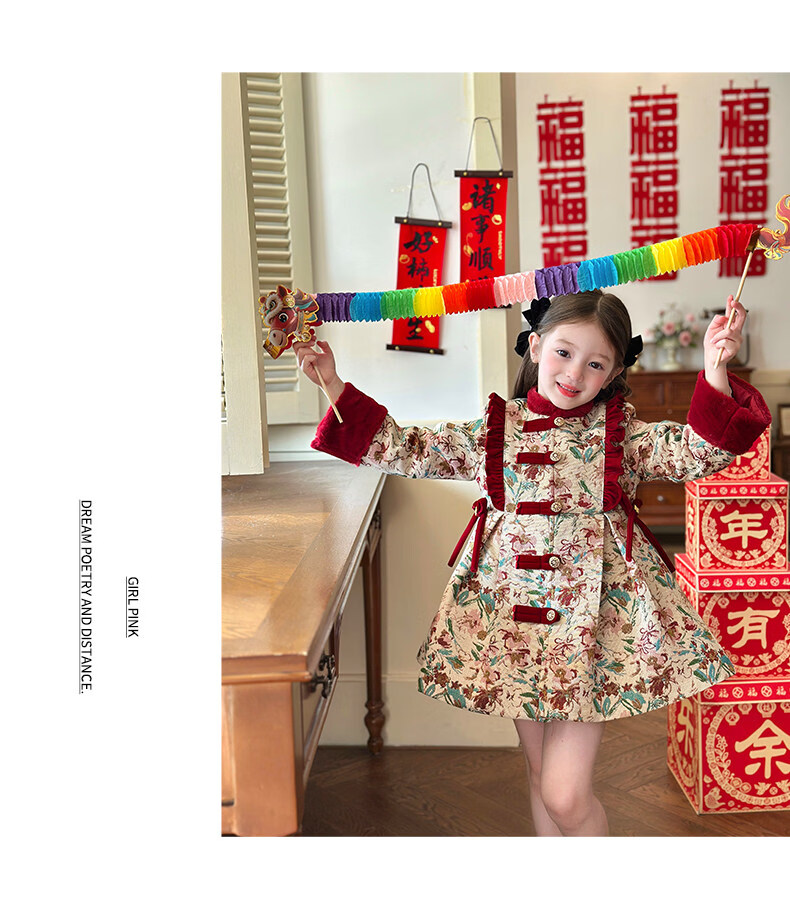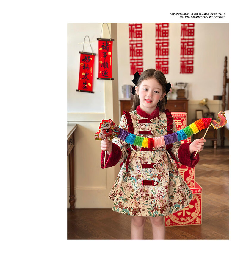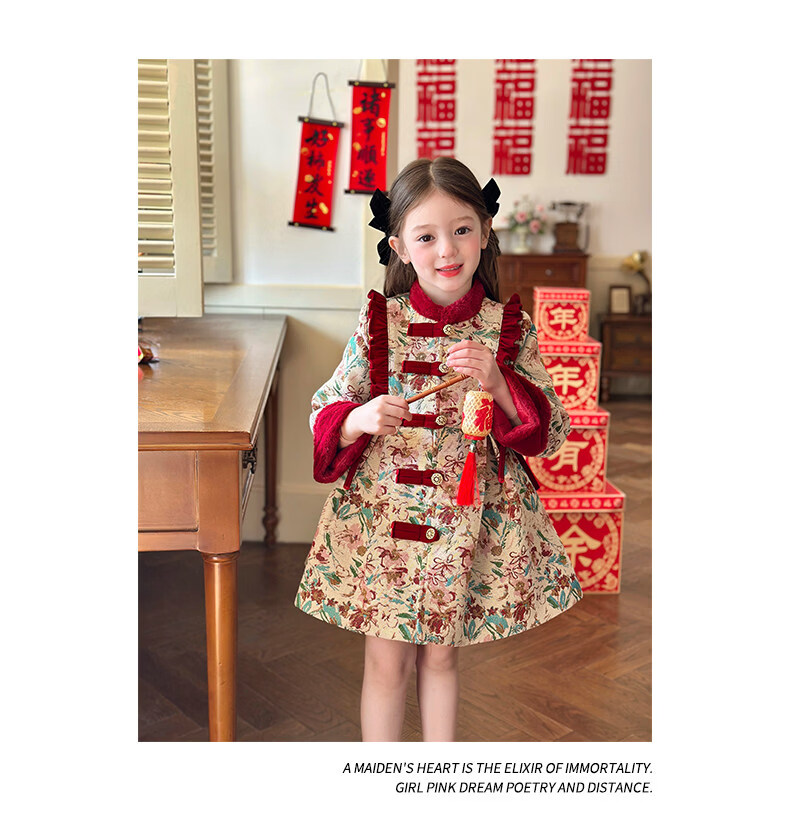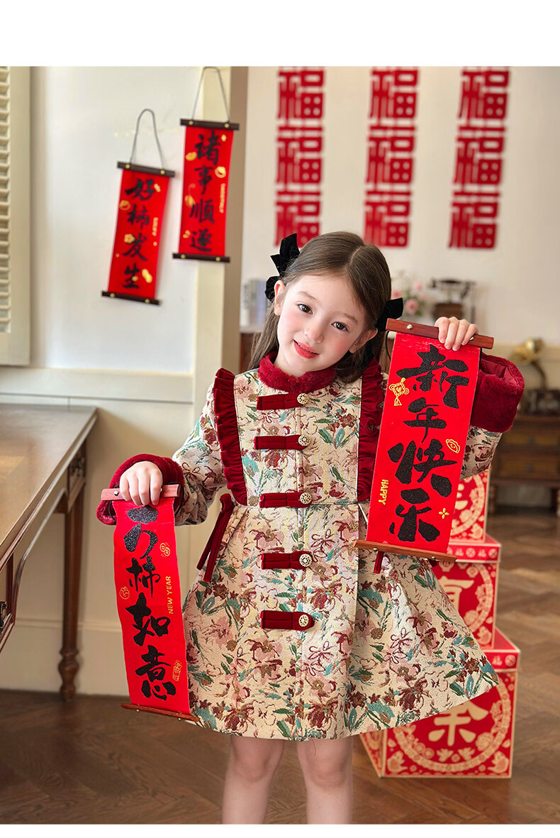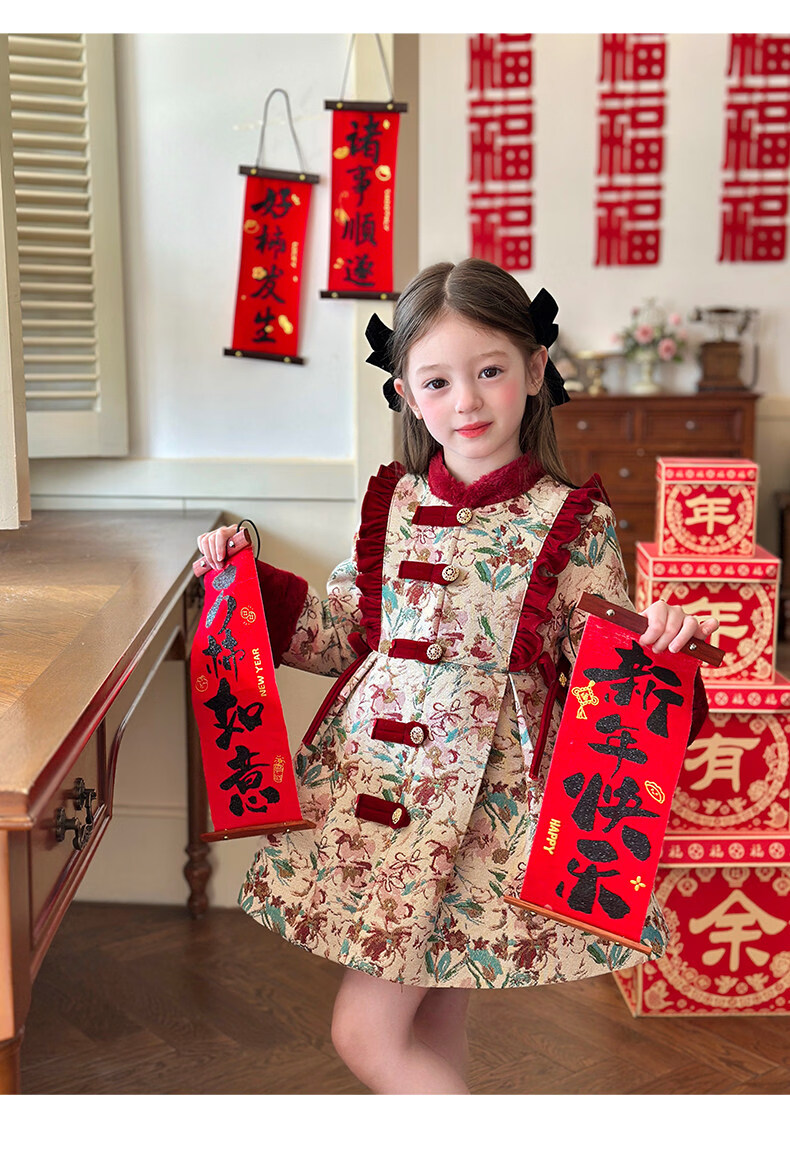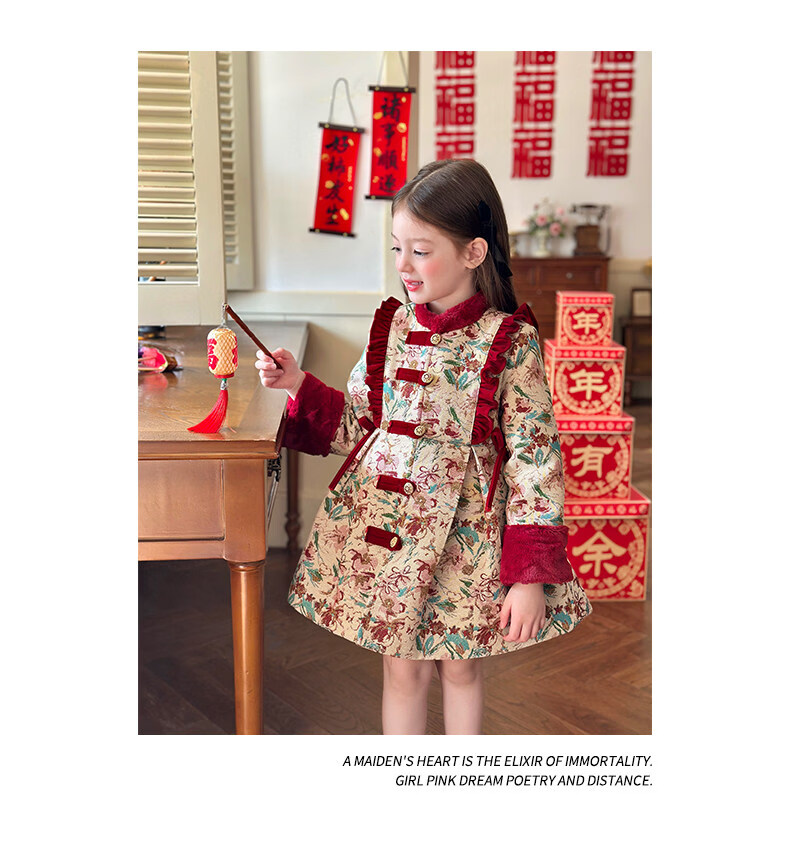栀了成长记童装女童国风新年上衣2025冬季儿童新中式夹棉保暖外套 红色 外套 100 cm