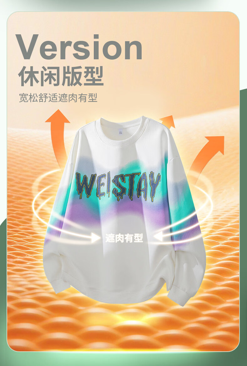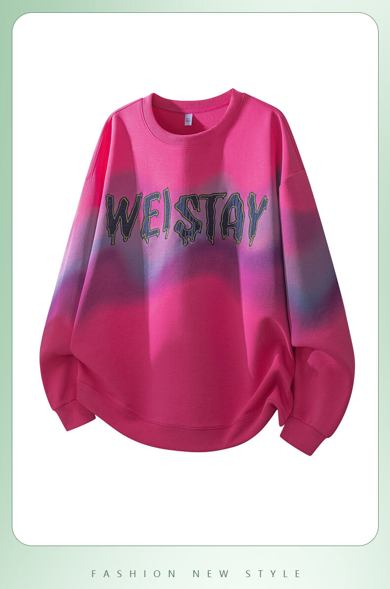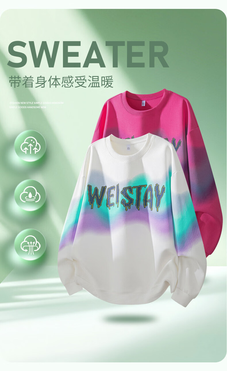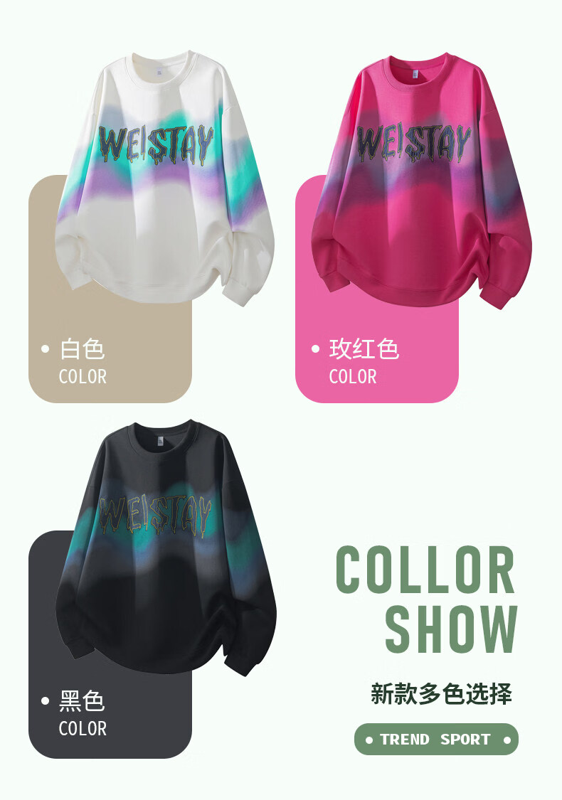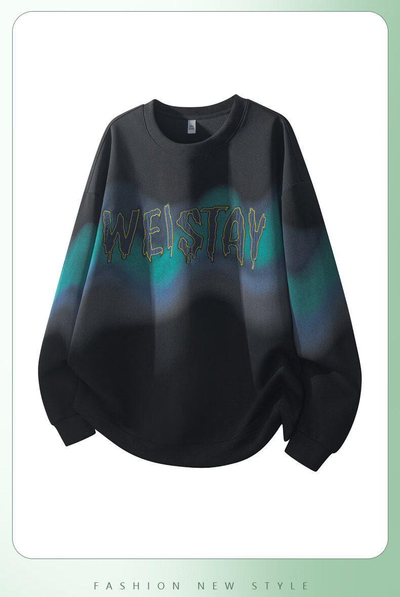真维斯(Jeanswest)2026美式渐变圆领卫衣男士春季新款宽松百搭休闲长袖上衣潮牌字母 黑色 【官方正品】 M 【建议90-105斤】