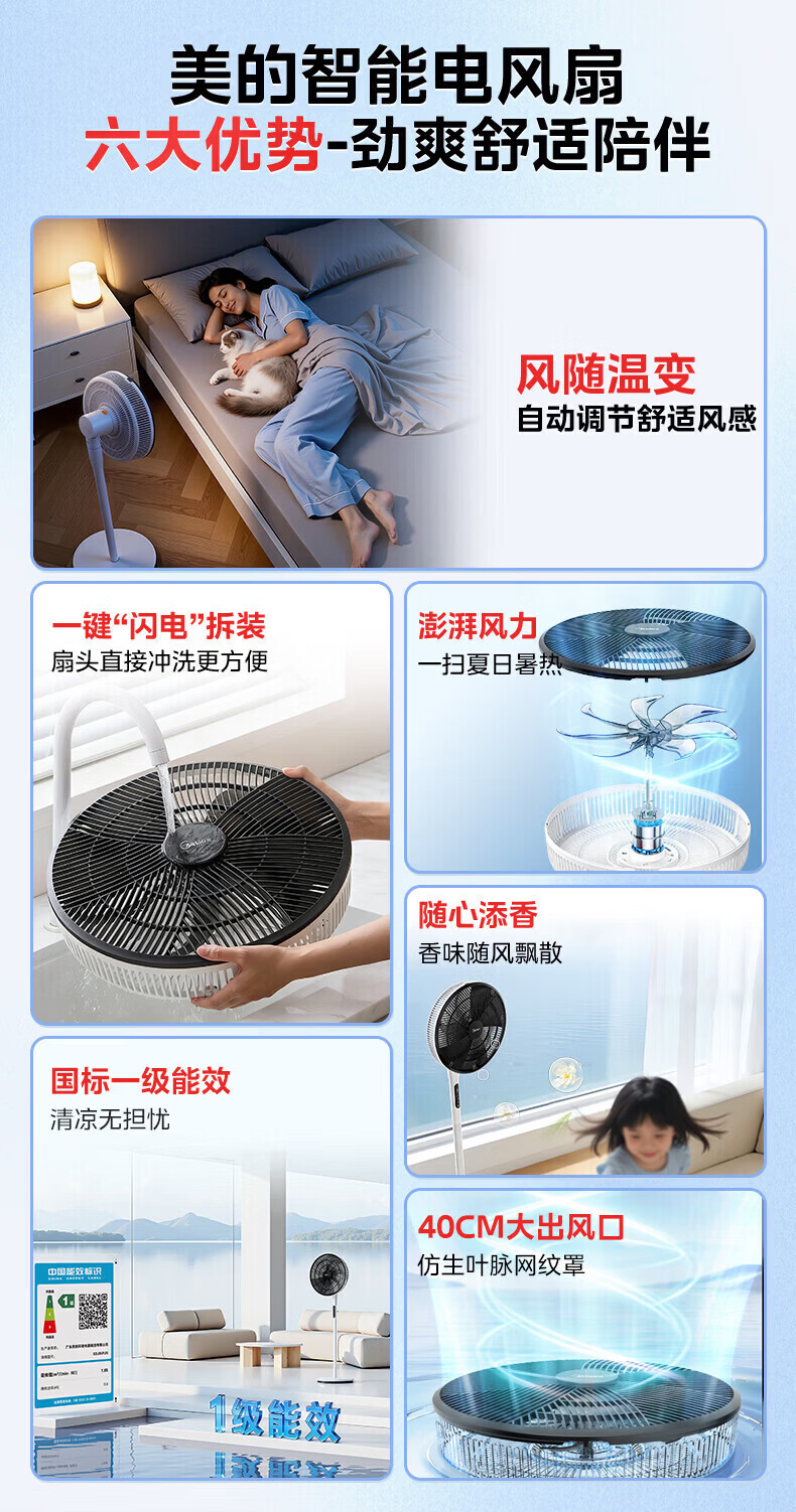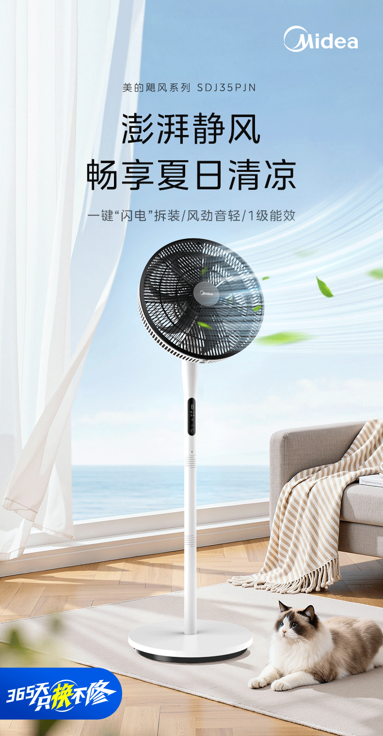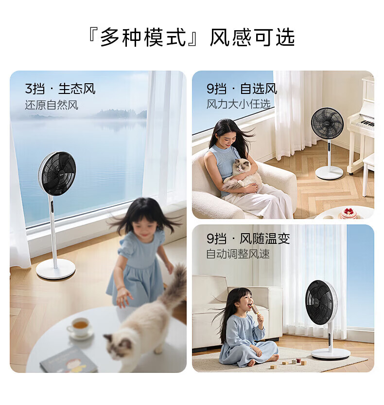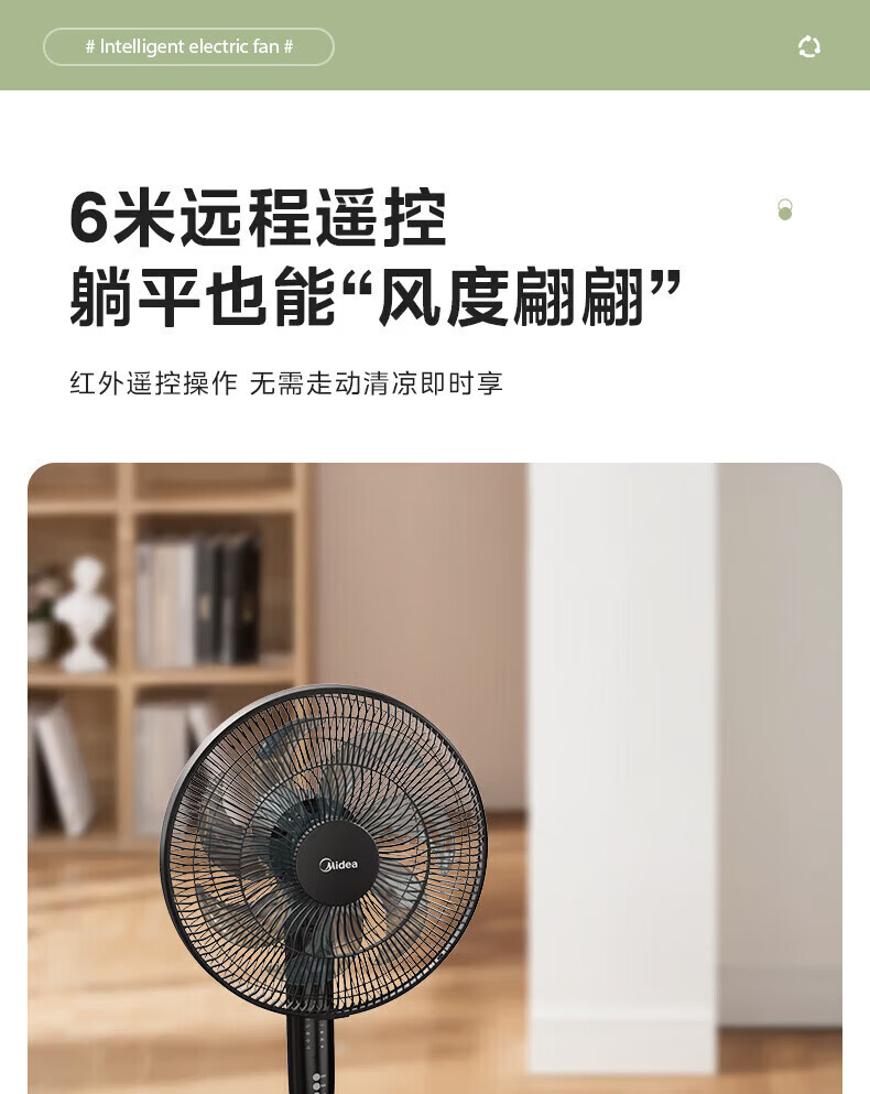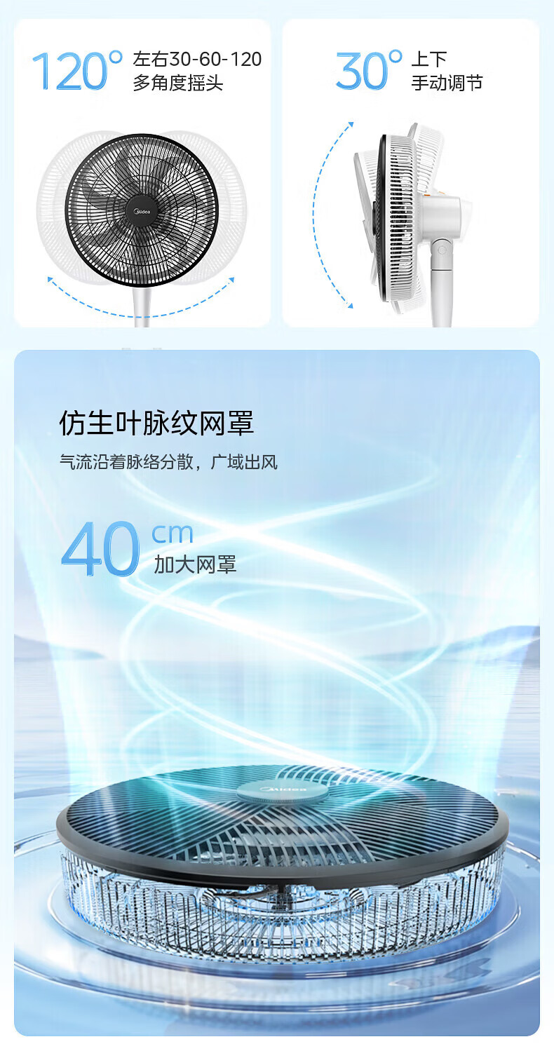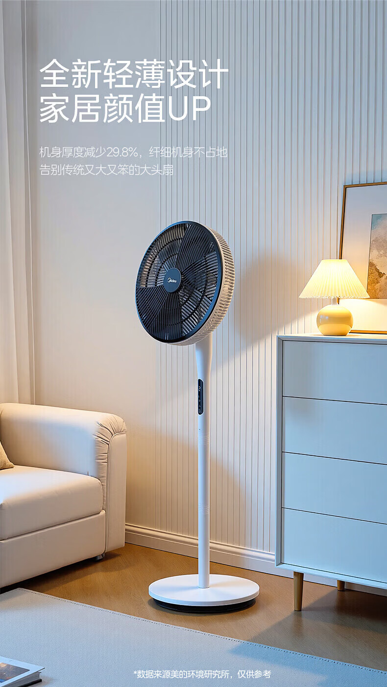美的幸运草落地扇家用电风扇可调节立式风扇客厅卧室遥控摇头大风量电扇轻音送风大风力循环通风 雅白色 仿生扇叶-风柔音轻-遥控款