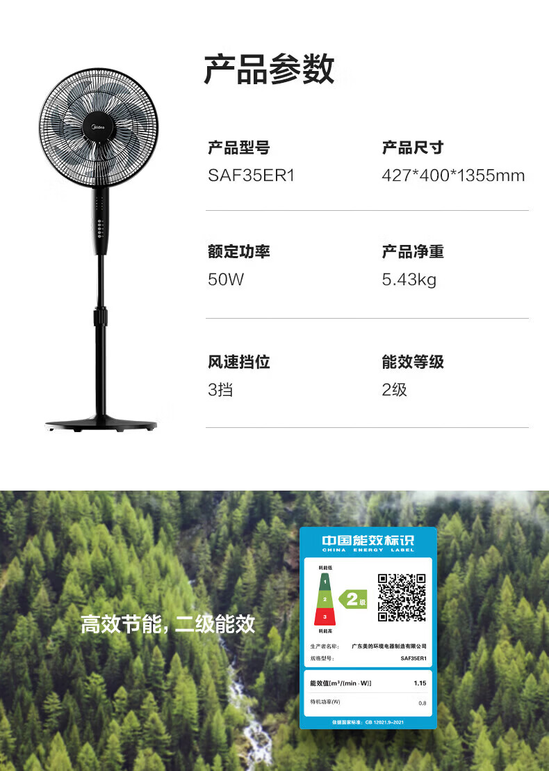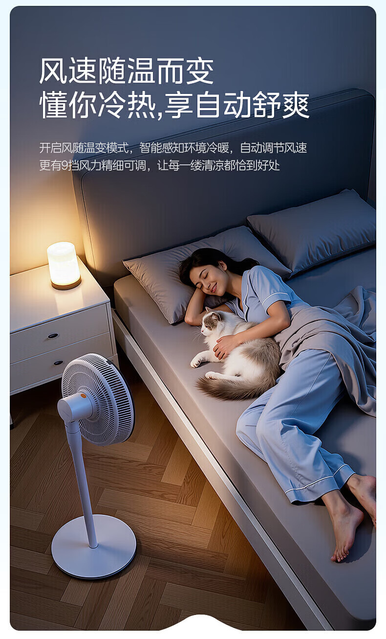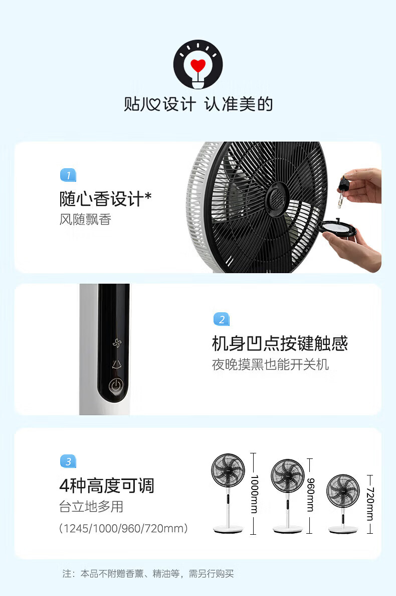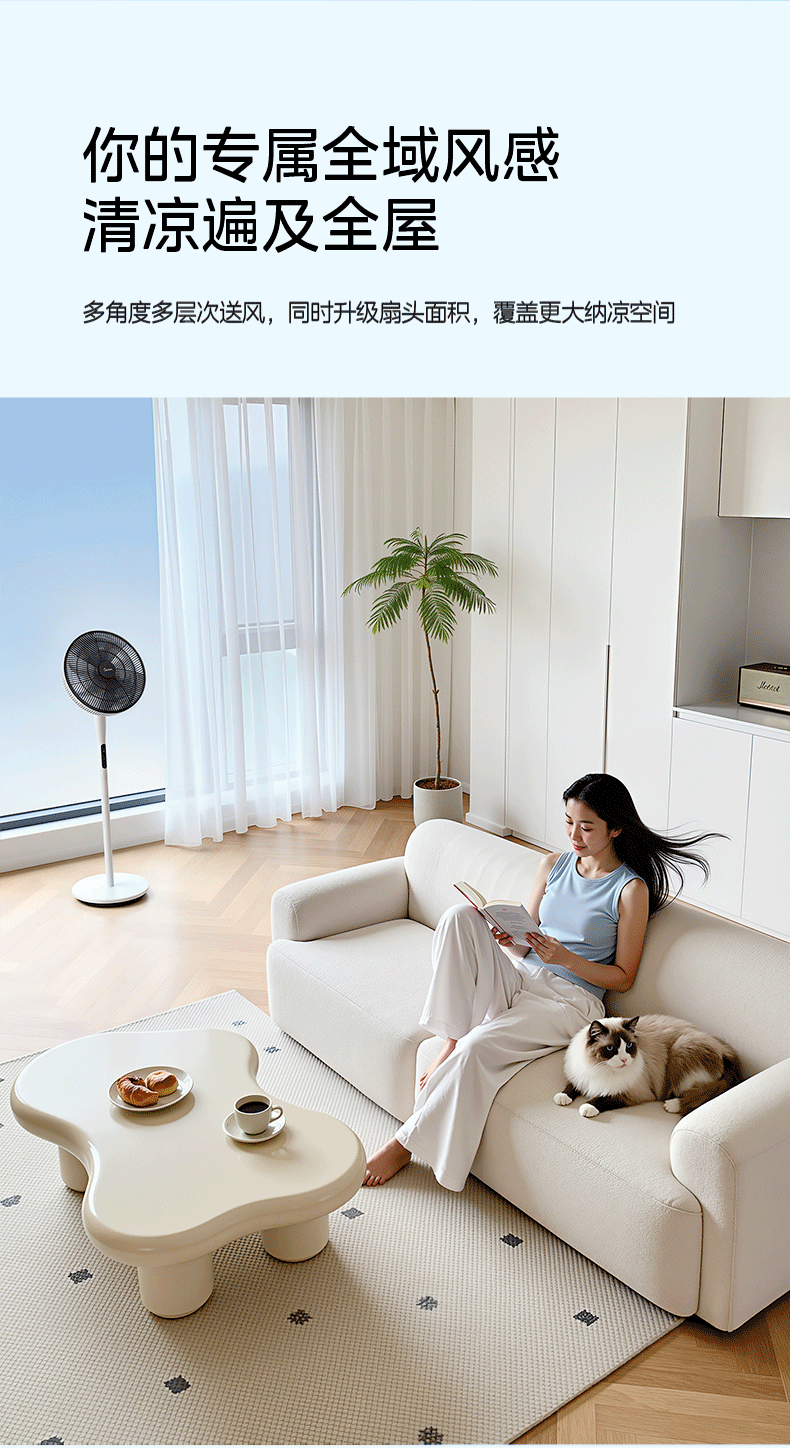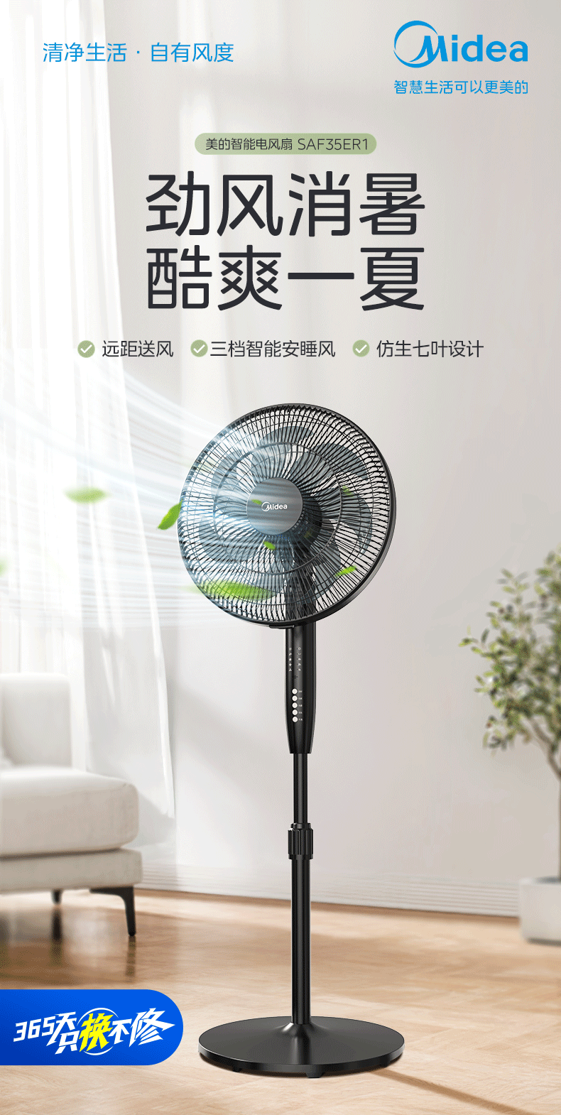 美的幸运草落地扇家用电风扇可调节立式风扇客厅卧室遥控摇头大风量电扇轻音送风大风力循环通风 雅白色 仿生扇叶-风柔音轻-遥控款