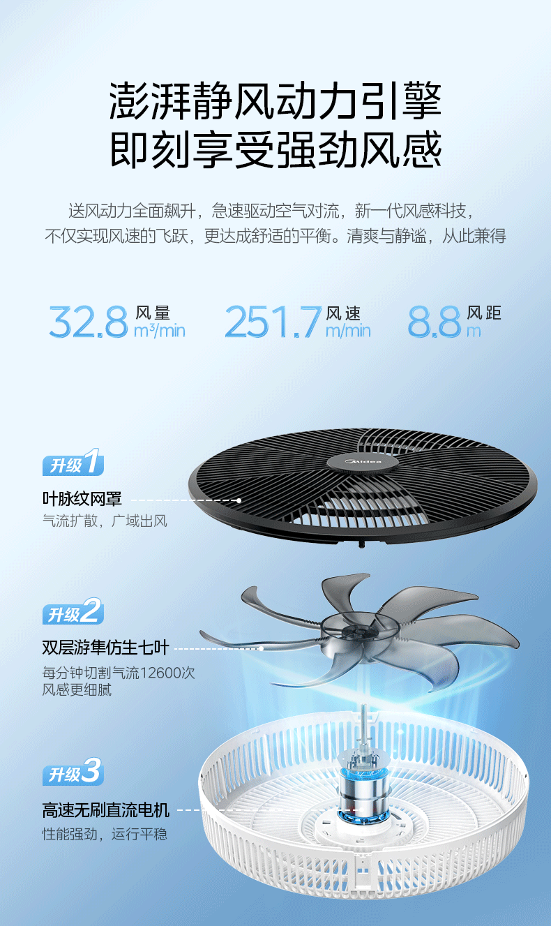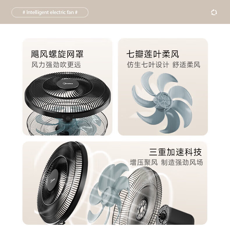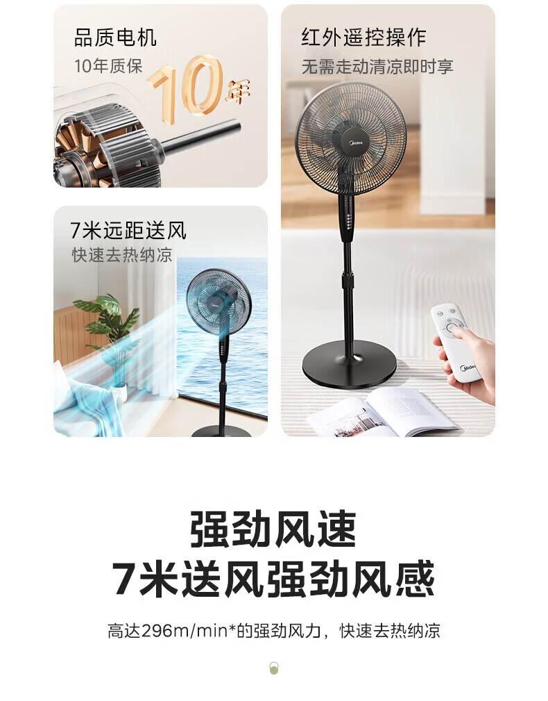 美的(Midea)【强劲飓风】落地扇家用超静音一体机大风力立式七叶节能强风电扇卧室宿舍台式摇头风扇循环扇 【升级遥控款】7h定时 3档送风