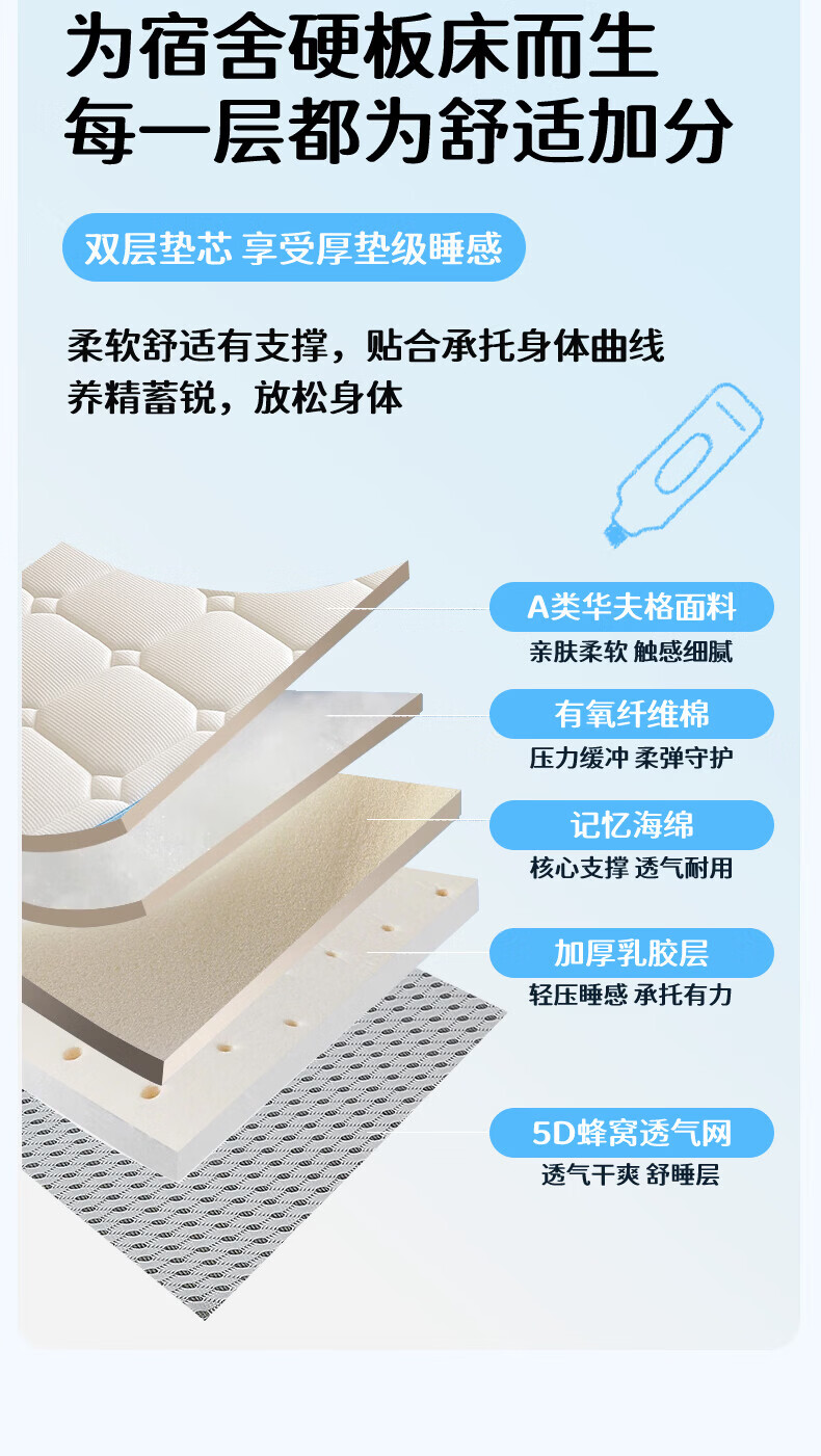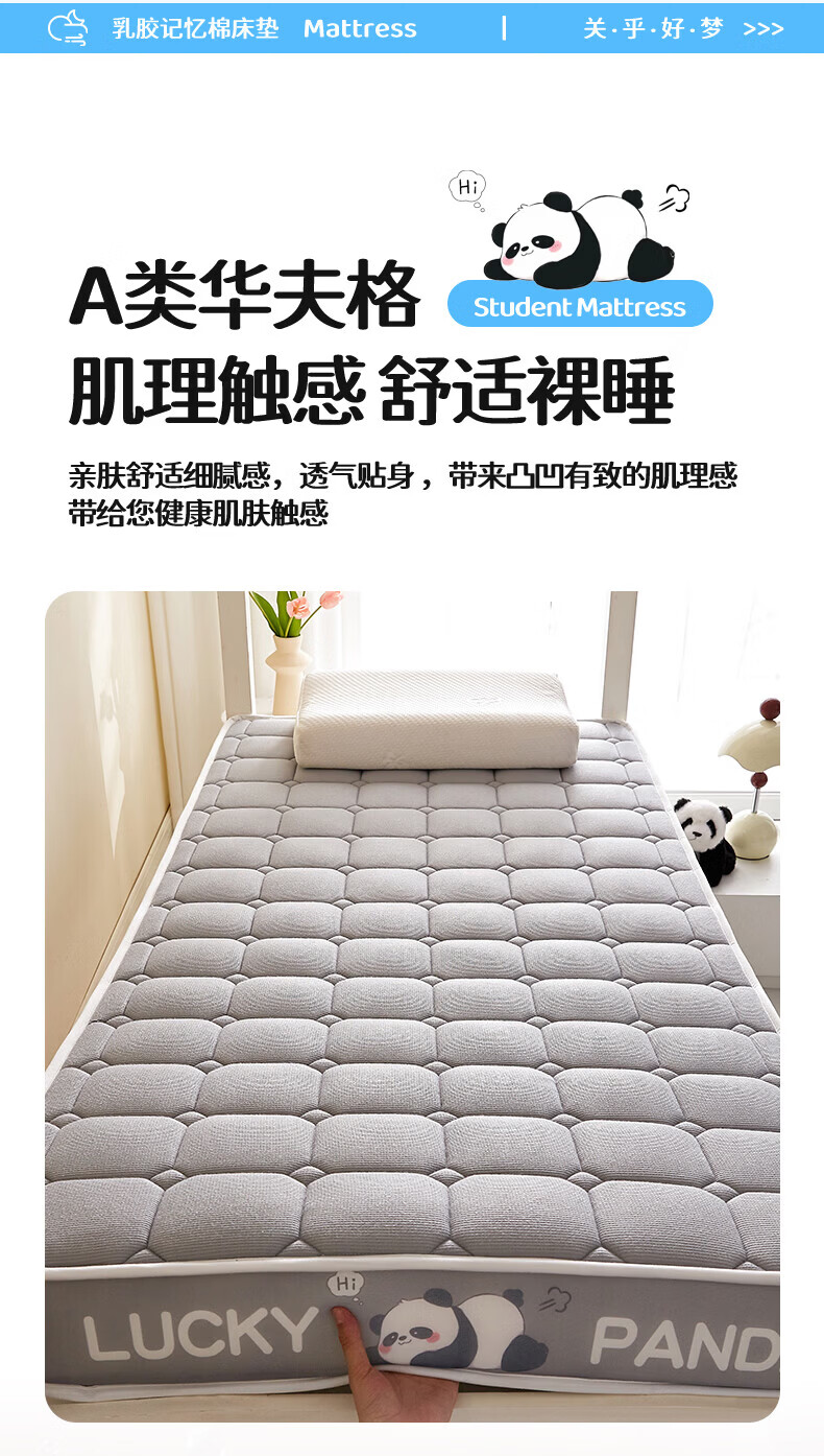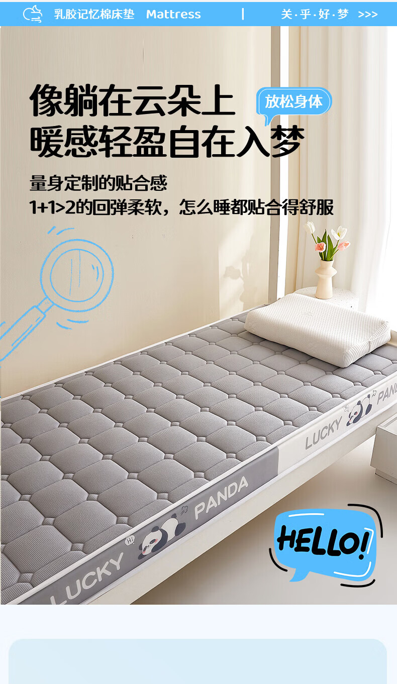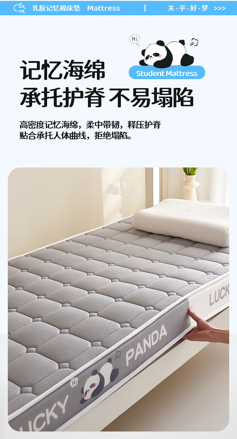 猫人(MiiOW)学生床垫遮盖物0.9米x1.9米宿舍床褥子软垫子高密度记忆棉地铺垫 云烟灰-厚约5cm 宿舍床:80*190cm【舒适支撑 拒绝塌陷】