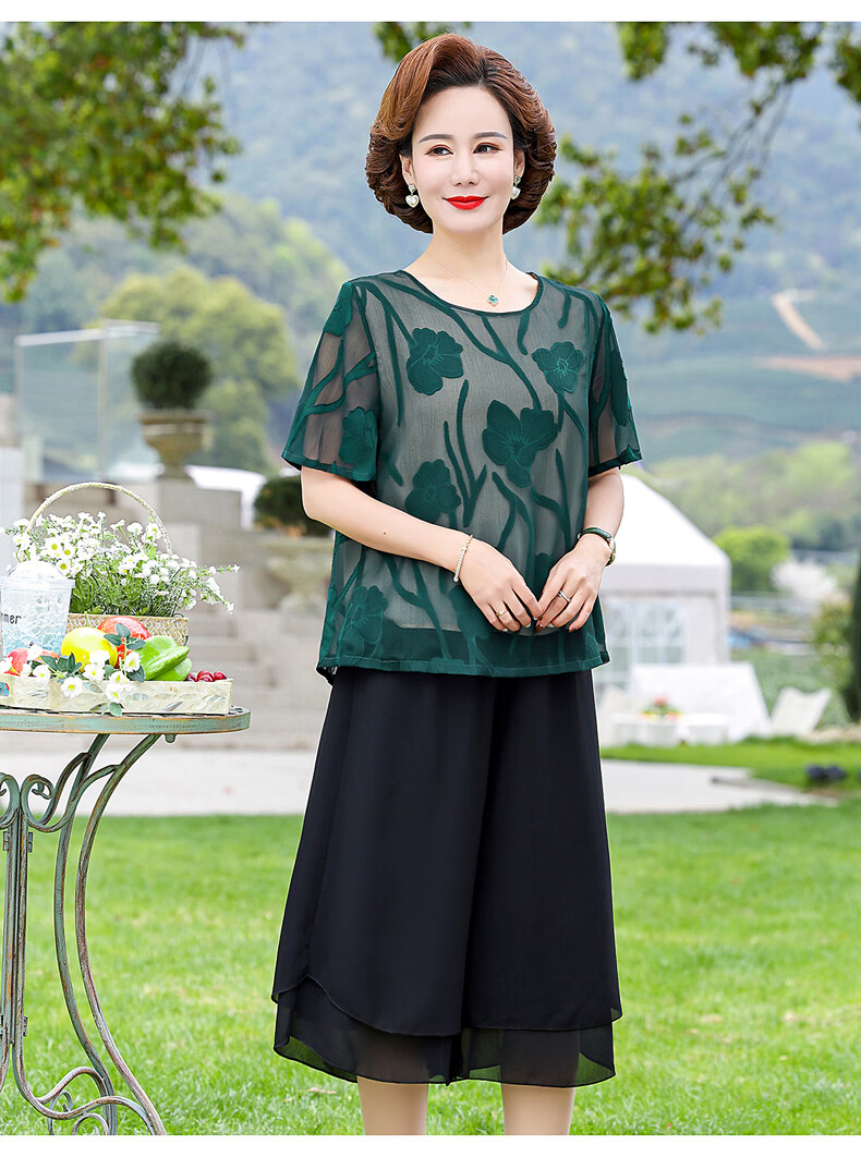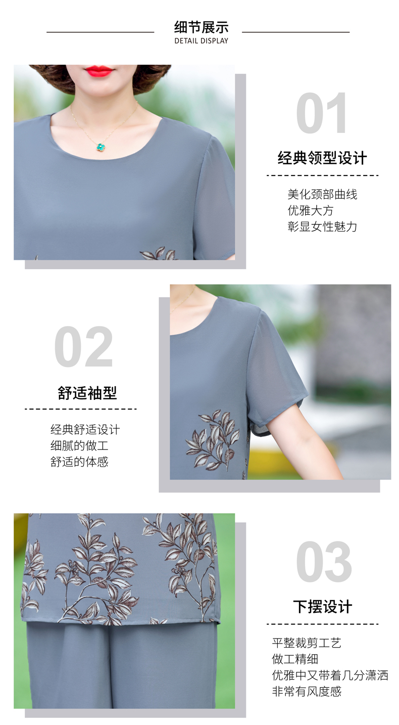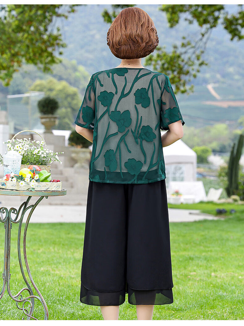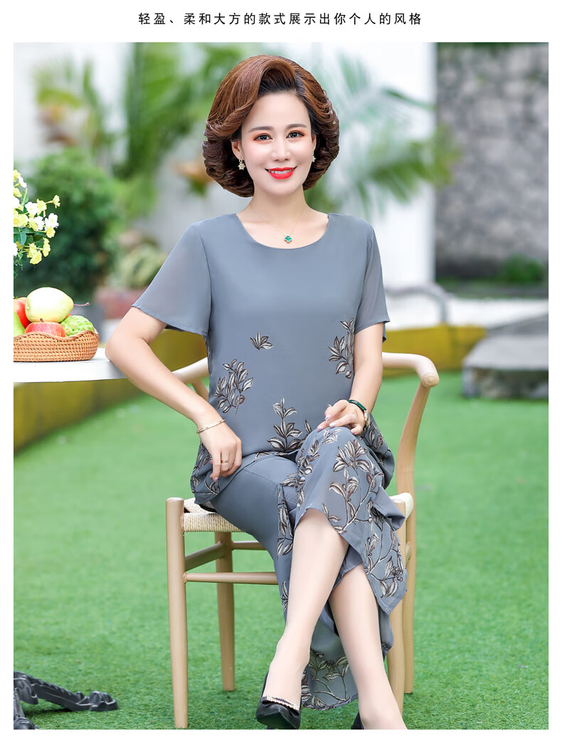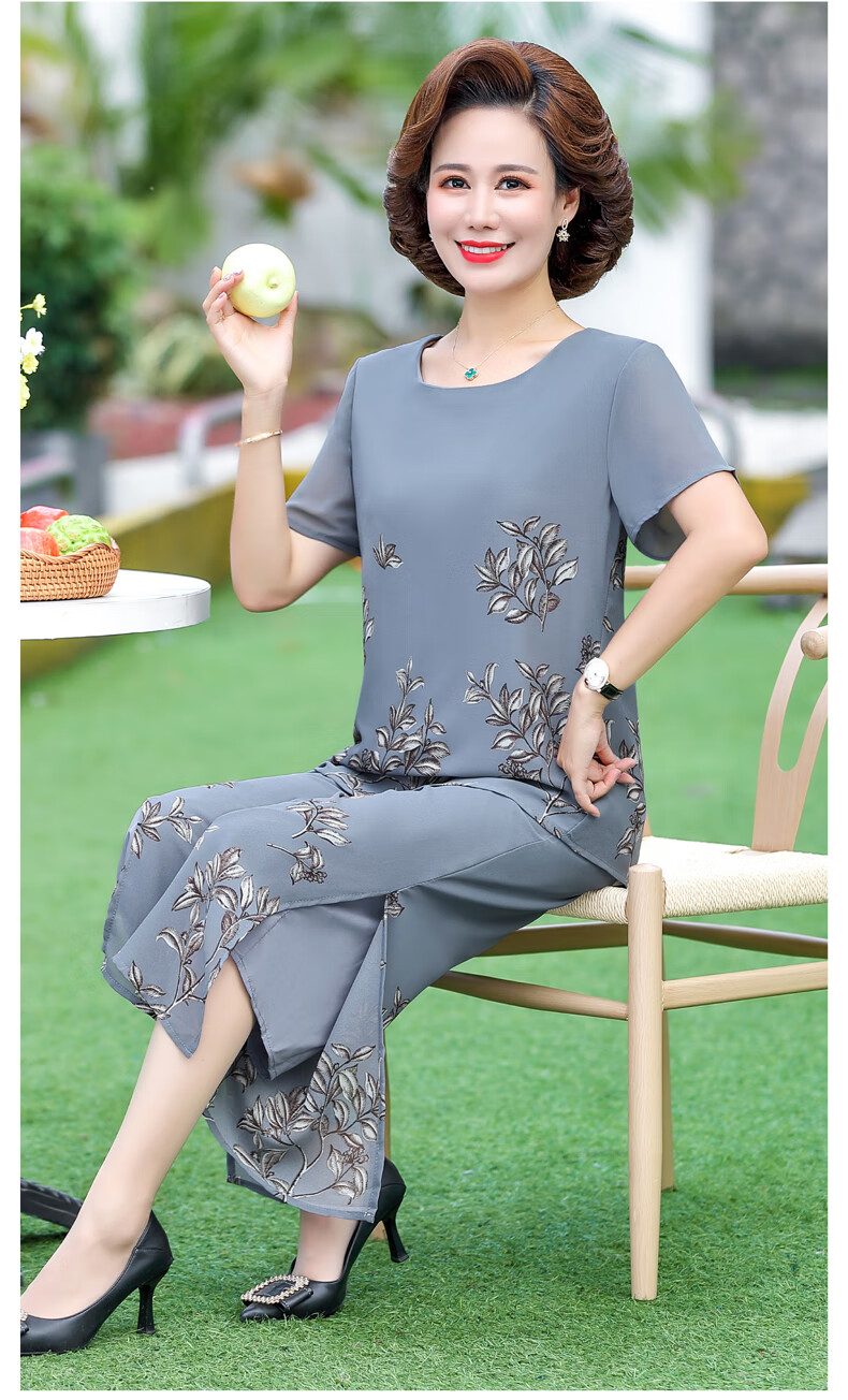 孜颜妈妈装50-60岁洋气夏装套装中老年女装短袖两件套母亲夏天衣服女 藏蓝【套装】 XL 【建议80-100斤】