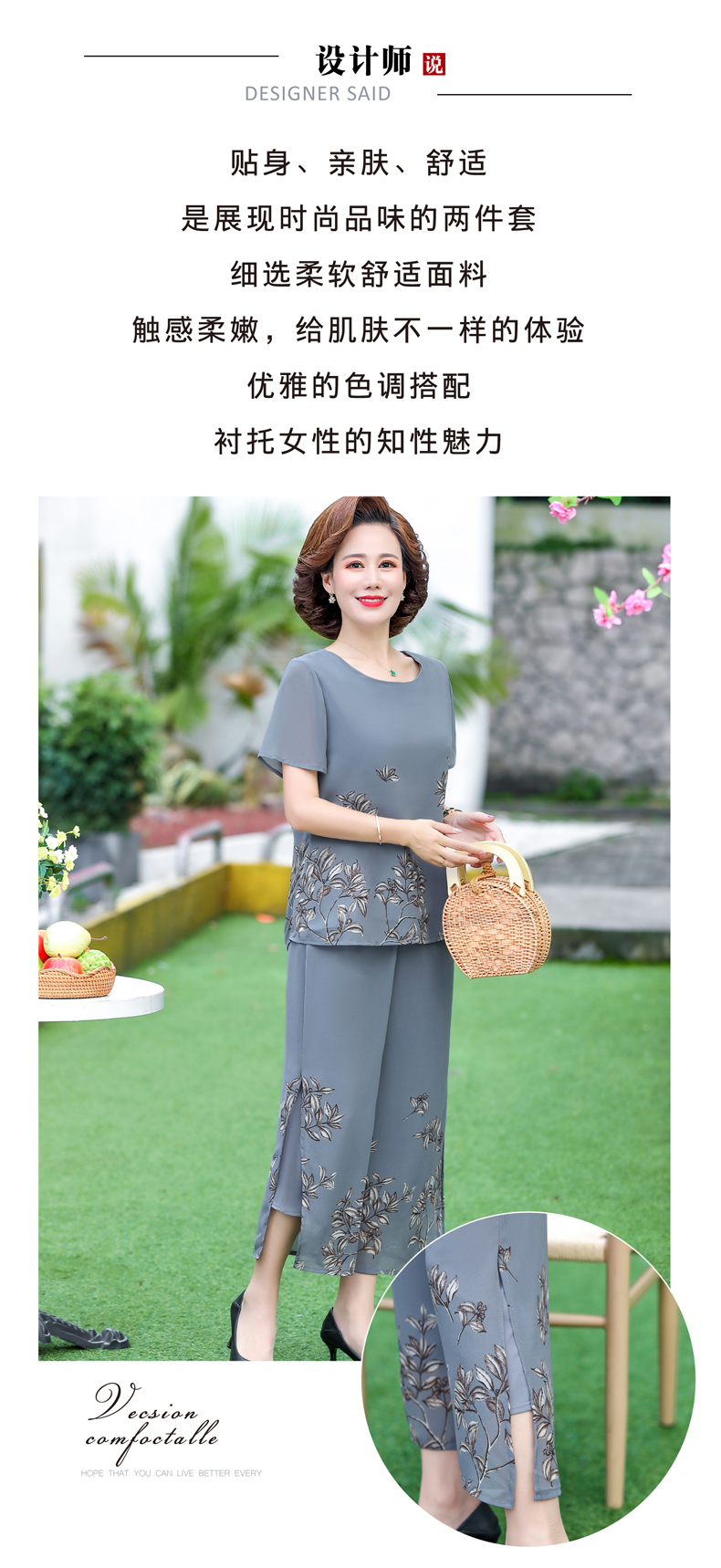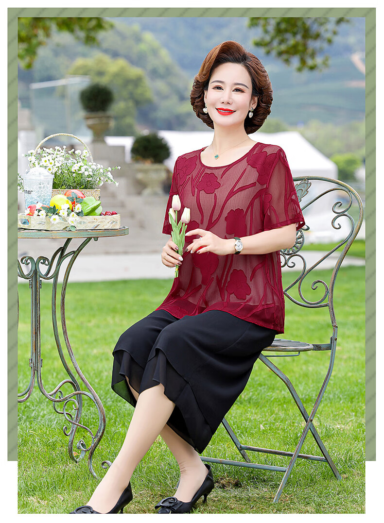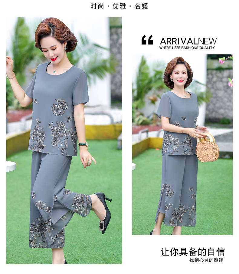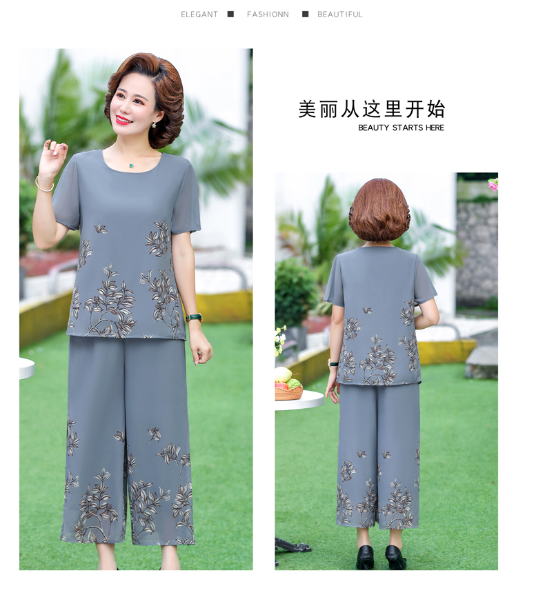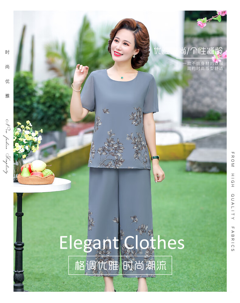 孜颜妈妈装50-60岁洋气夏装套装中老年女装短袖两件套母亲夏天衣服女 藏蓝【套装】 XL 【建议80-100斤】