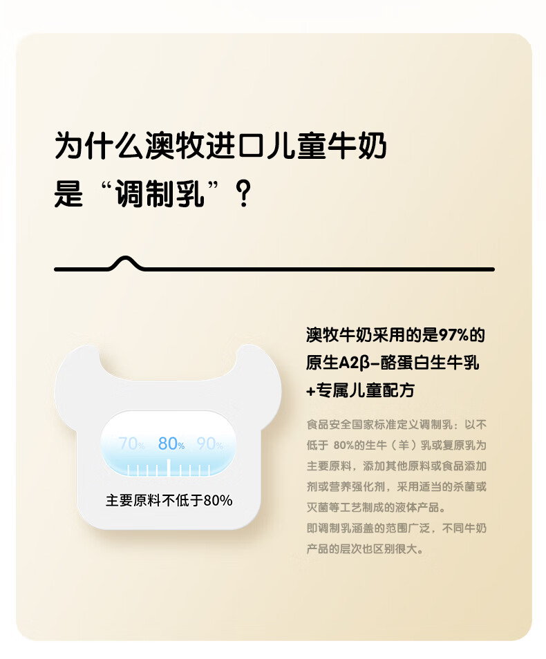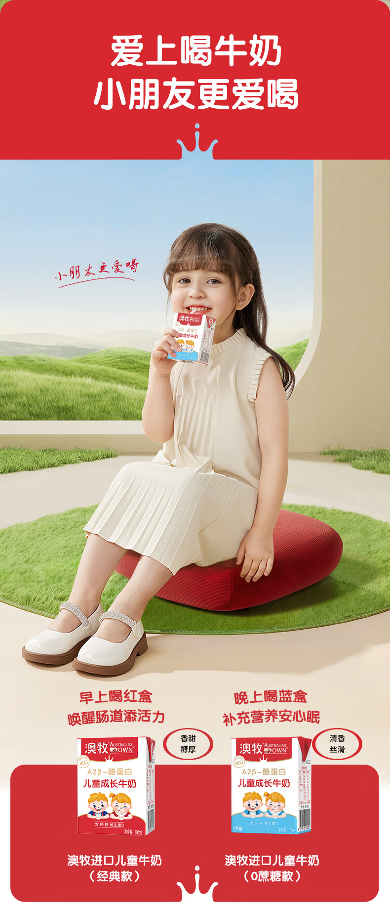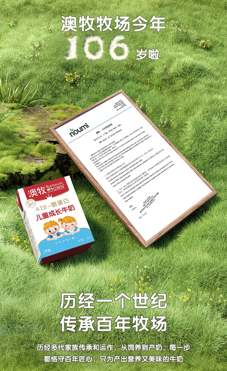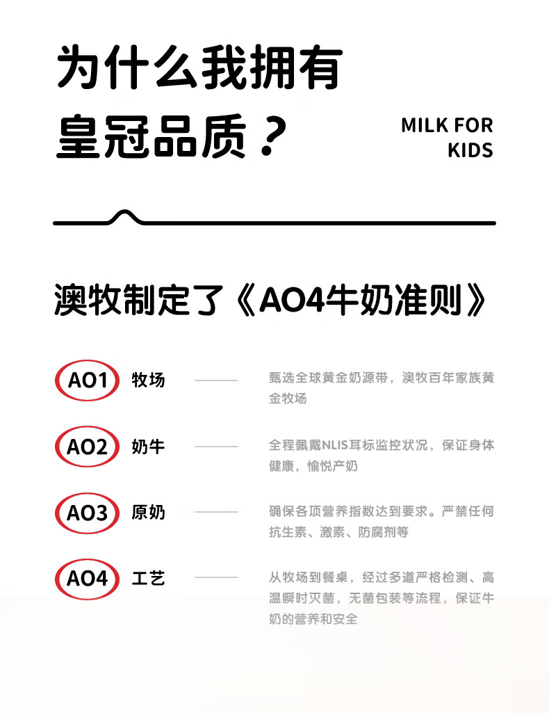 澳牧(Australia's Own)儿童成长牛奶0蔗糖A2β酪蛋白原装进口全脂奶200ml*24盒过年囤货