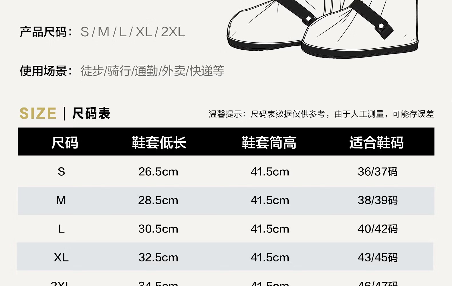 真艾丰防水鞋套防滑耐磨雨鞋套水鞋雨鞋骑手中筒下雨男女专用成人反光靴 2XL码