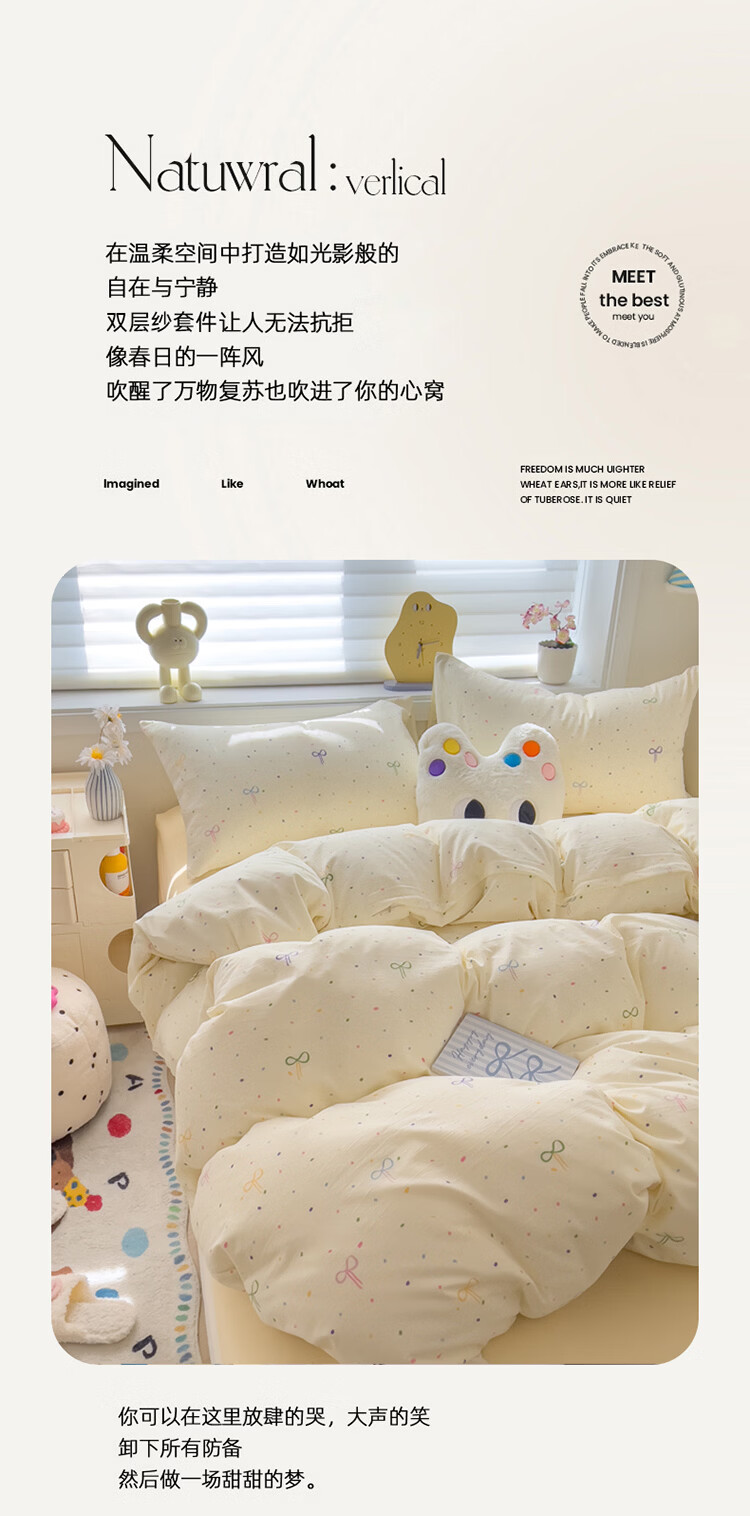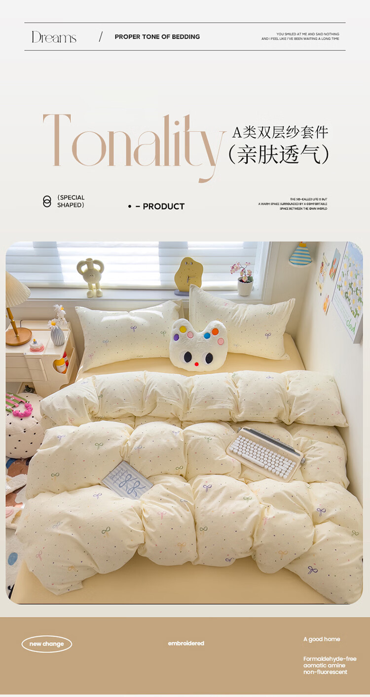南极人(Nanjiren)双层纱单独被套200x230cm单件被罩家用床笠四件套宿舍床单三件套 加柔花语 【舒适双层纱 柔软舒适】 单被套150x200cm