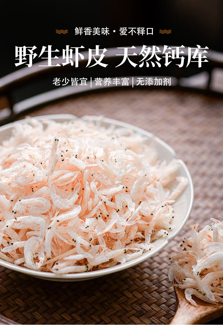 刀蔓淡干虾皮 海产干货 辅食营养 少盐淡晒 可配紫菜蛋花汤 虾米皮 1袋共300克