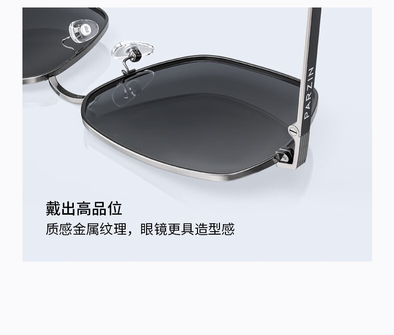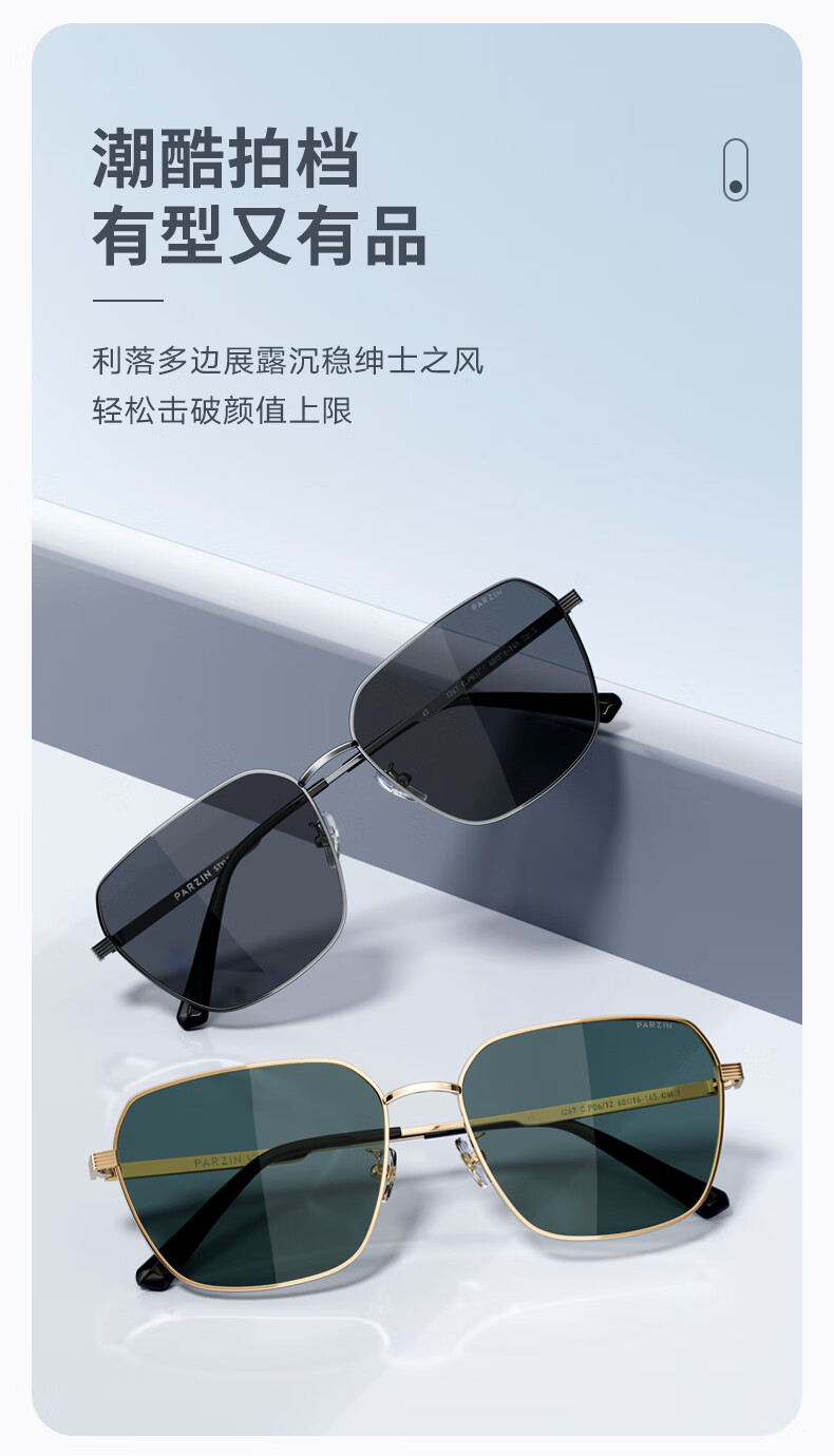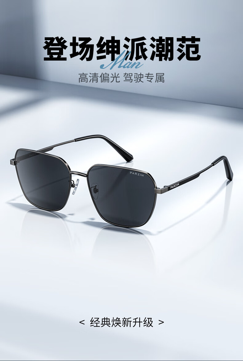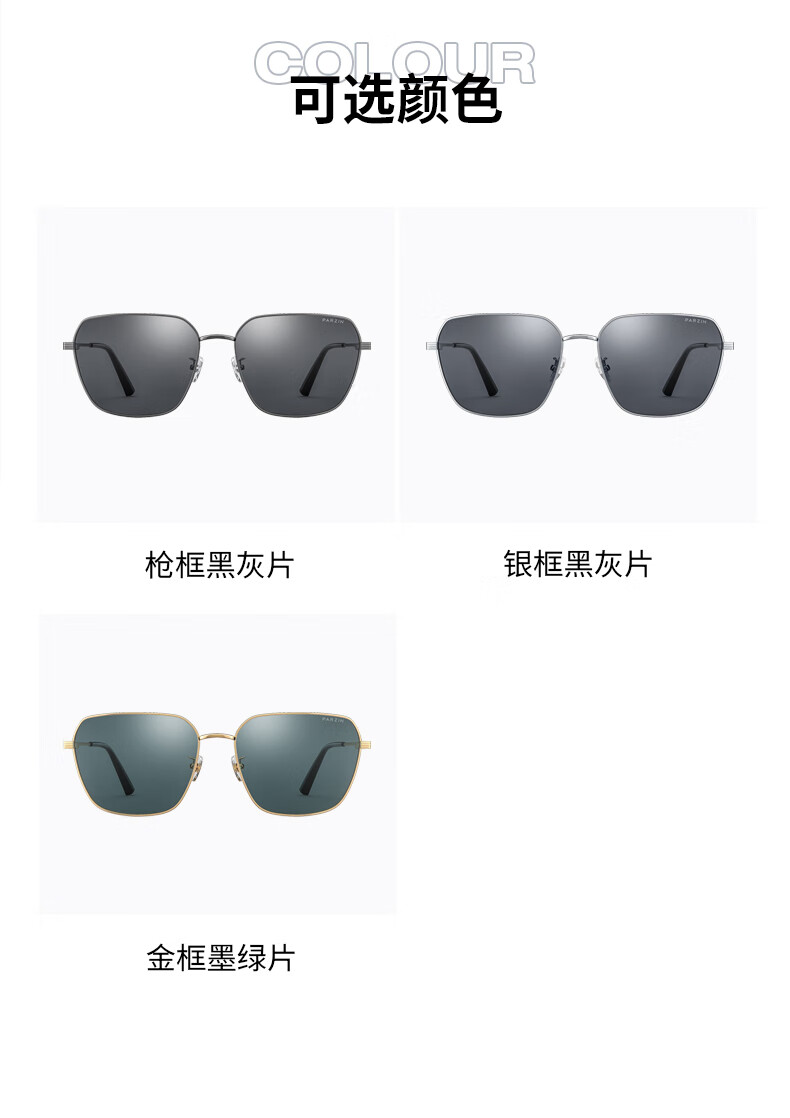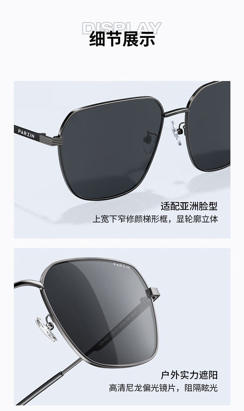 帕森(PARZIN)尼龙偏光太阳镜 多边形方框眼镜型男潮酷驾驶墨镜男礼物PZ8267