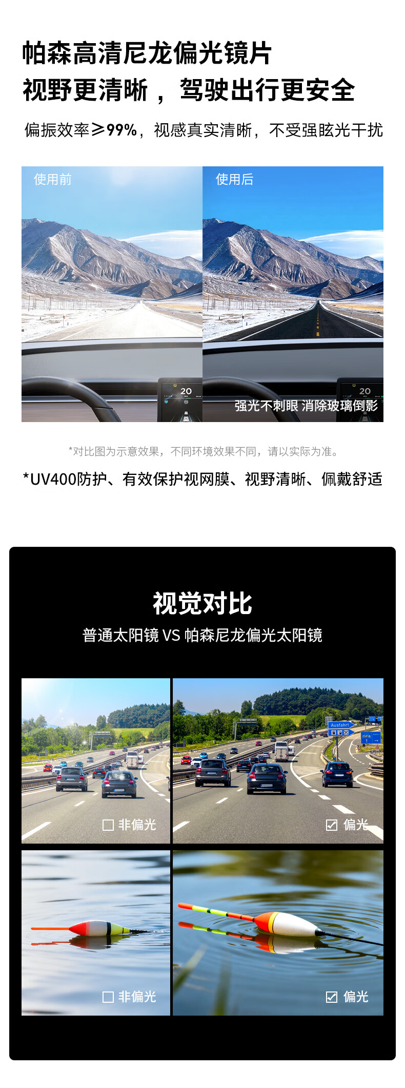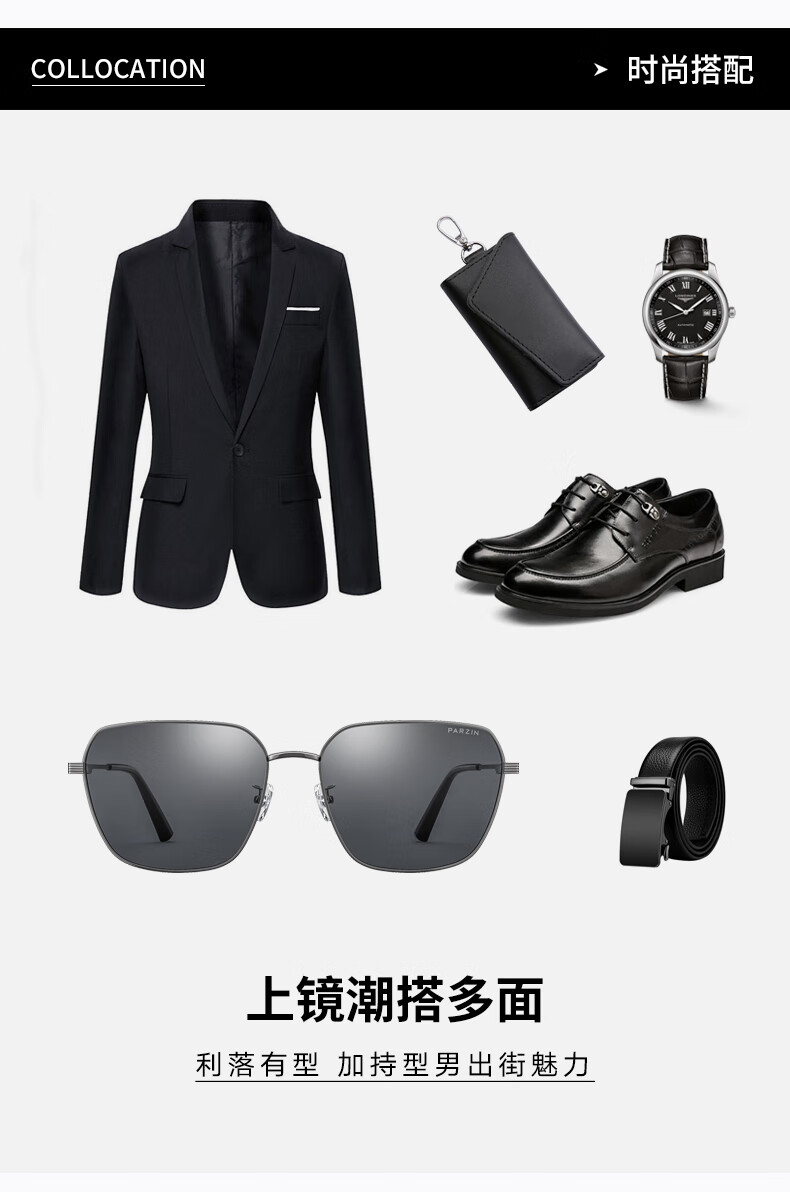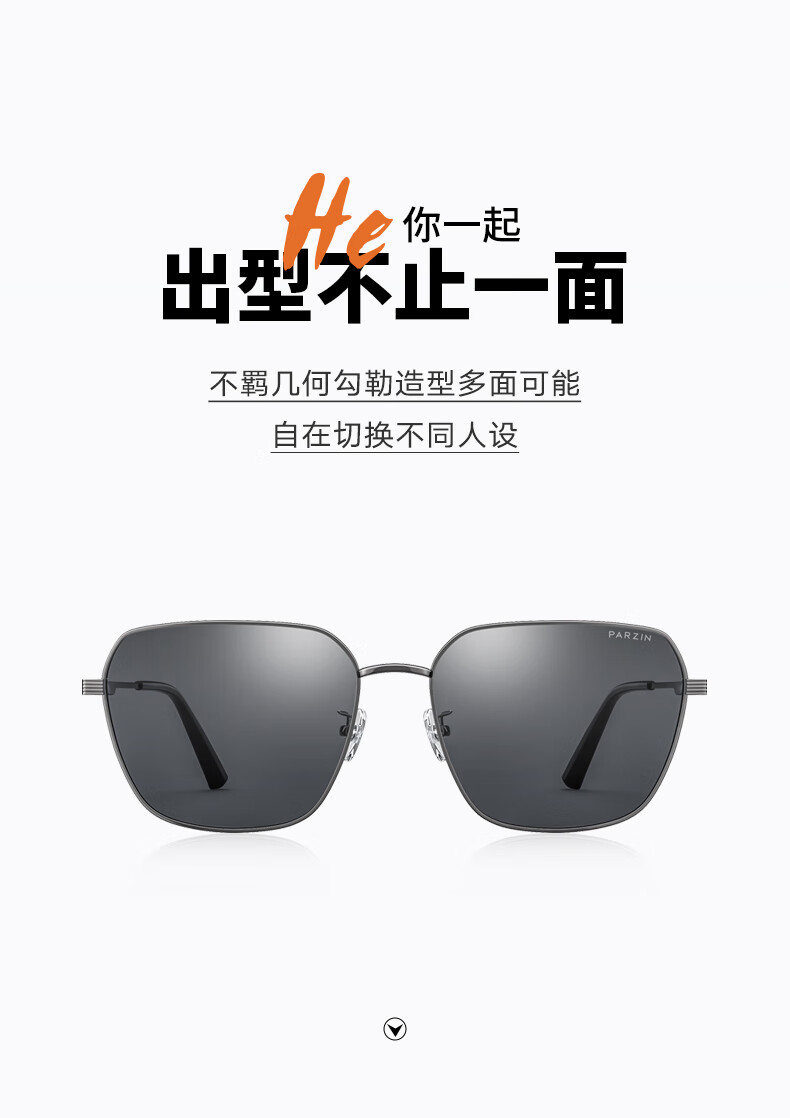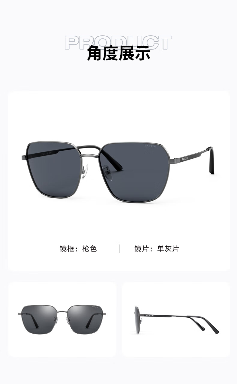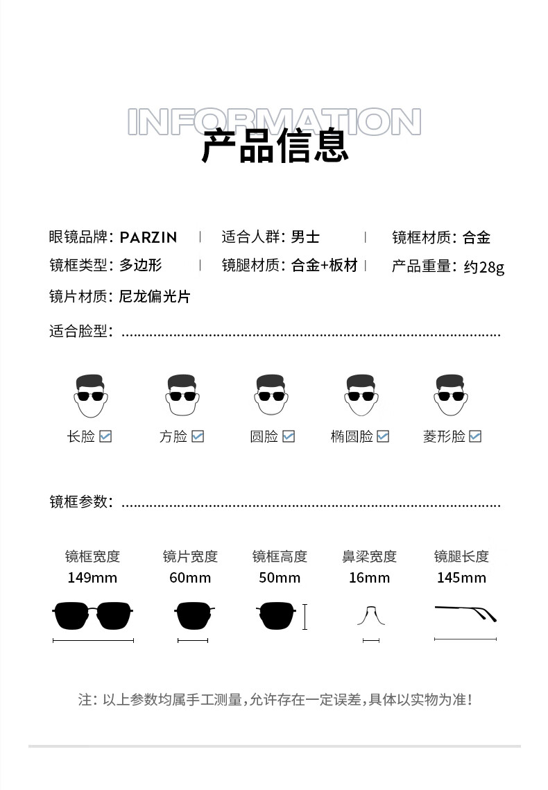 帕森(PARZIN)尼龙偏光太阳镜 多边形方框眼镜型男潮酷驾驶墨镜男礼物PZ8267