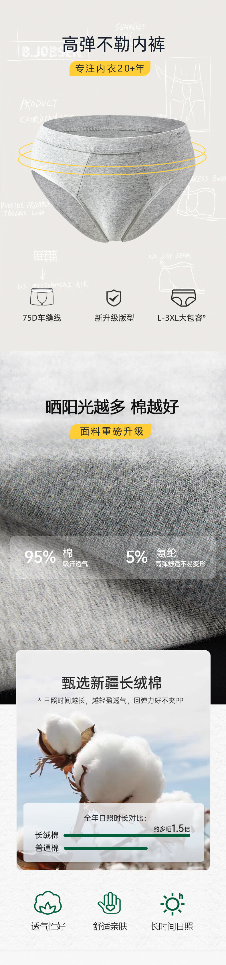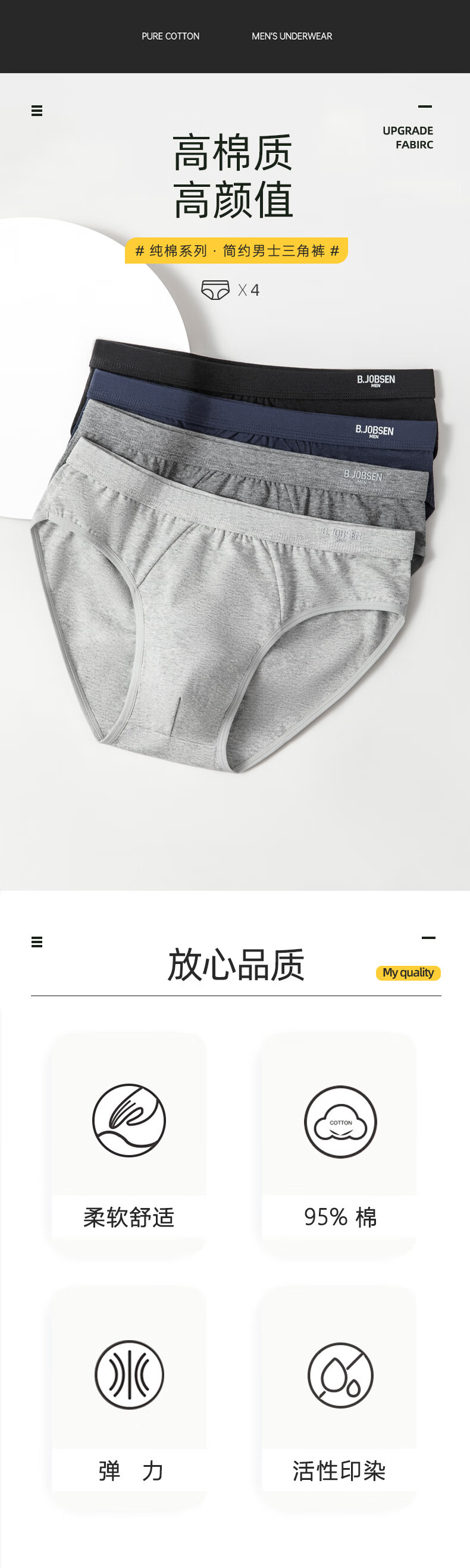 男士三角内裤裆夏季透气性感男式男生三角裤头 浅花灰 1条 XL